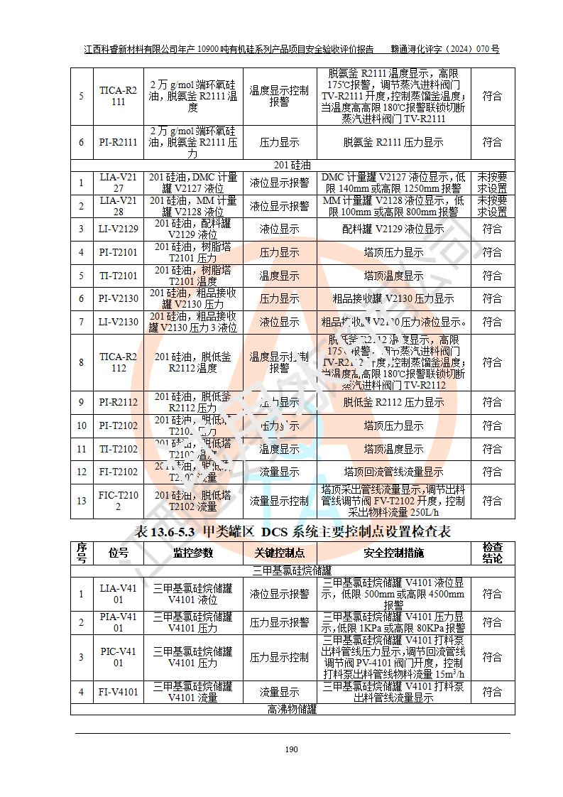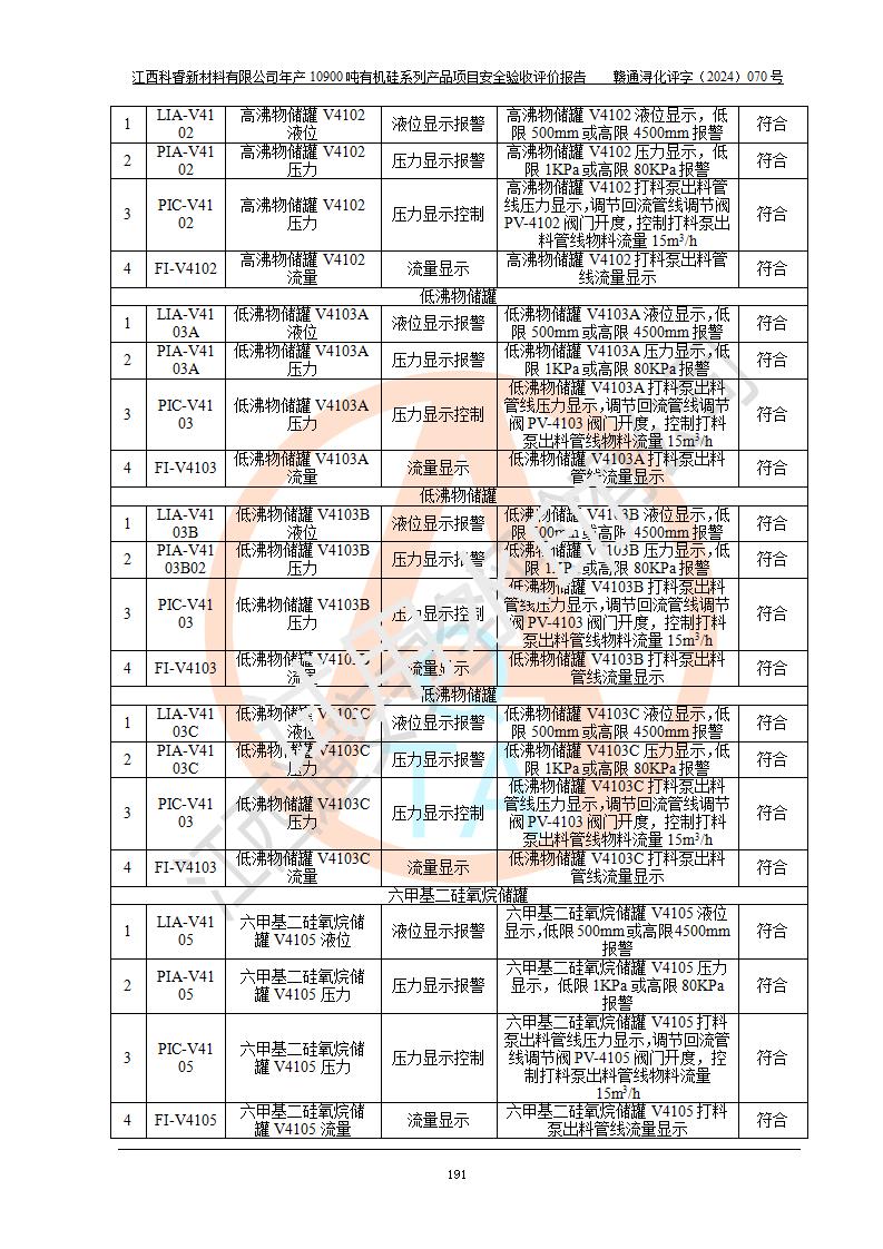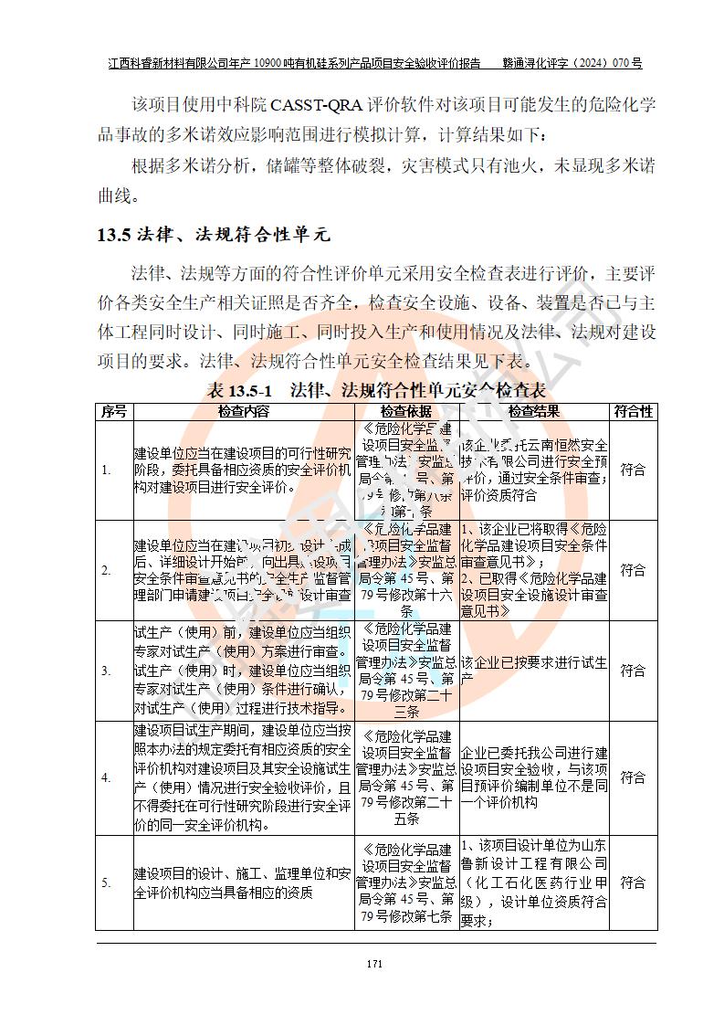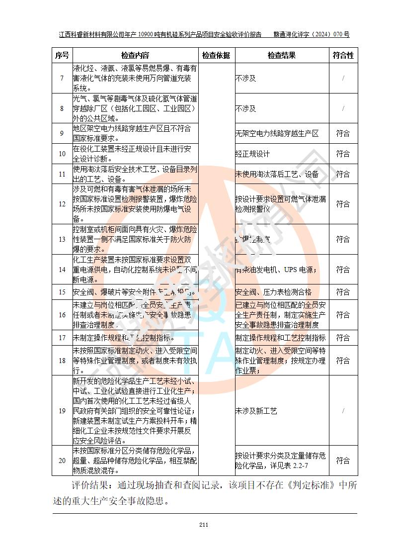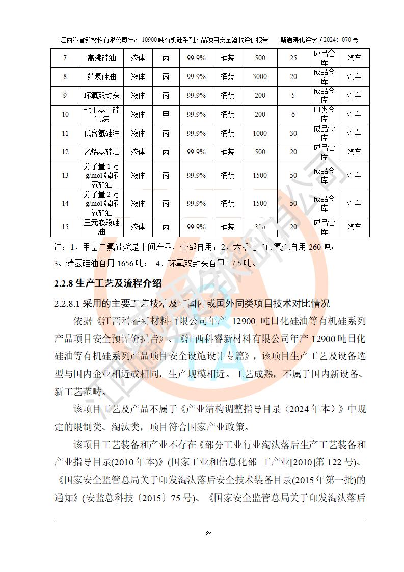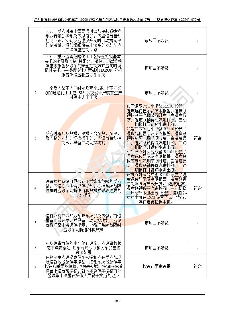 評價報告名稱 | 江西科睿新材料有限公司年產(chǎn)12900噸日化硅油等有機硅系列產(chǎn)品項目 (一期:年產(chǎn)10900噸日化硅油等有機硅系列)安全驗收評價 | |||||