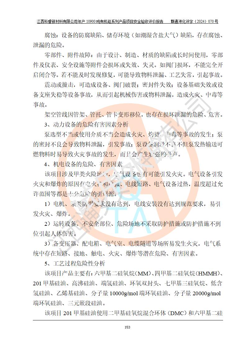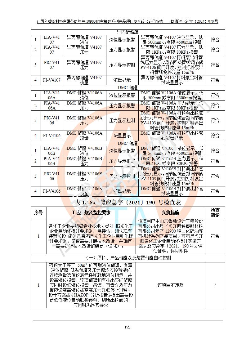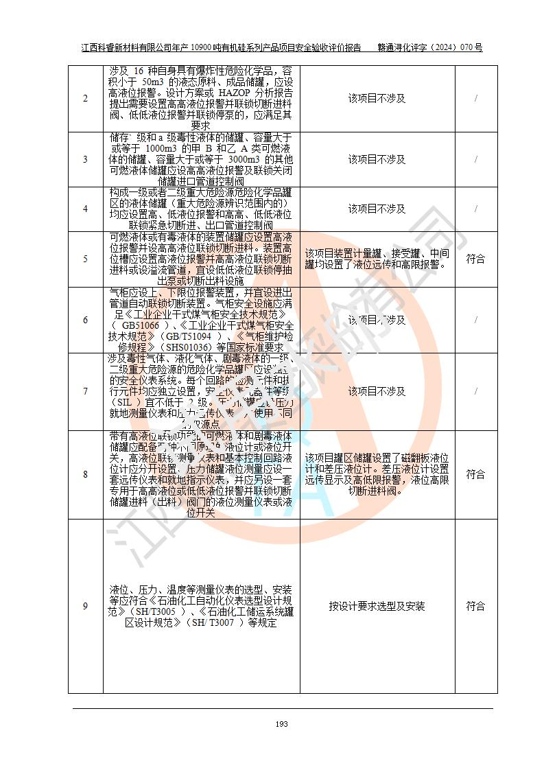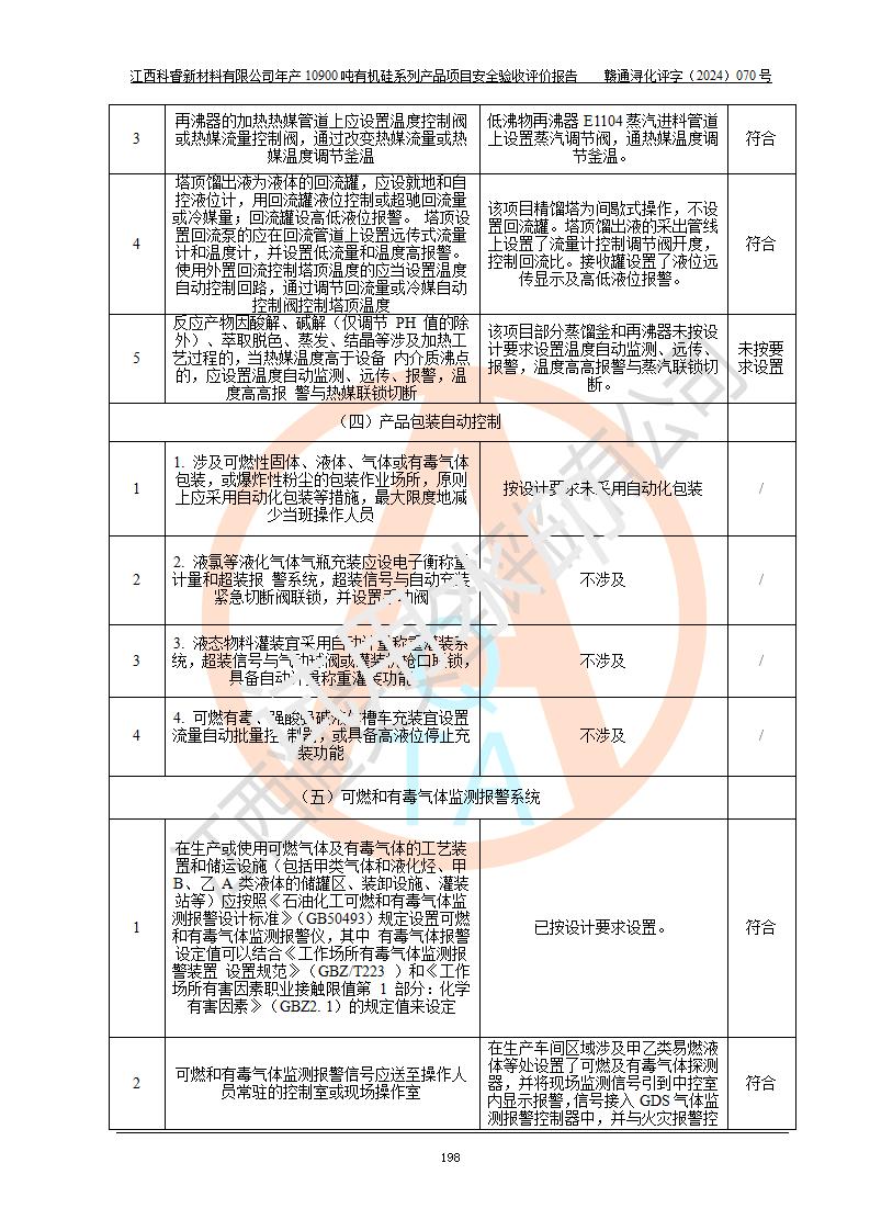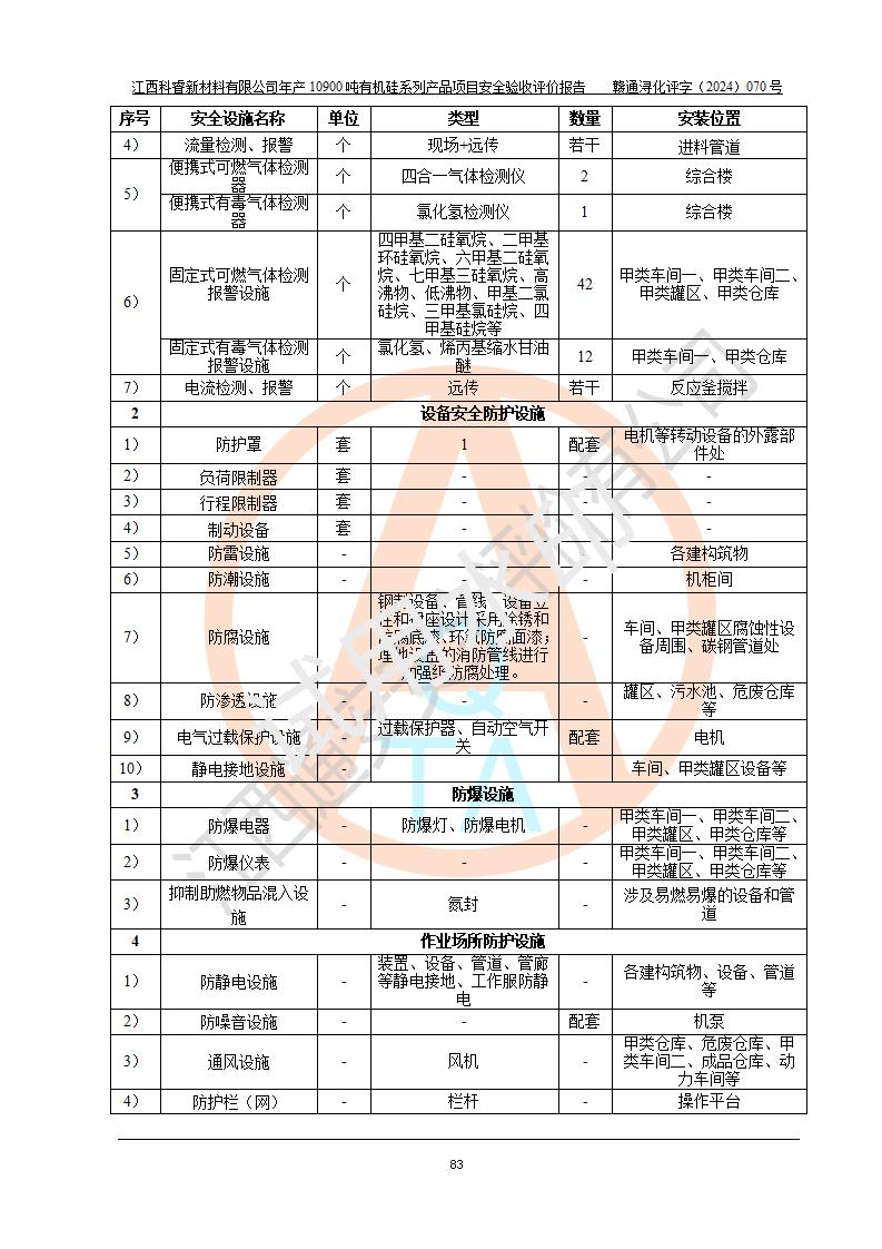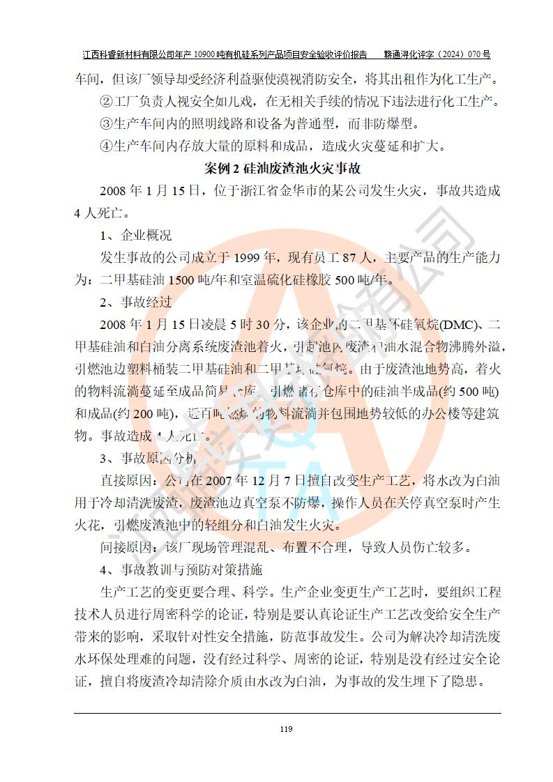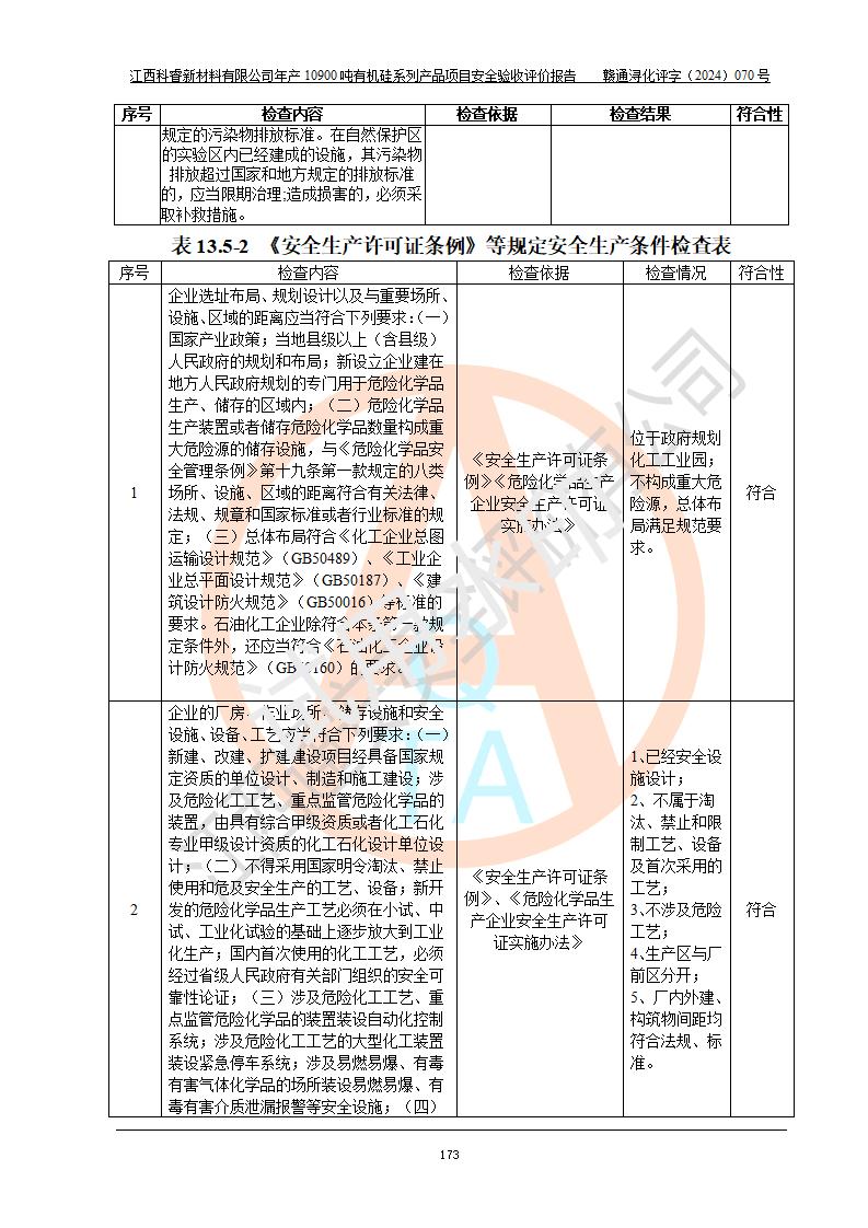 評價報告名稱 | 江西科睿新材料有限公司年產(chǎn)12900噸日化硅油等有機硅系列產(chǎn)品項目 (一期:年產(chǎn)10900噸日化硅油等有機硅系列)安全驗收評價 | |||||