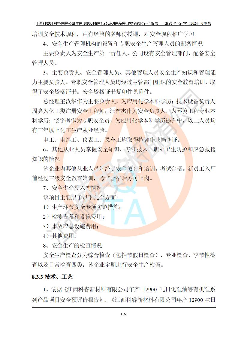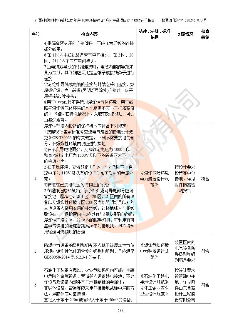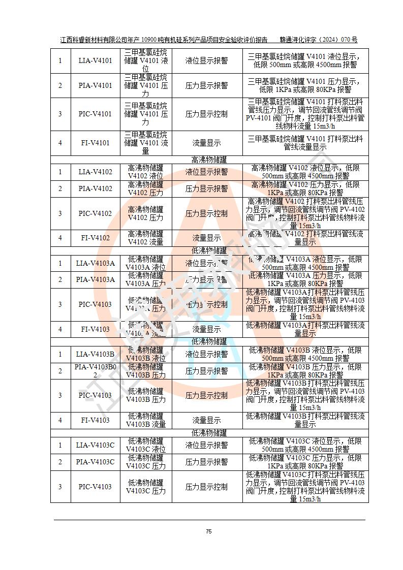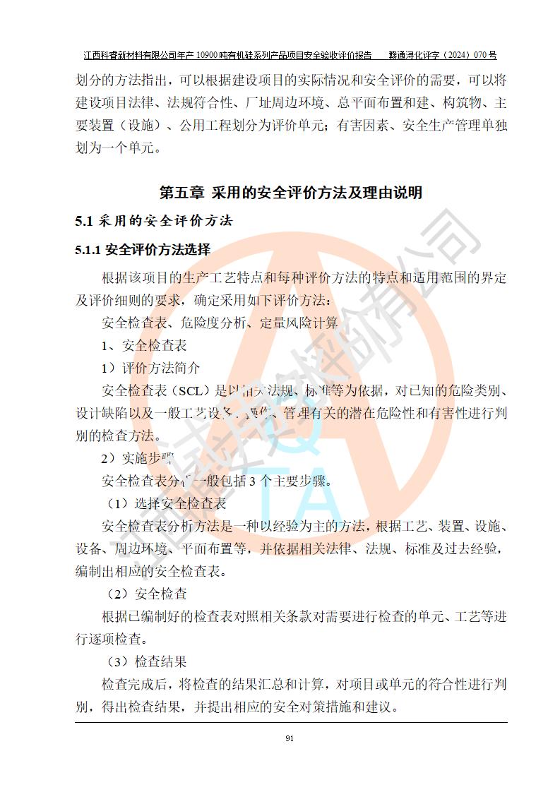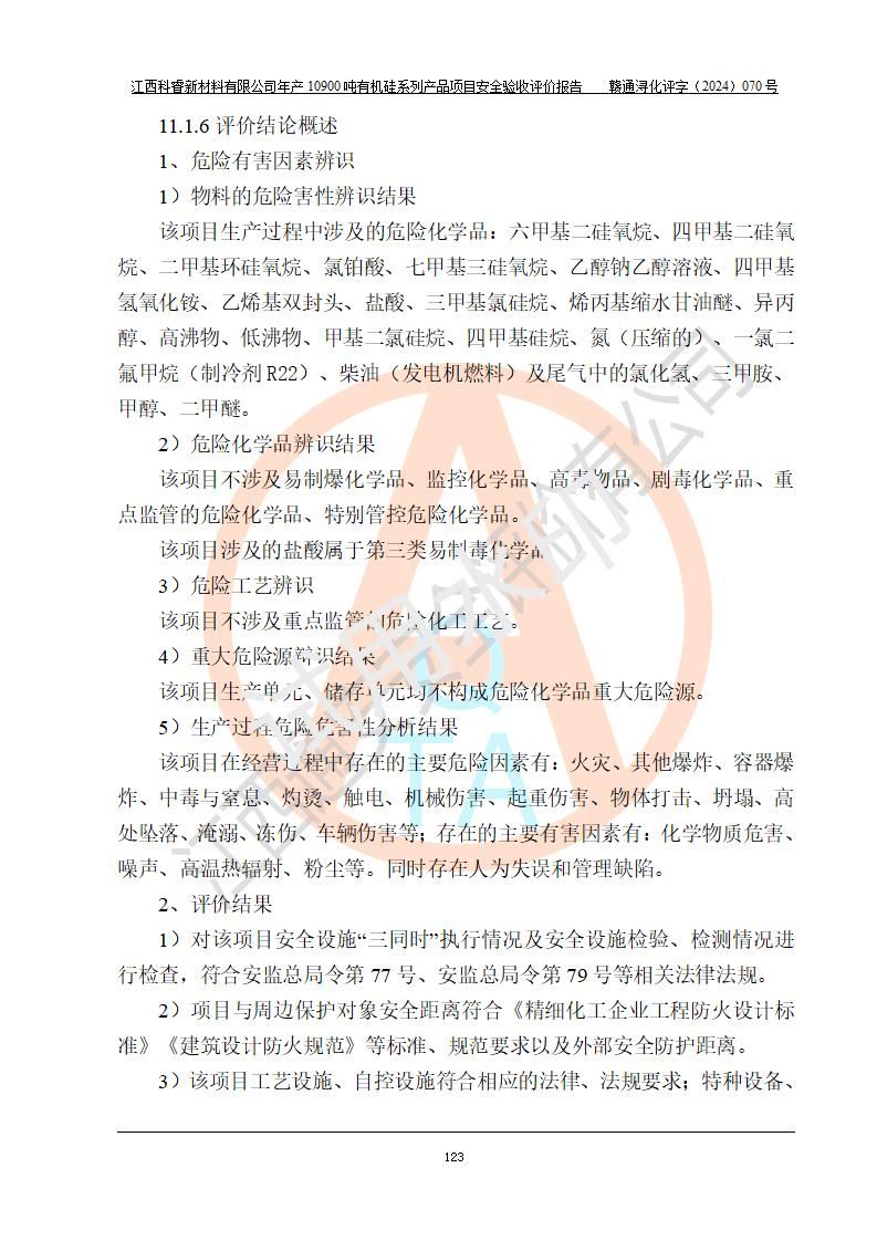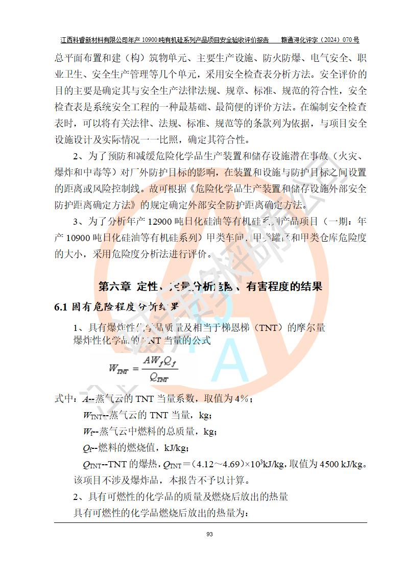 評價報告名稱 | 江西科睿新材料有限公司年產(chǎn)12900噸日化硅油等有機硅系列產(chǎn)品項目 (一期:年產(chǎn)10900噸日化硅油等有機硅系列)安全驗收評價 | |||||