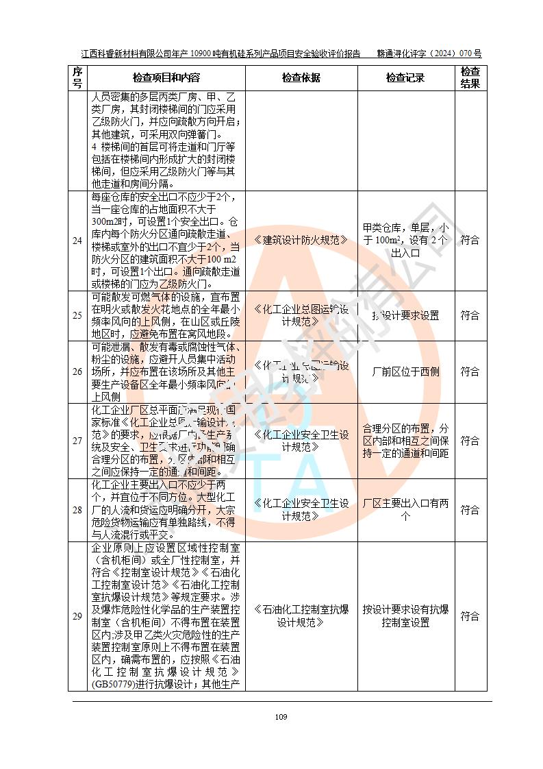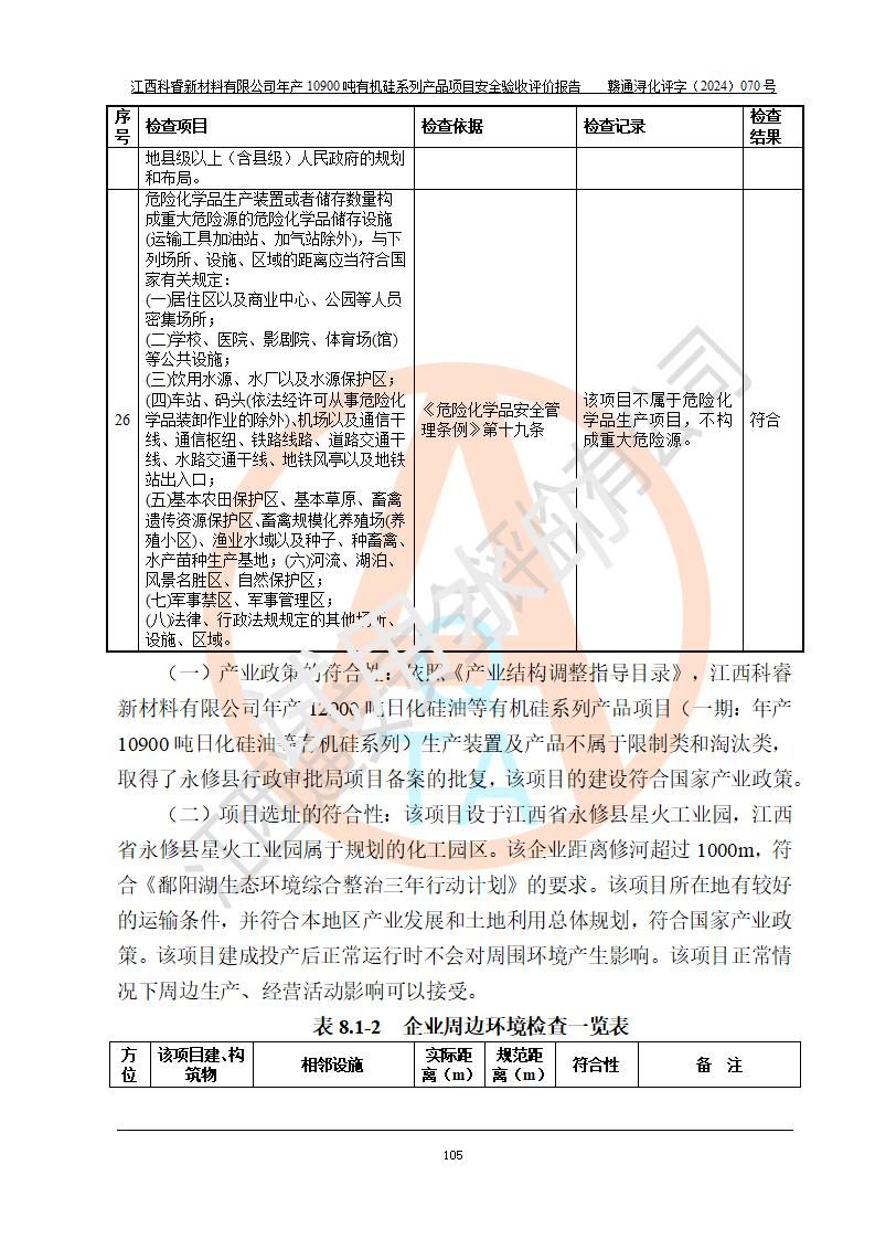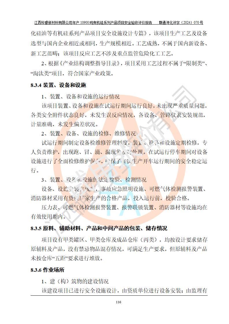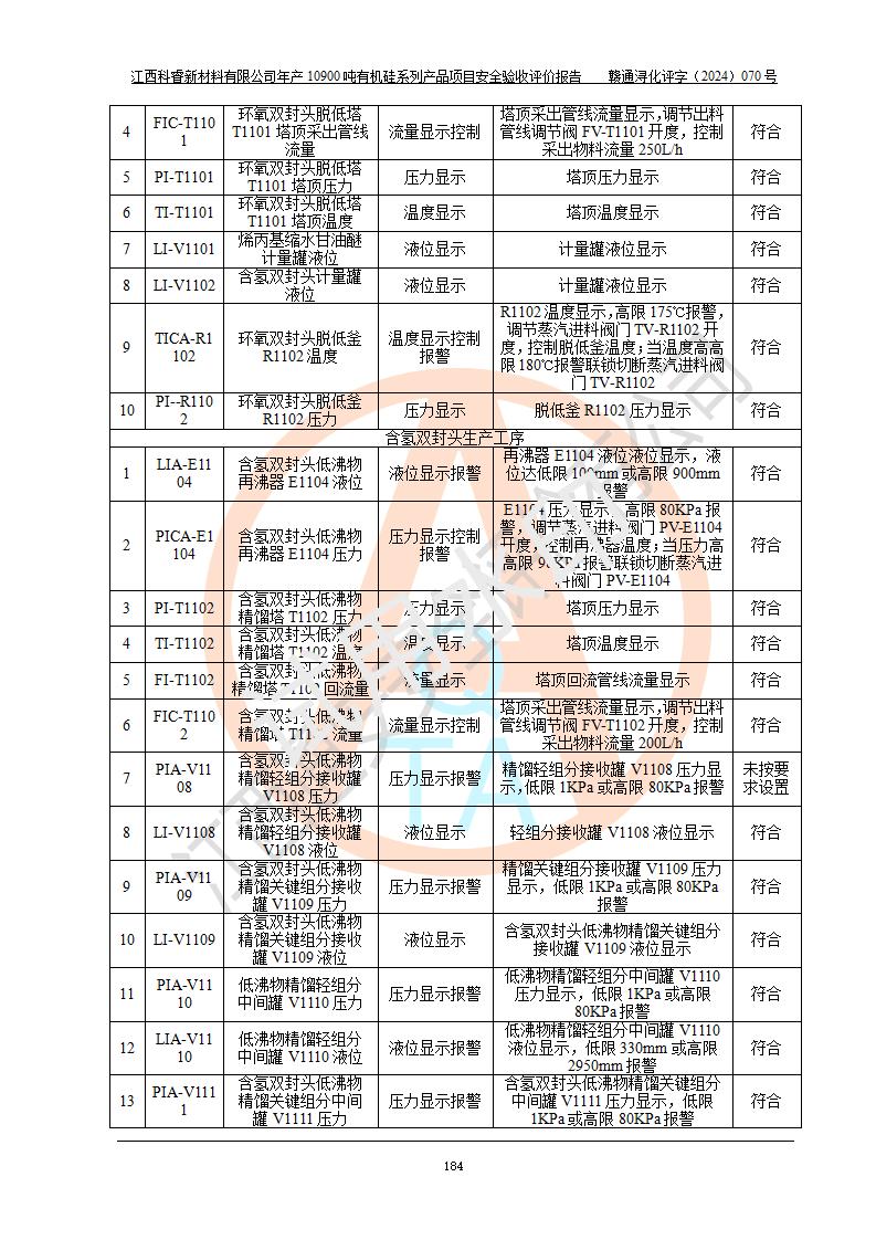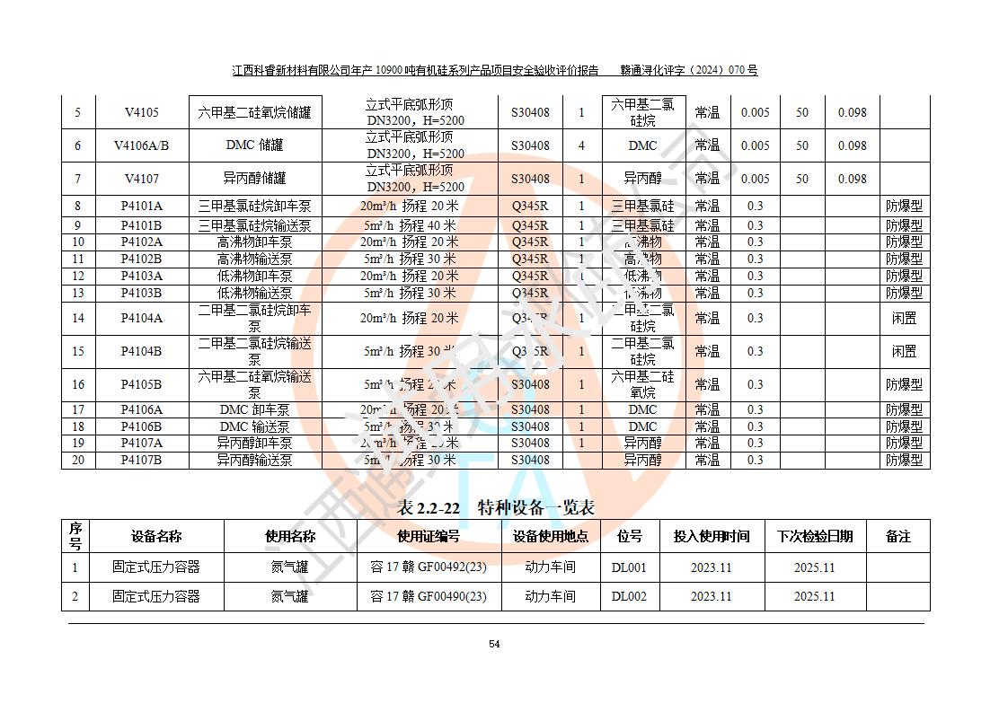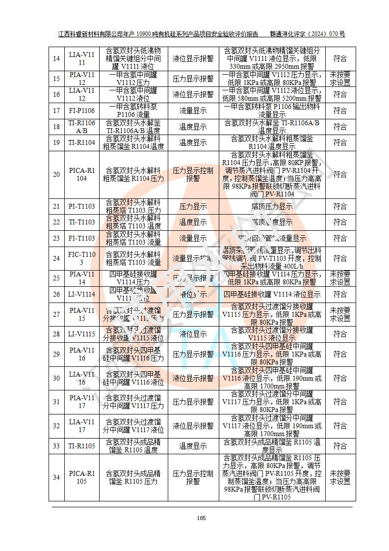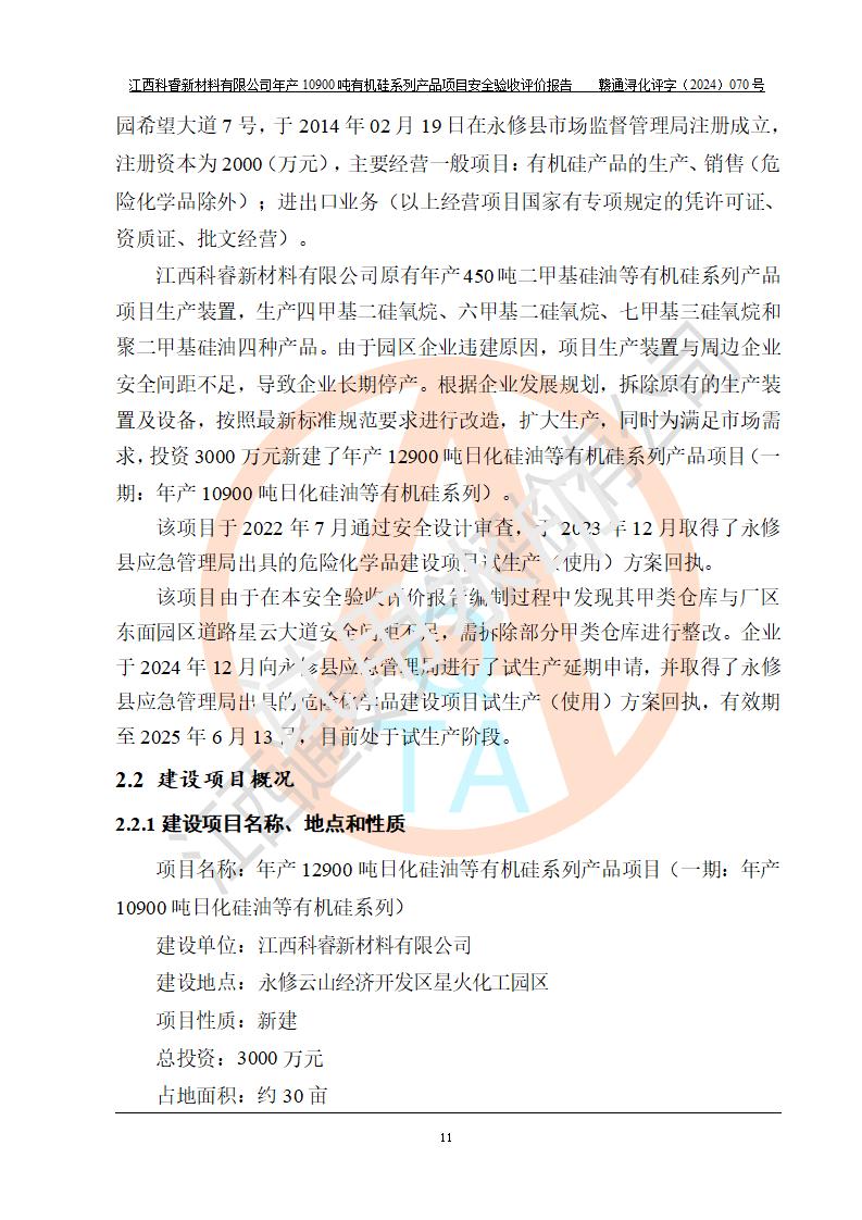 評價報告名稱 | 江西科睿新材料有限公司年產(chǎn)12900噸日化硅油等有機硅系列產(chǎn)品項目 (一期:年產(chǎn)10900噸日化硅油等有機硅系列)安全驗收評價 | |||||