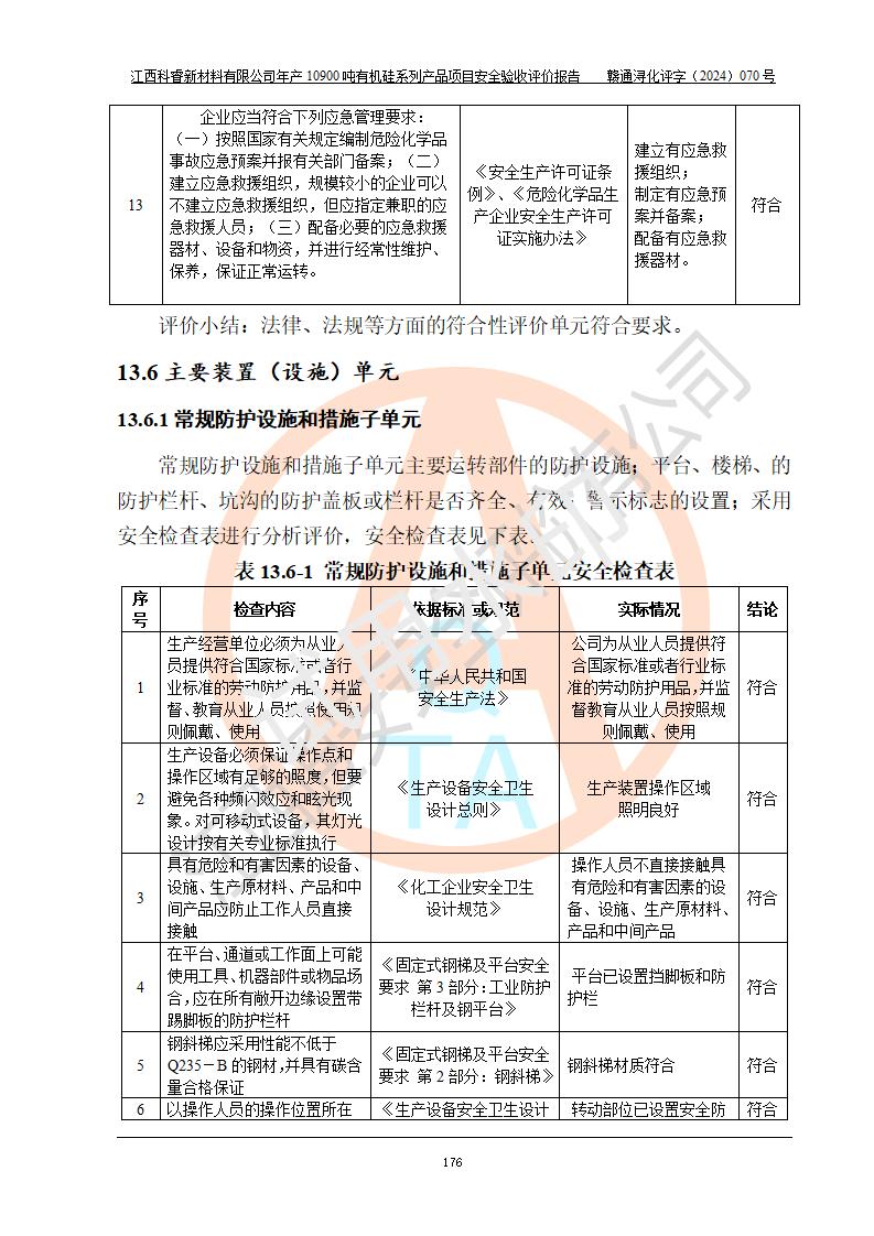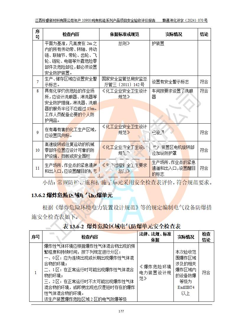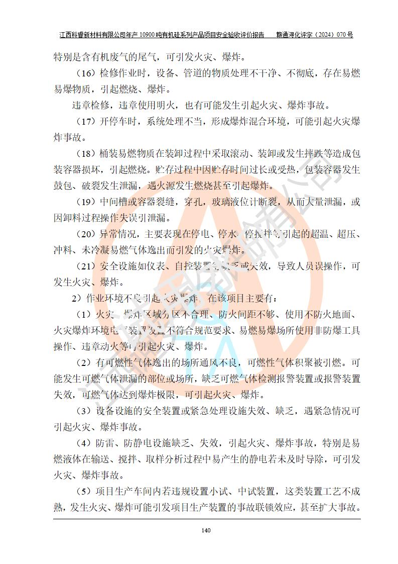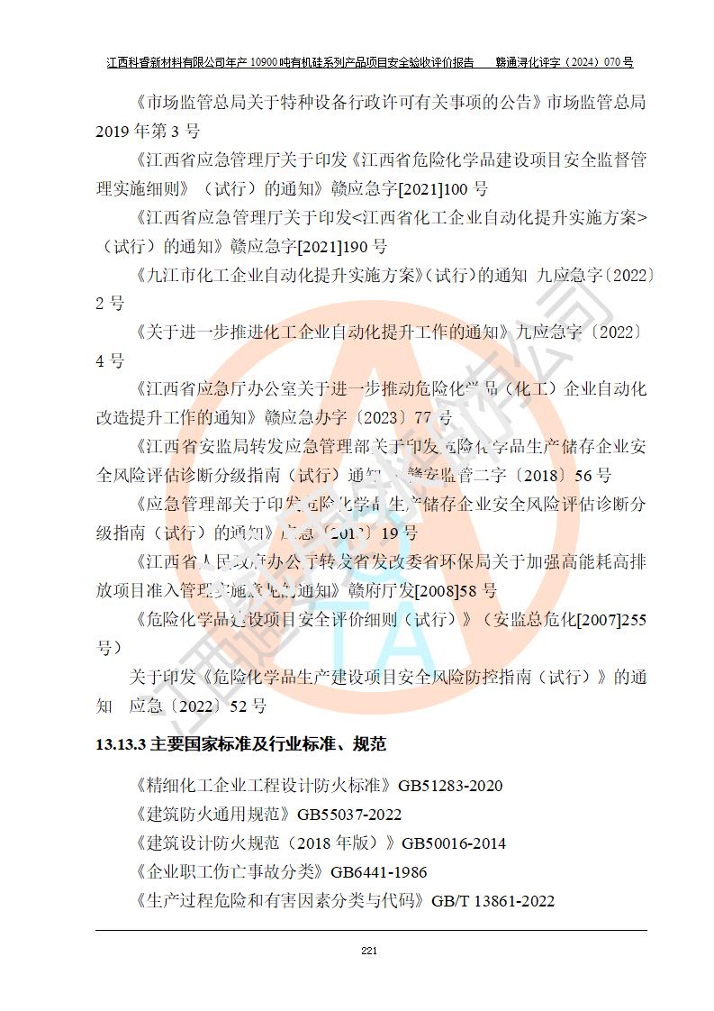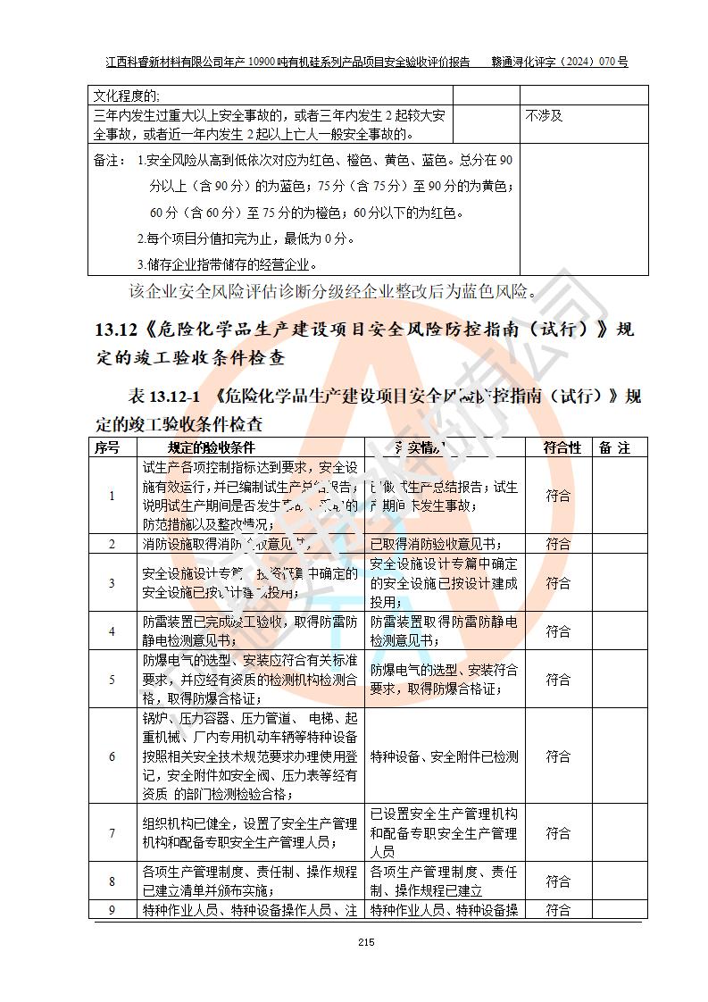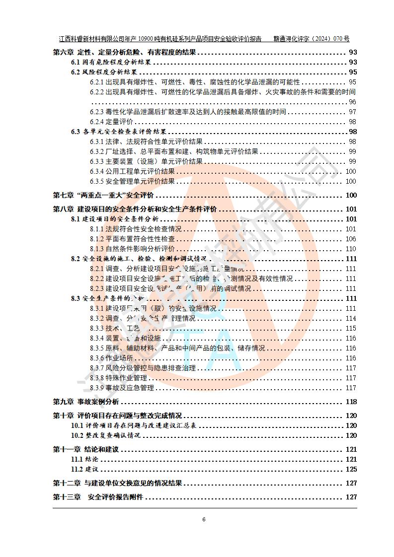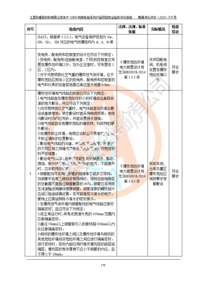 評價報告名稱 | 江西科睿新材料有限公司年產(chǎn)12900噸日化硅油等有機硅系列產(chǎn)品項目 (一期:年產(chǎn)10900噸日化硅油等有機硅系列)安全驗收評價 | |||||