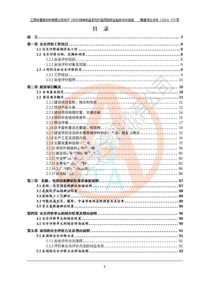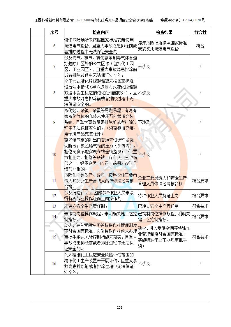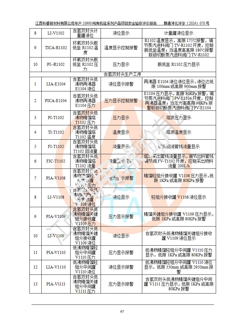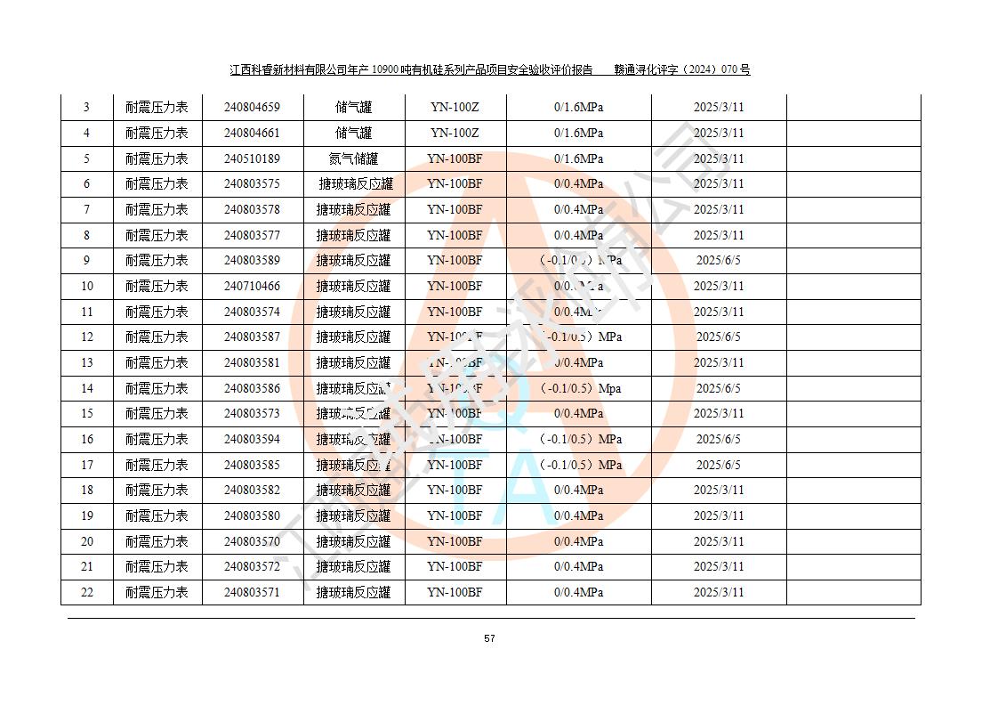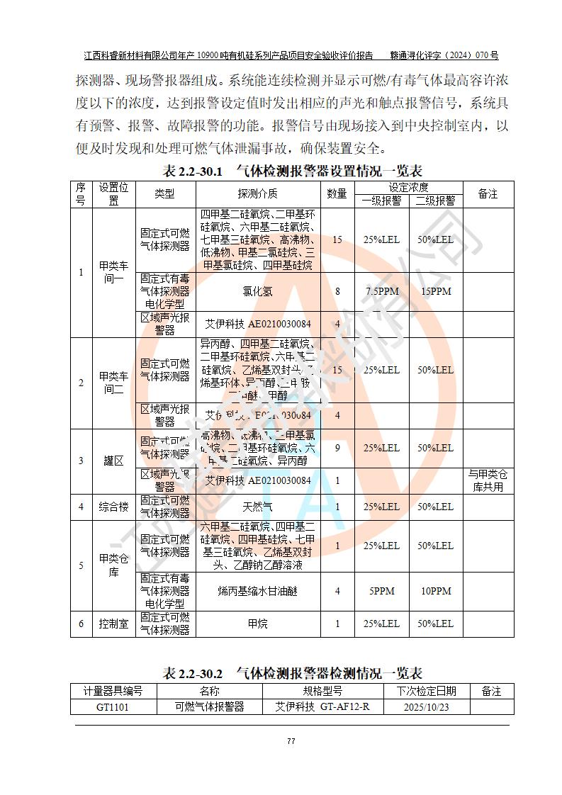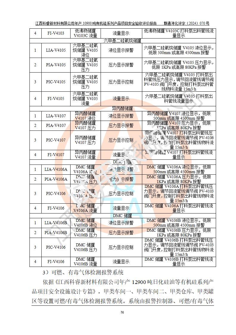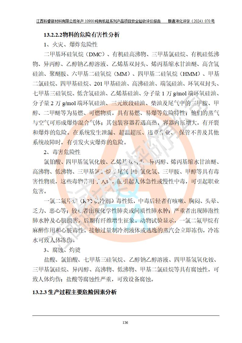 評價報告名稱 | 江西科睿新材料有限公司年產(chǎn)12900噸日化硅油等有機硅系列產(chǎn)品項目 (一期:年產(chǎn)10900噸日化硅油等有機硅系列)安全驗收評價 | |||||