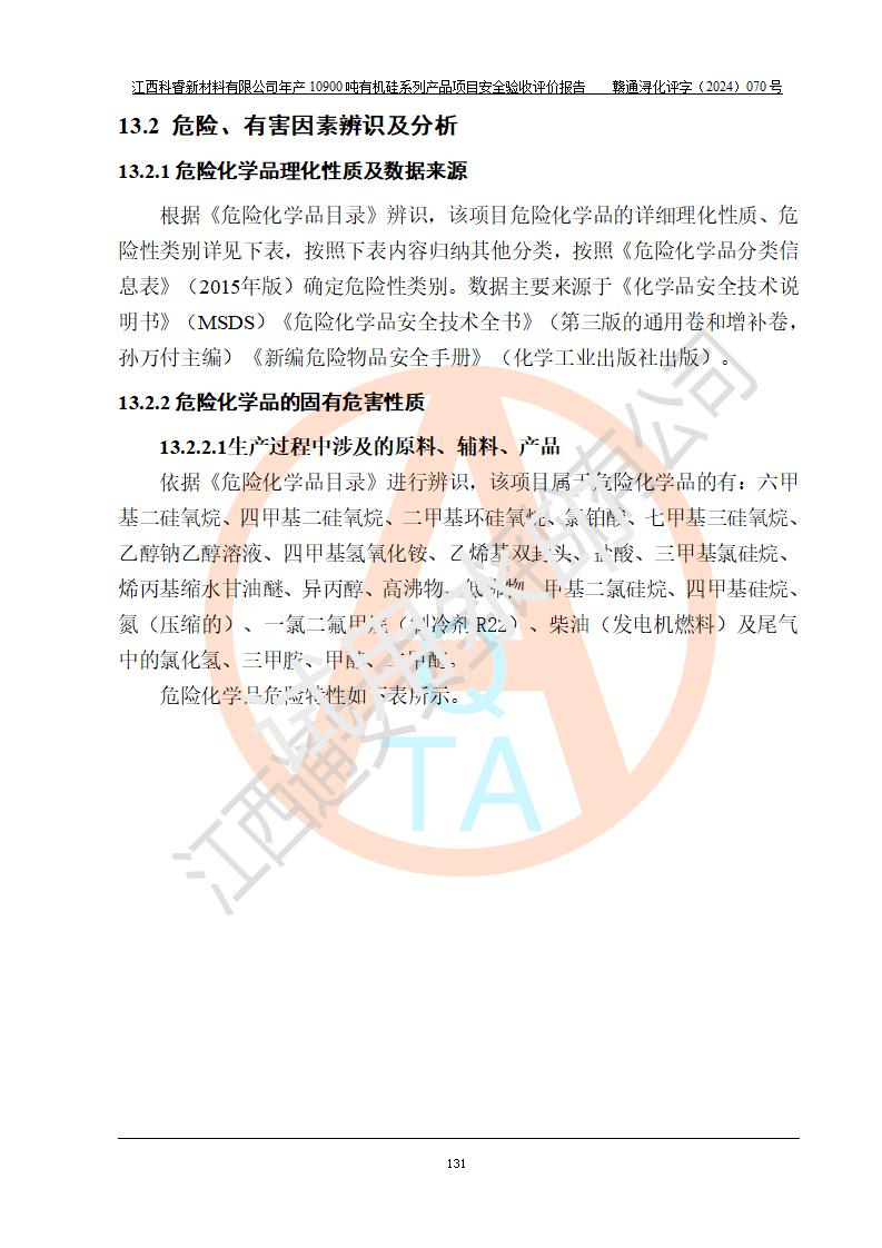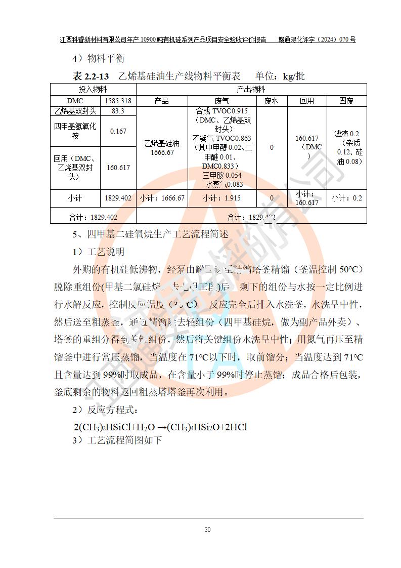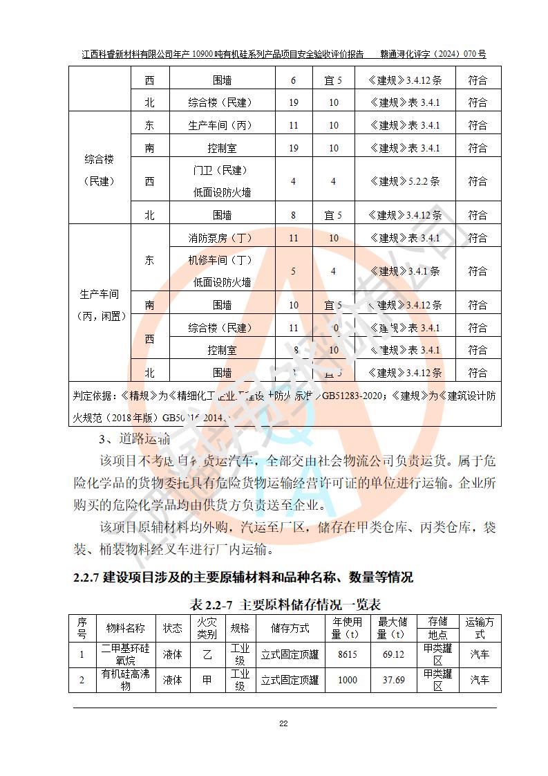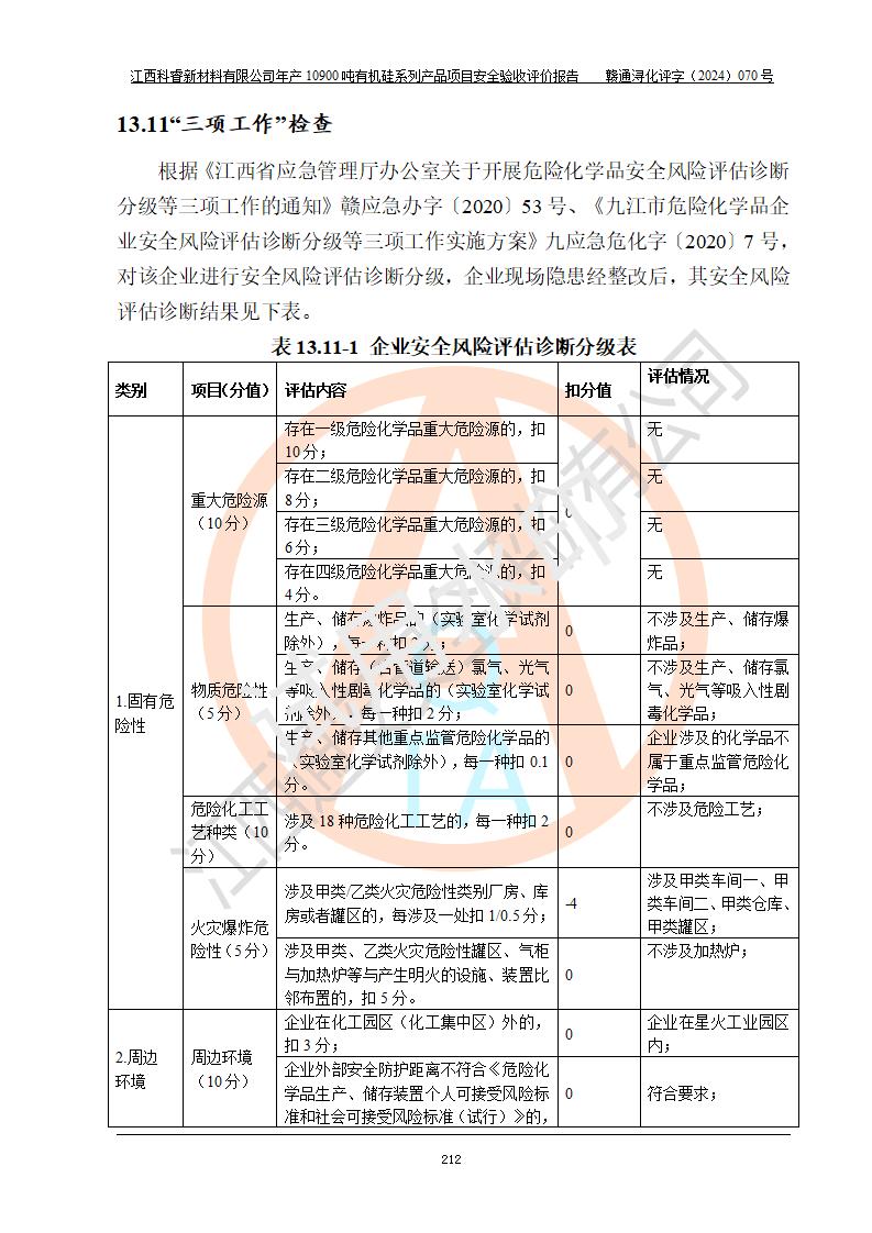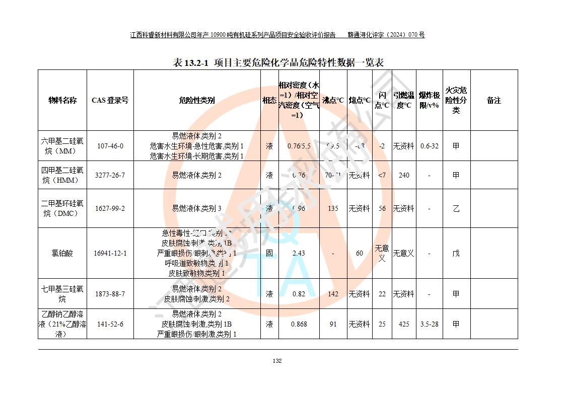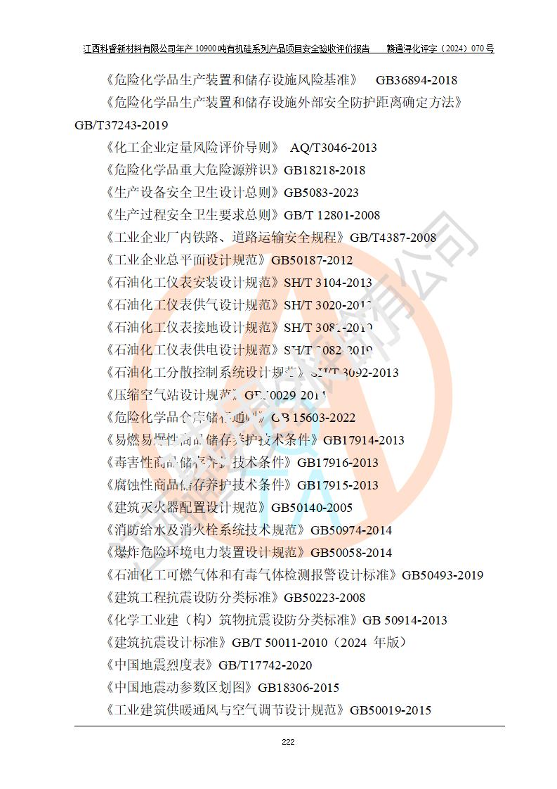 評價報告名稱 | 江西科睿新材料有限公司年產(chǎn)12900噸日化硅油等有機硅系列產(chǎn)品項目 (一期:年產(chǎn)10900噸日化硅油等有機硅系列)安全驗收評價 | |||||