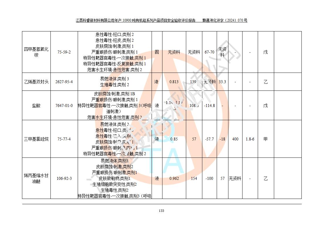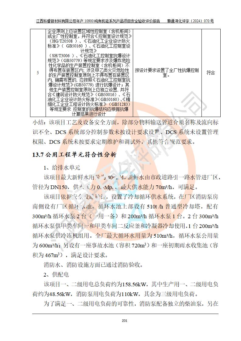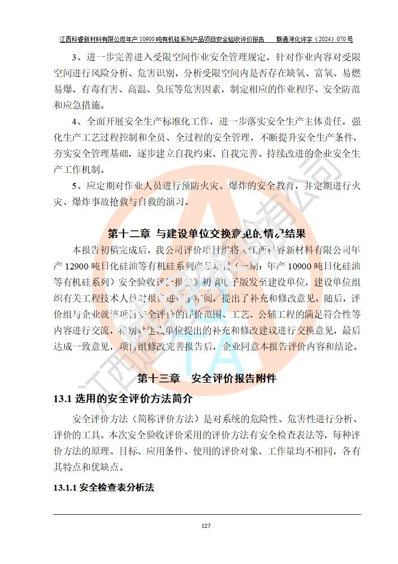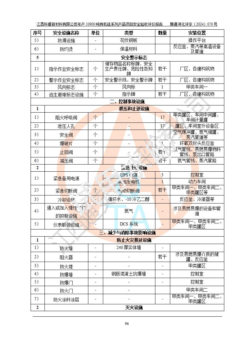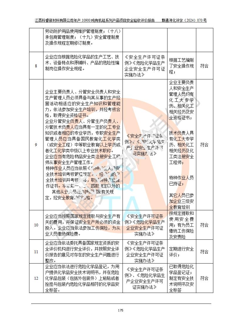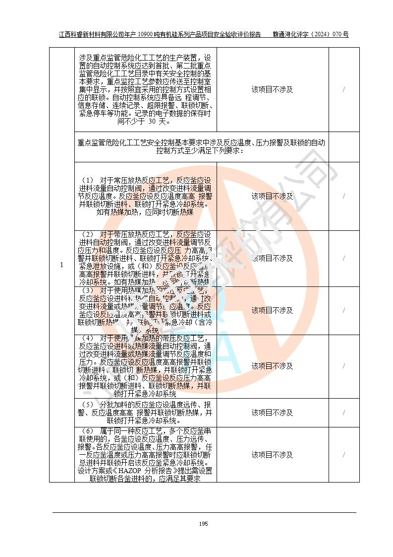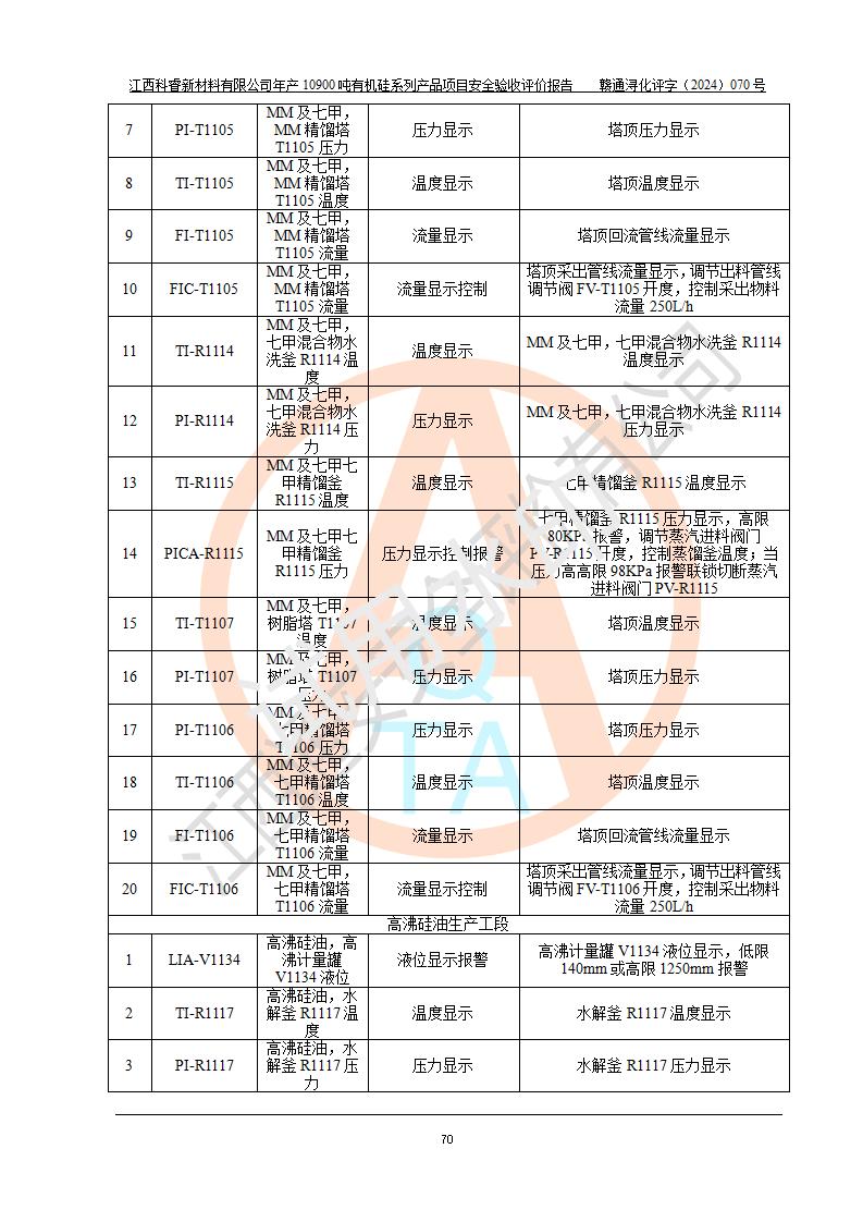 評價報告名稱 | 江西科睿新材料有限公司年產(chǎn)12900噸日化硅油等有機硅系列產(chǎn)品項目 (一期:年產(chǎn)10900噸日化硅油等有機硅系列)安全驗收評價 | |||||