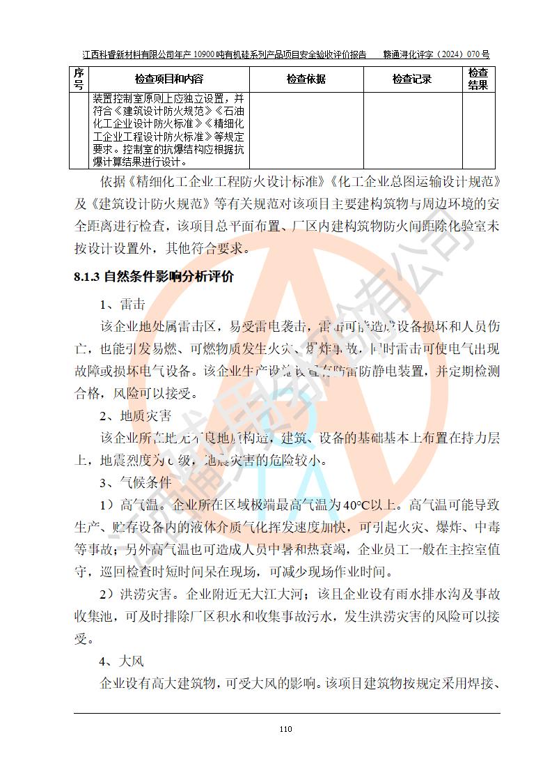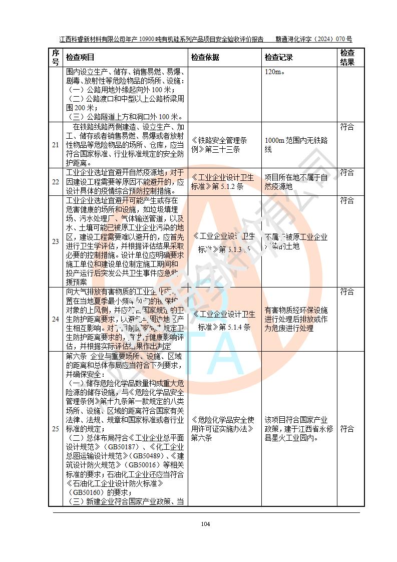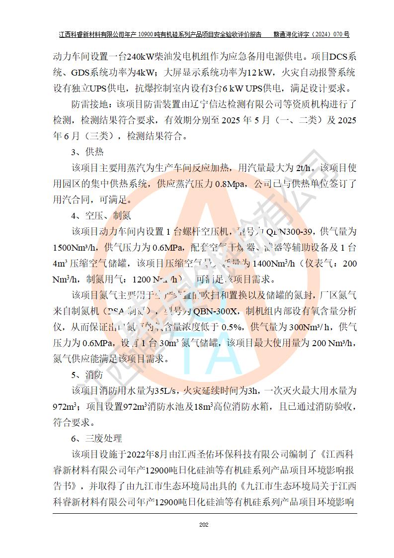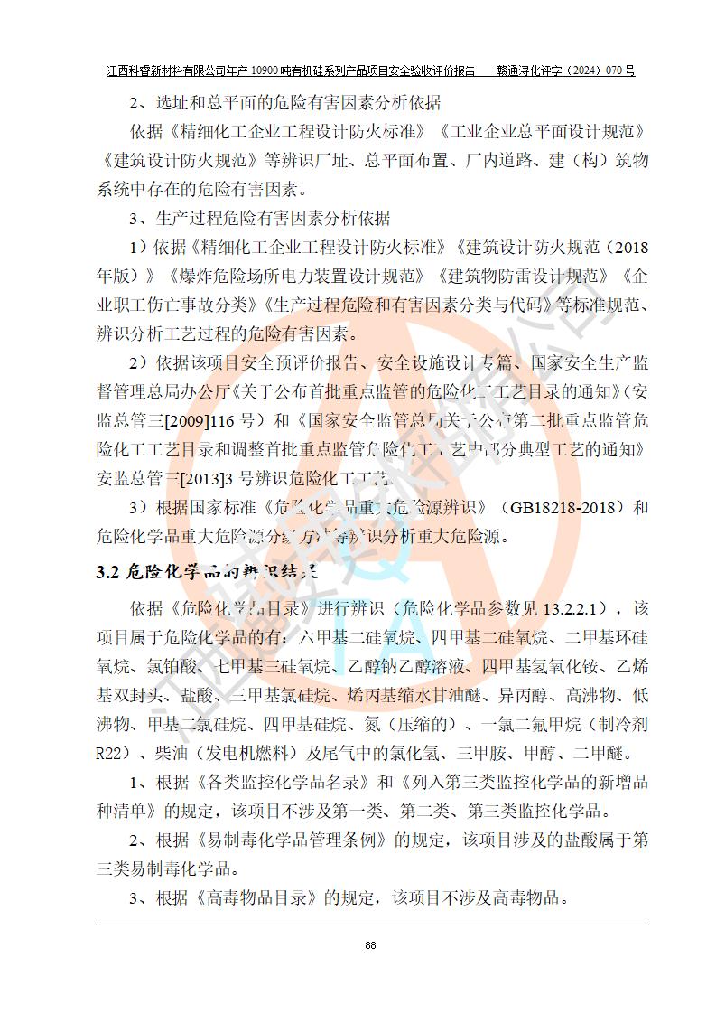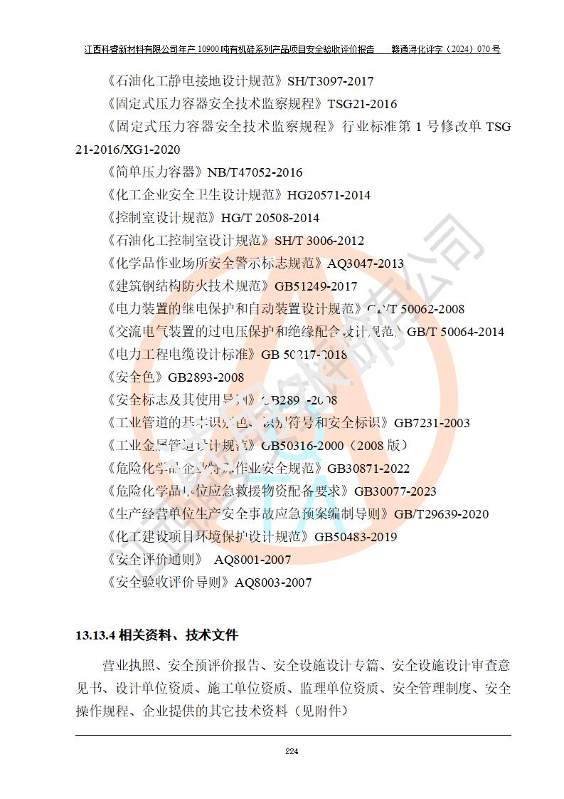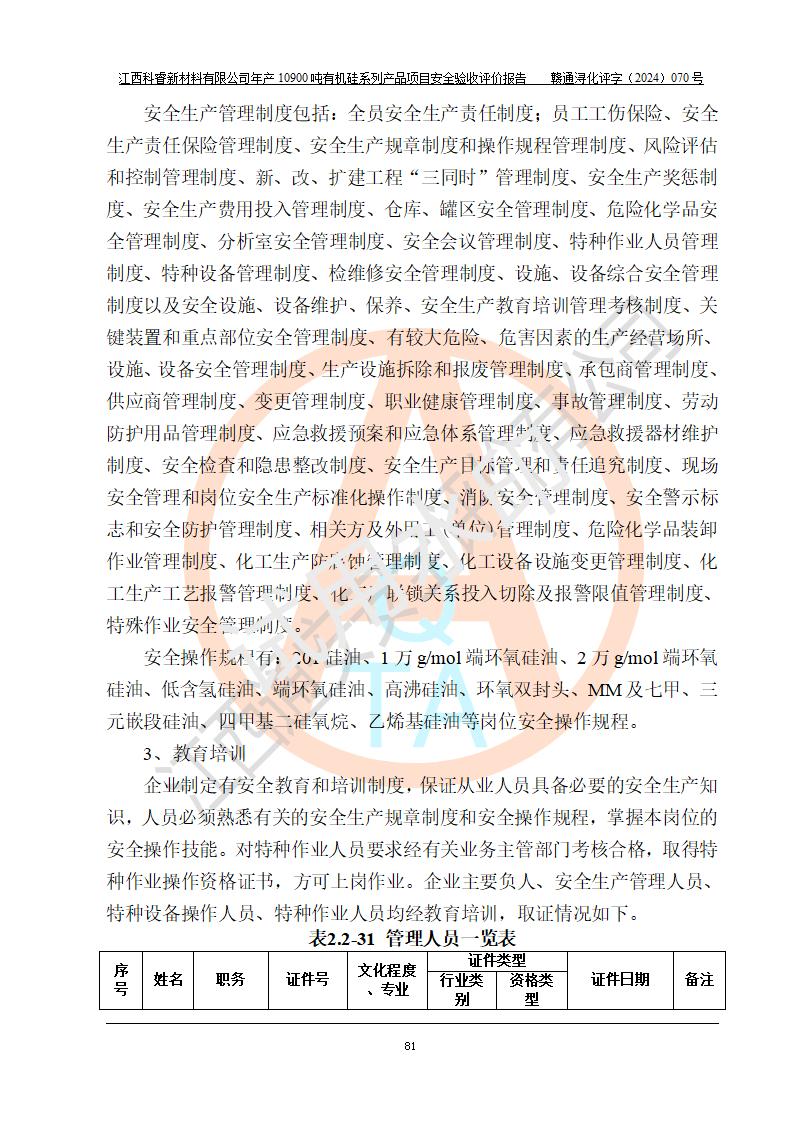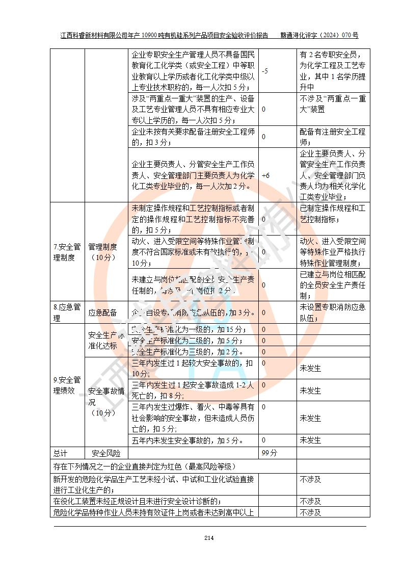 評價報告名稱 | 江西科睿新材料有限公司年產(chǎn)12900噸日化硅油等有機硅系列產(chǎn)品項目 (一期:年產(chǎn)10900噸日化硅油等有機硅系列)安全驗收評價 | |||||