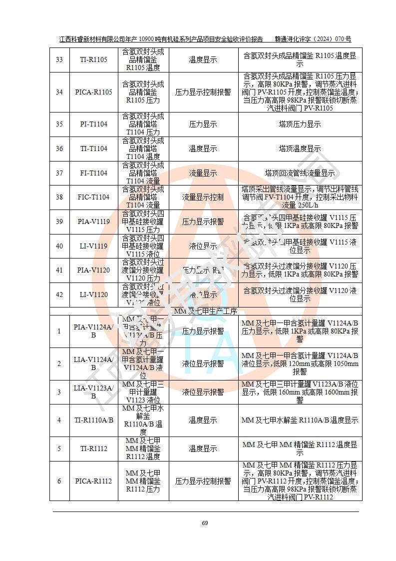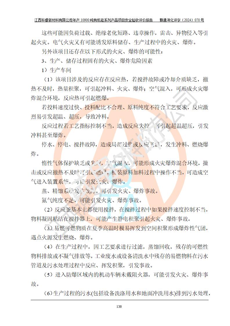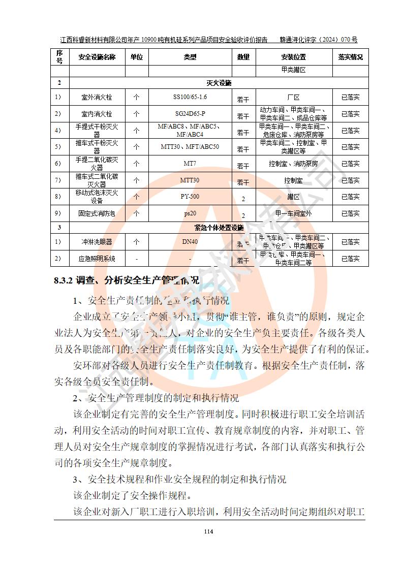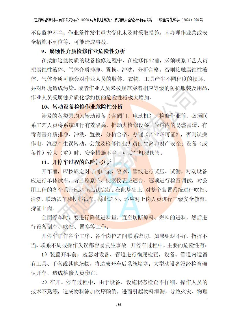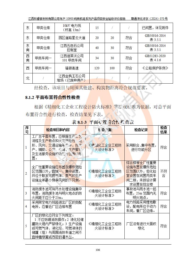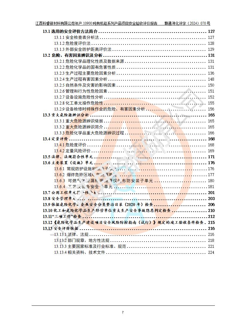 評價報告名稱 | 江西科睿新材料有限公司年產(chǎn)12900噸日化硅油等有機硅系列產(chǎn)品項目 (一期:年產(chǎn)10900噸日化硅油等有機硅系列)安全驗收評價 | |||||