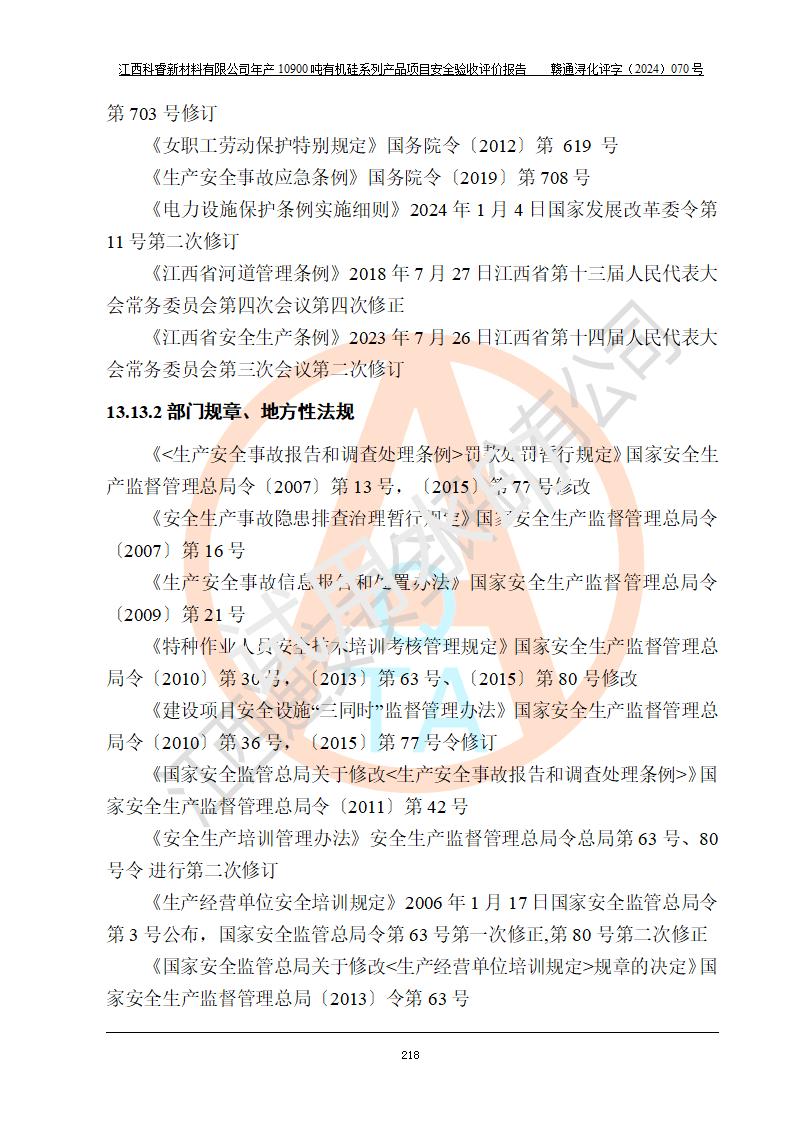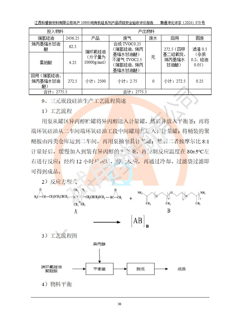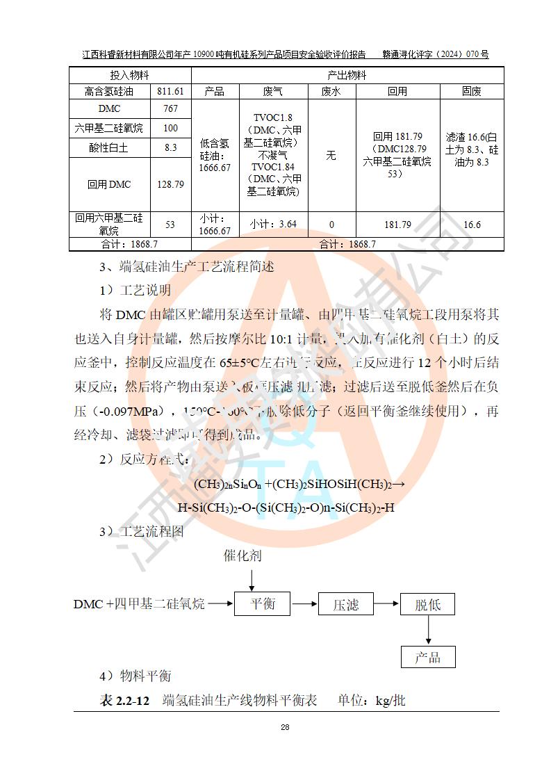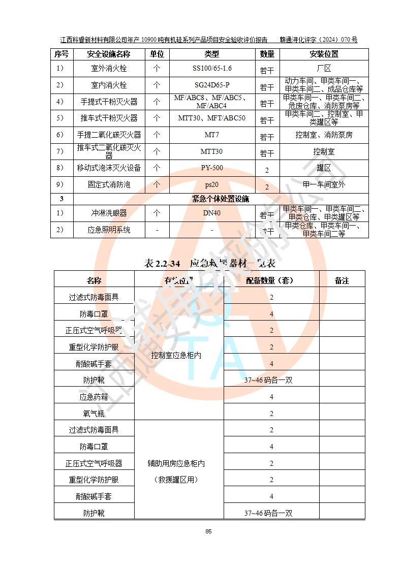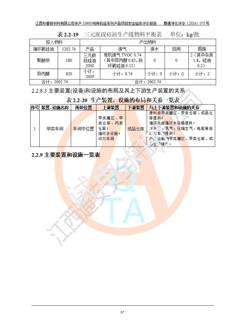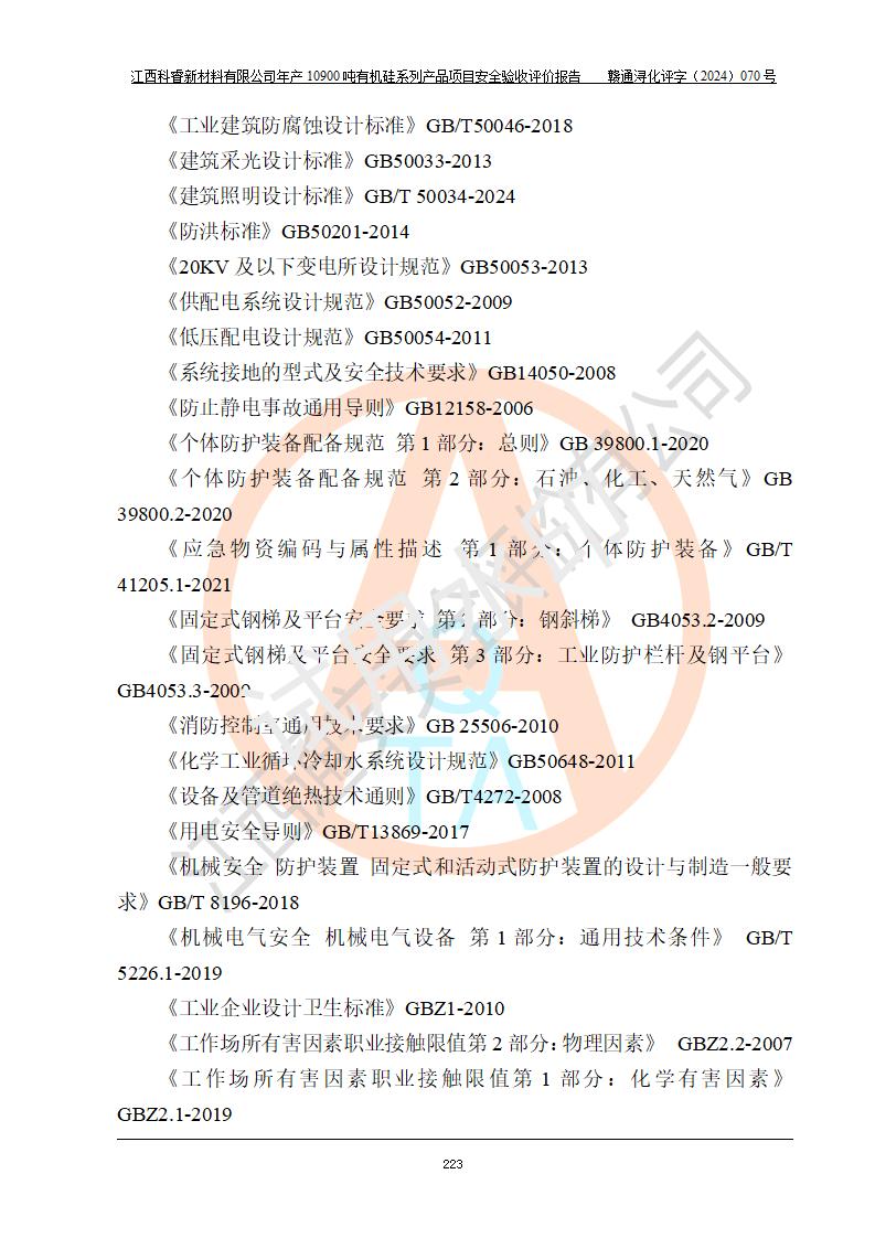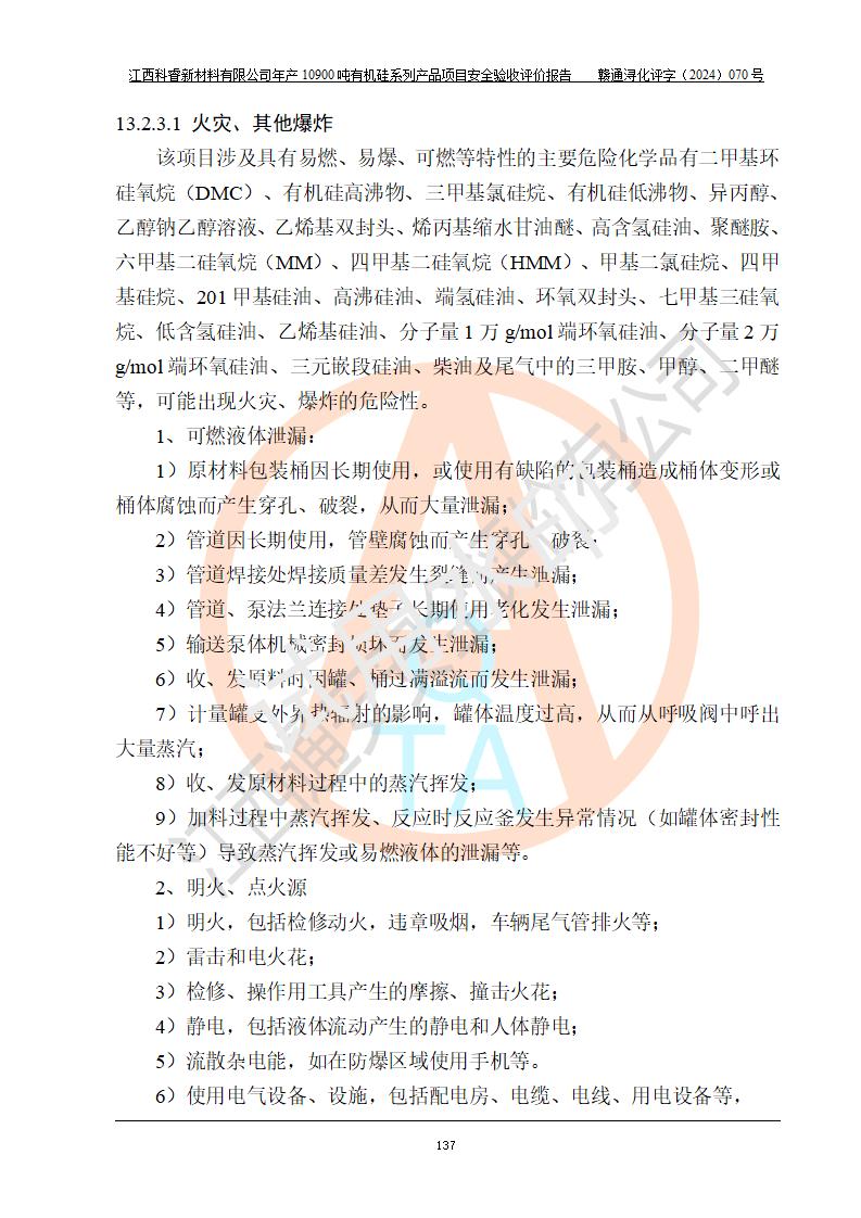 評價報告名稱 | 江西科睿新材料有限公司年產(chǎn)12900噸日化硅油等有機硅系列產(chǎn)品項目 (一期:年產(chǎn)10900噸日化硅油等有機硅系列)安全驗收評價 | |||||