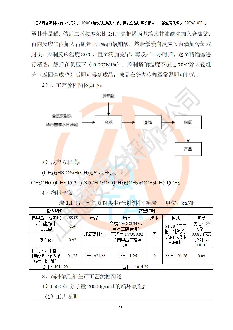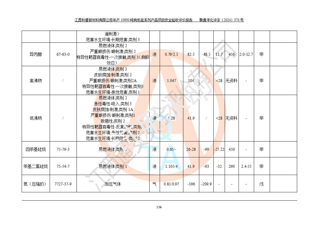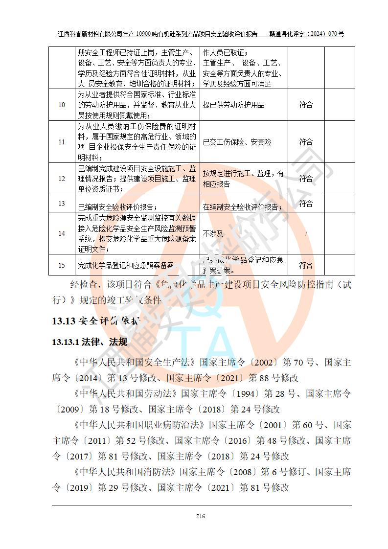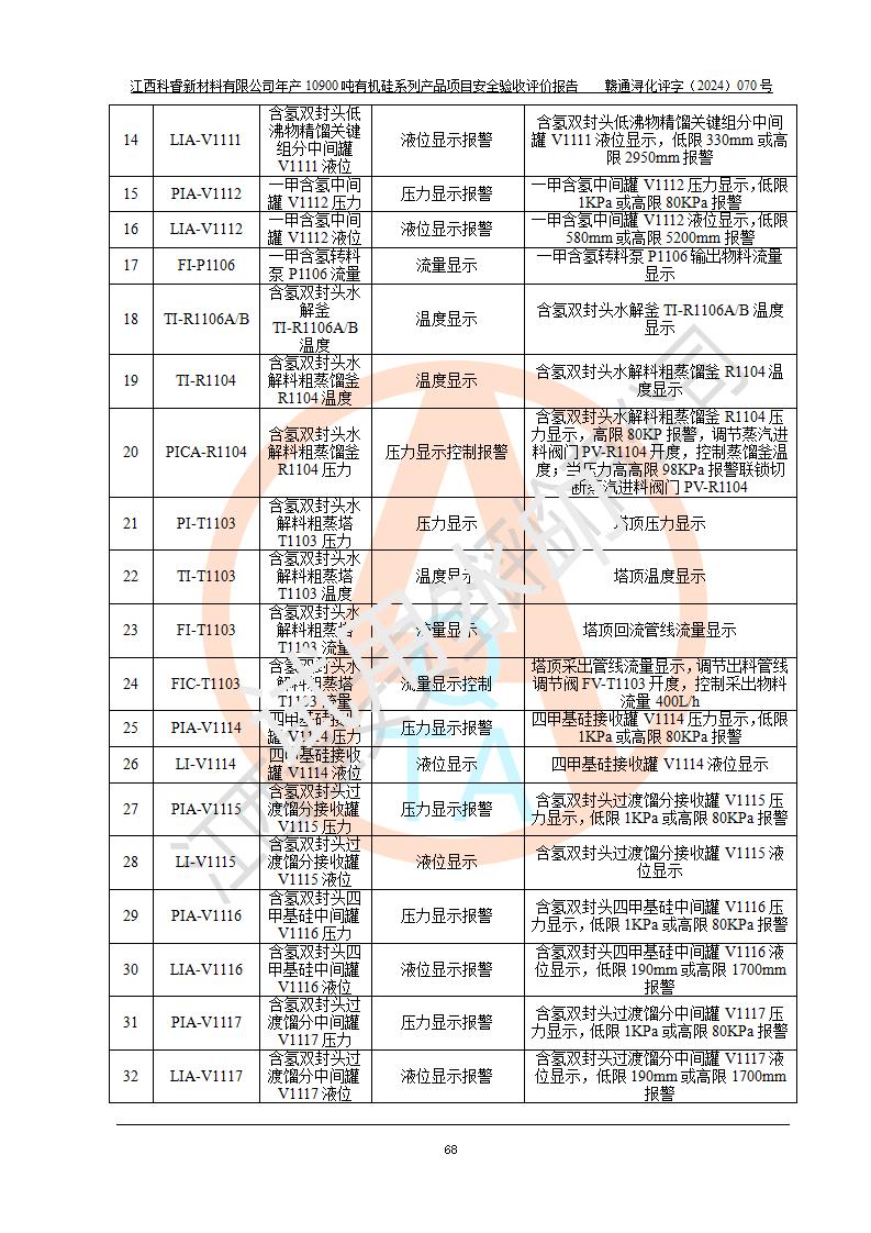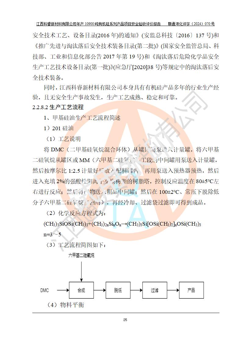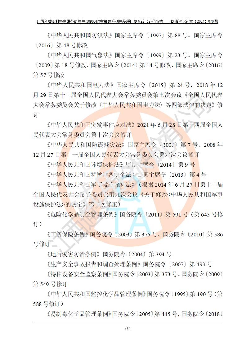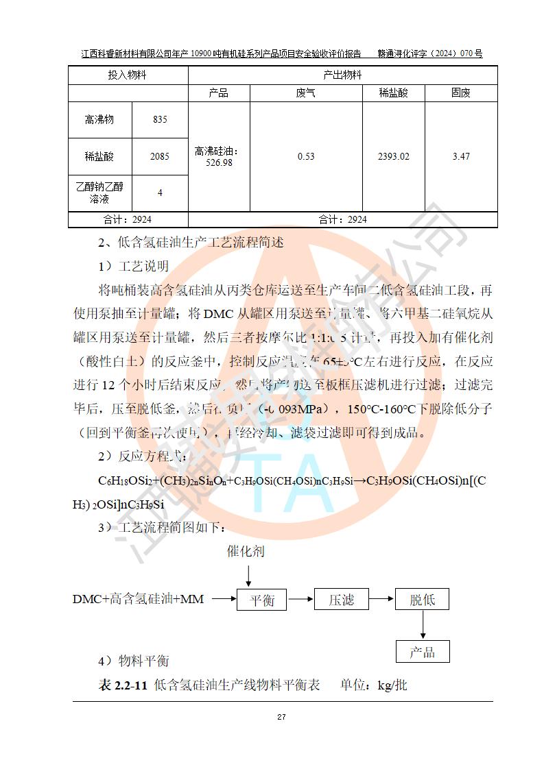 評價報告名稱 | 江西科睿新材料有限公司年產(chǎn)12900噸日化硅油等有機硅系列產(chǎn)品項目 (一期:年產(chǎn)10900噸日化硅油等有機硅系列)安全驗收評價 | |||||