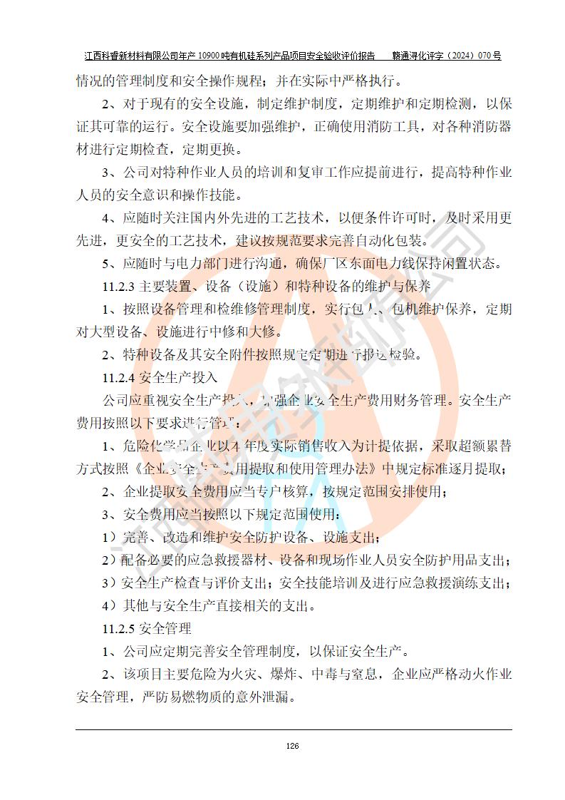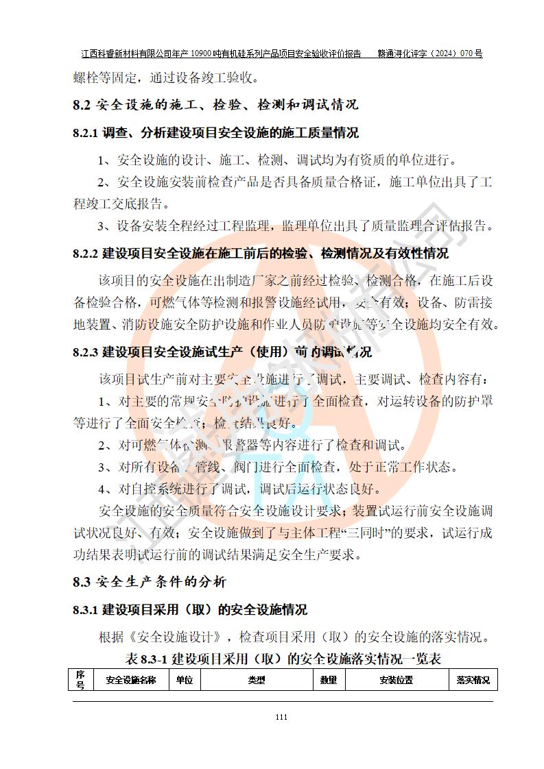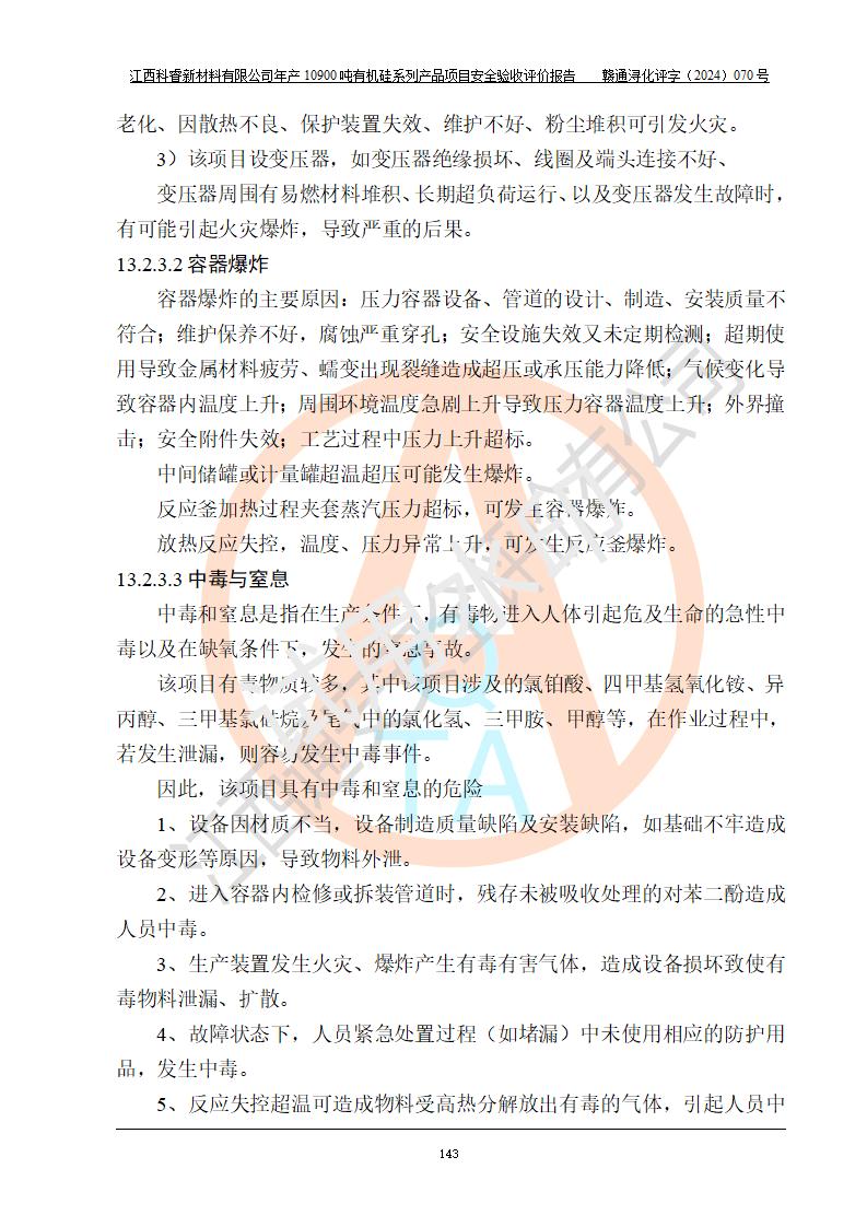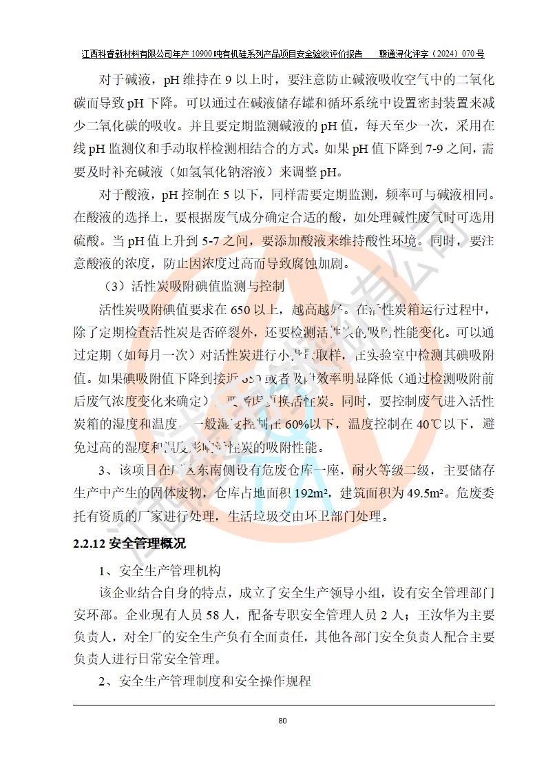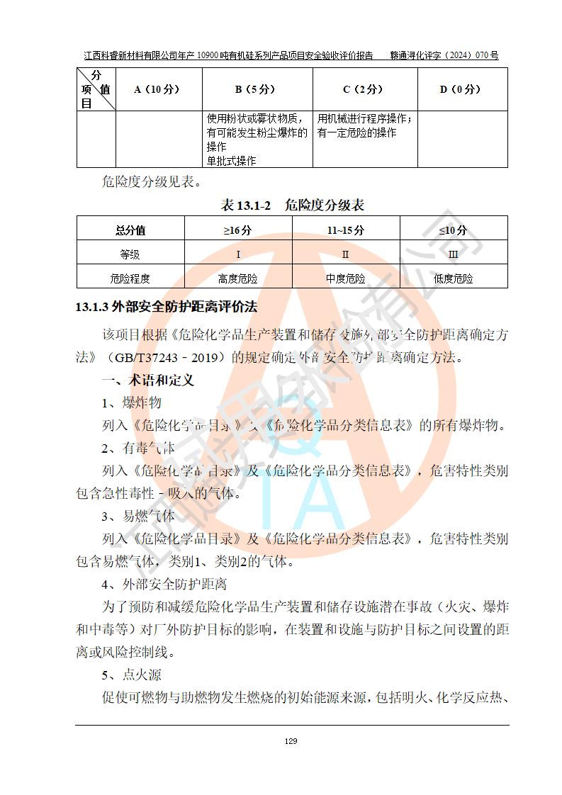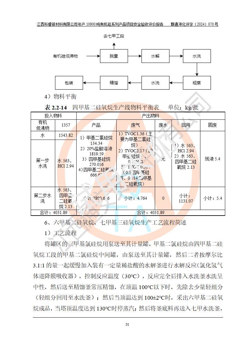 評價報告名稱 | 江西科睿新材料有限公司年產(chǎn)12900噸日化硅油等有機硅系列產(chǎn)品項目 (一期:年產(chǎn)10900噸日化硅油等有機硅系列)安全驗收評價 | |||||