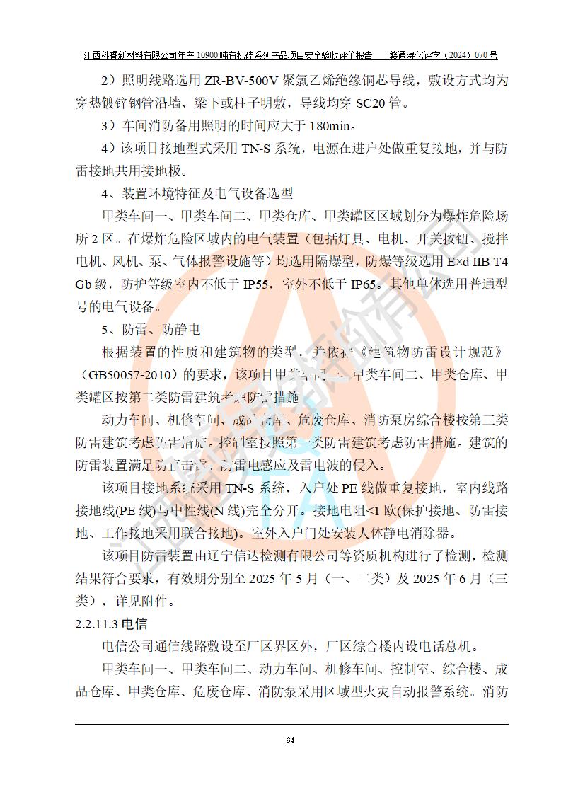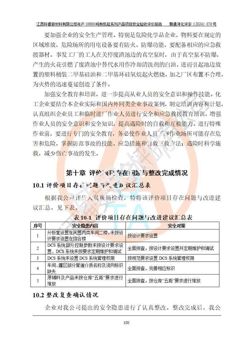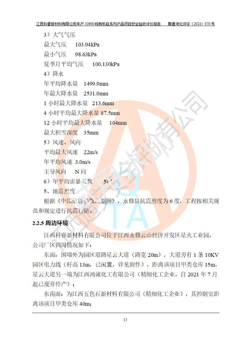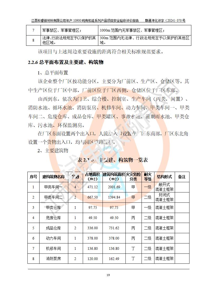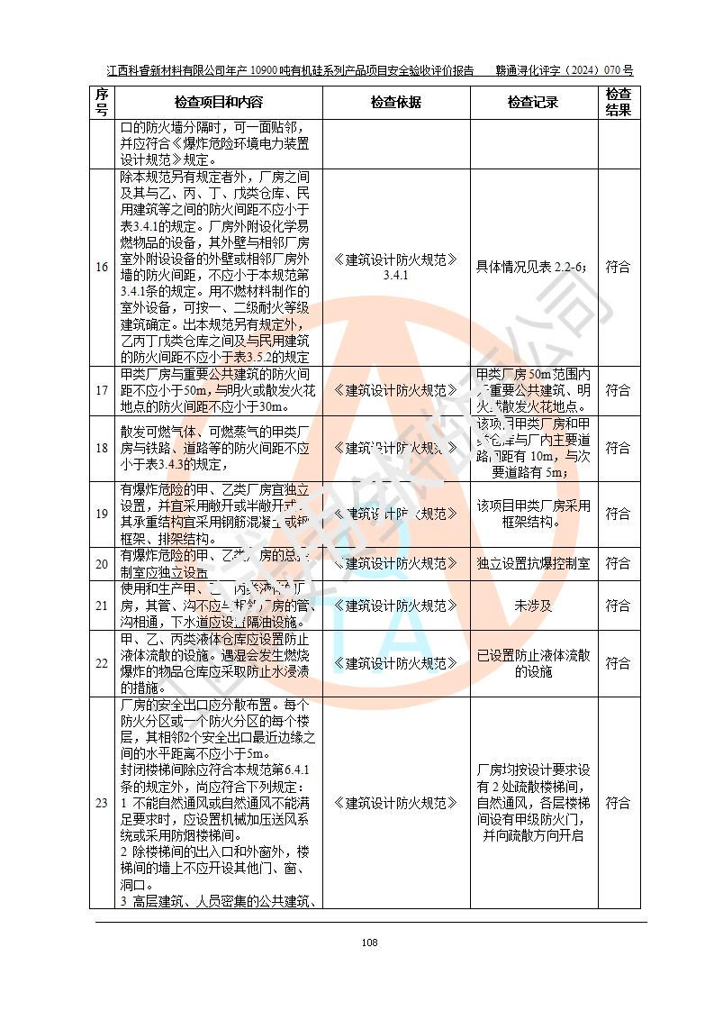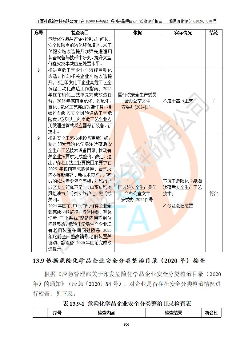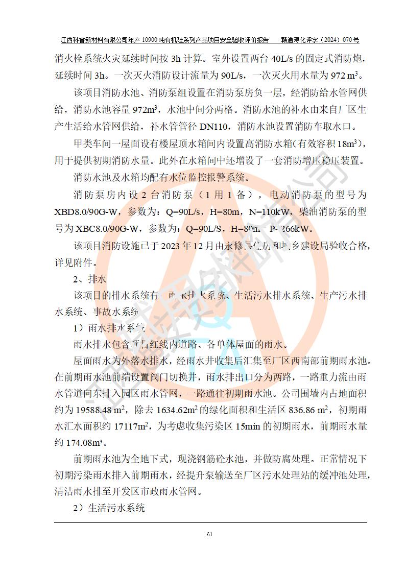 評價報告名稱 | 江西科睿新材料有限公司年產(chǎn)12900噸日化硅油等有機硅系列產(chǎn)品項目 (一期:年產(chǎn)10900噸日化硅油等有機硅系列)安全驗收評價 | |||||
