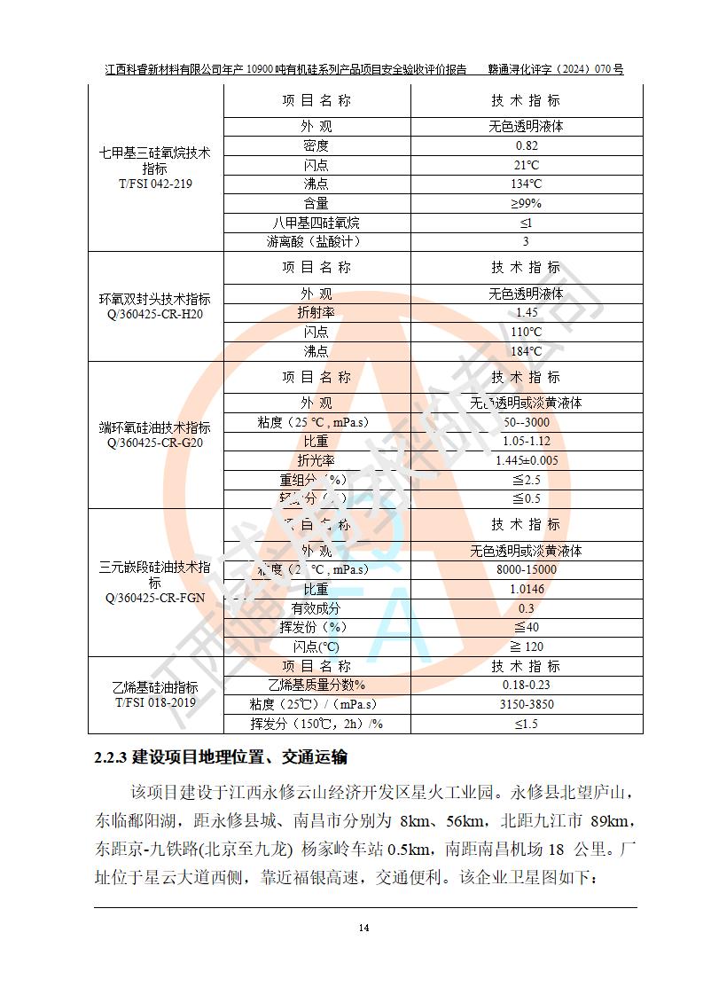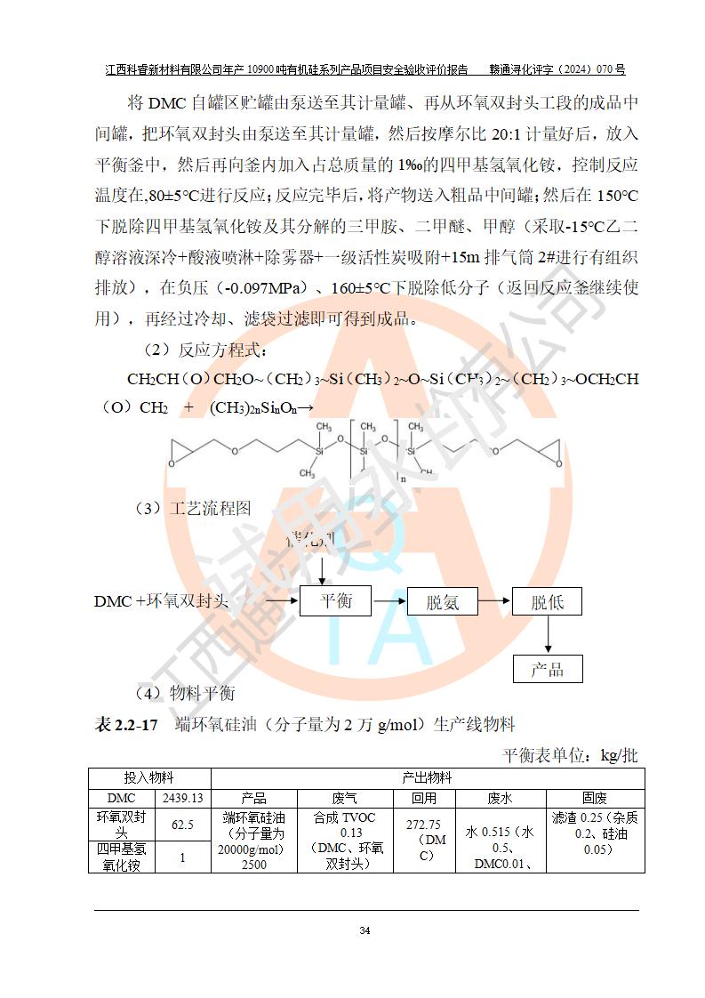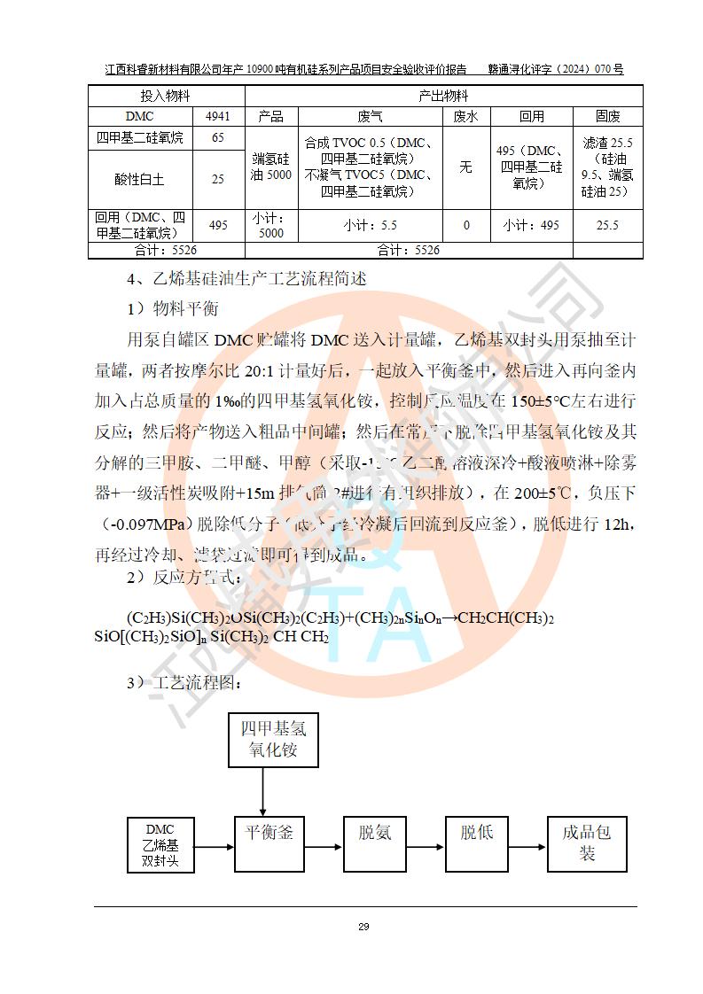 項目簡介 | 江西科睿新材料有限公司位于江西省永修縣云山經(jīng)濟開發(fā)區(qū)星火工業(yè)園希望大道7號,于2014年02月19日在永修縣市場監(jiān)督管理局注冊成立,注冊資本為2000(萬元),主要經(jīng)營一般項目:有機硅產(chǎn)品的生產(chǎn)、銷售(危險化學品除外);進出口業(yè)務(wù)(以上經(jīng)營項目**有專項規(guī)定的憑許可證、資質(zhì)證、批文經(jīng)營)。 江西科睿新材料有限公司原有年產(chǎn)450噸二甲基硅油等有機硅系列產(chǎn)品項目生產(chǎn)裝置,生產(chǎn)四甲基二硅氧烷、六甲基二硅氧烷、七甲基三硅氧烷和聚二甲基硅油四種產(chǎn)品。由于園區(qū)周邊企業(yè)違建原因,項目生產(chǎn)裝置與周邊企業(yè)安全間距不足,導(dǎo)致企業(yè)長期停產(chǎn)。根據(jù)企業(yè)發(fā)展規(guī)劃,拆除原有的生產(chǎn)裝置及設(shè)備,按照*新標準規(guī)范要求進行改造,擴大生產(chǎn),同時為滿足市場需求,投資3000萬元新建了年產(chǎn)12900噸日化硅油等有機硅系列產(chǎn)品項目(一期:年產(chǎn)10900噸日化硅油等有機硅系列)(以下簡稱該項目)。 | |||||