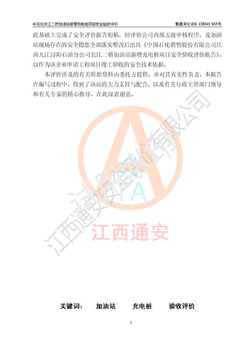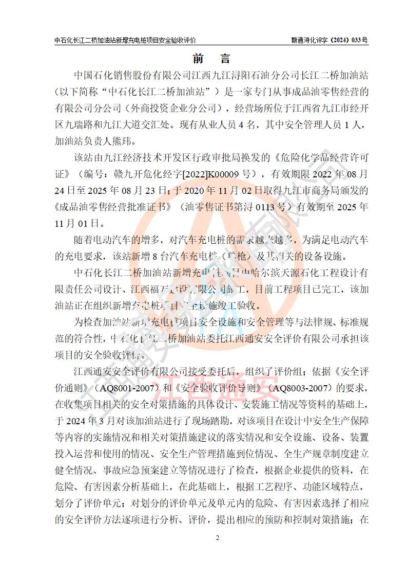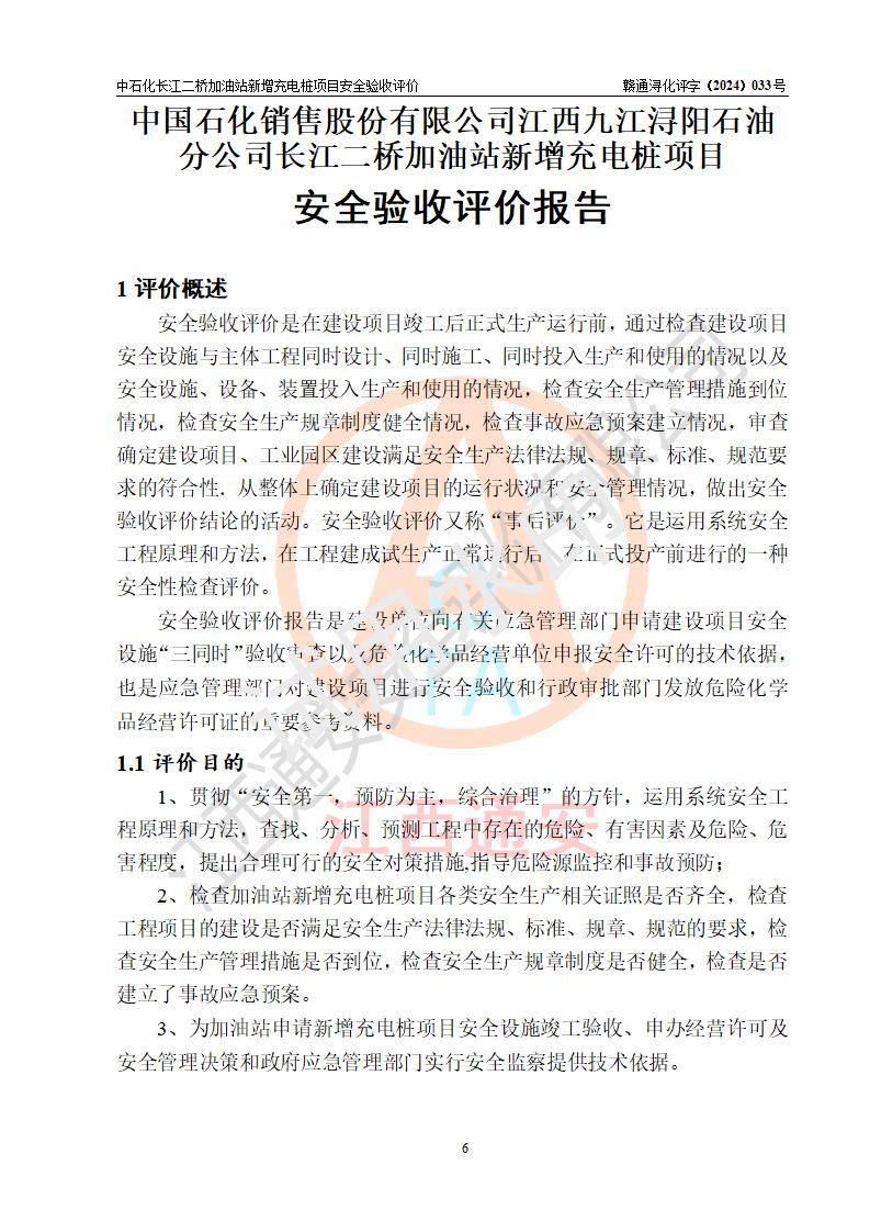 評價報告名稱 | 中國石化銷售股份有限公司江西九江潯陽石油分公司長江二橋加油站新增充電樁項目安全驗收評價報告 | |||