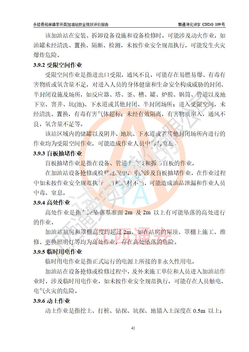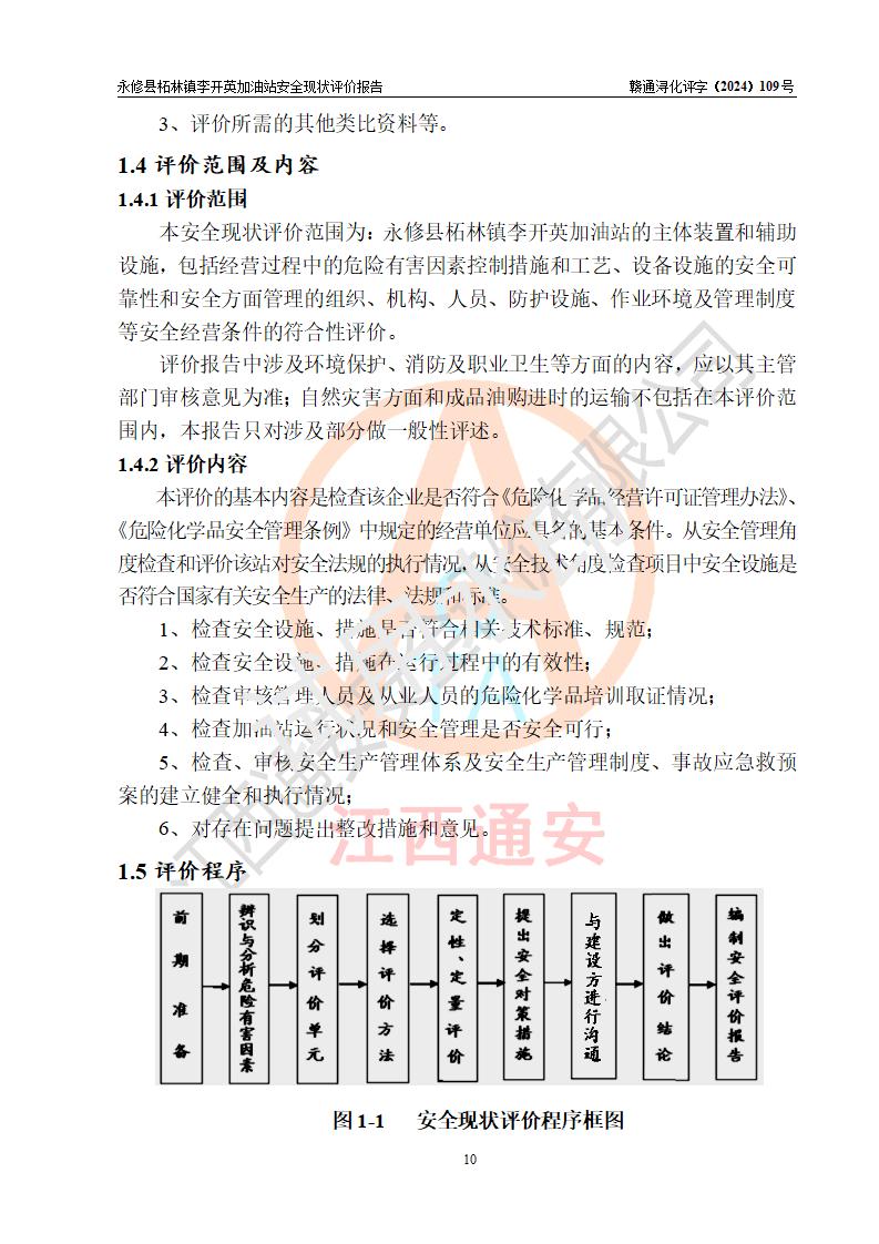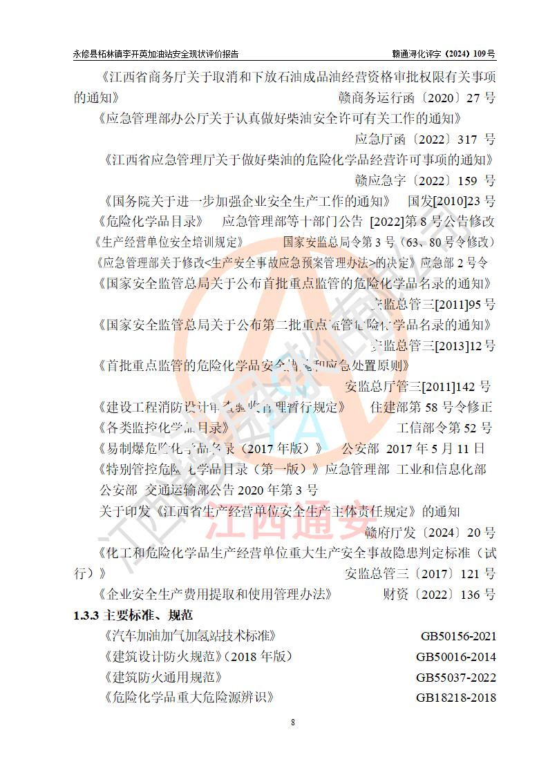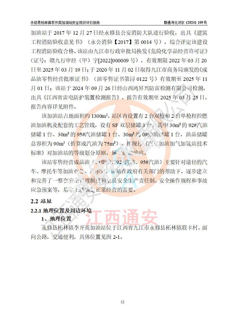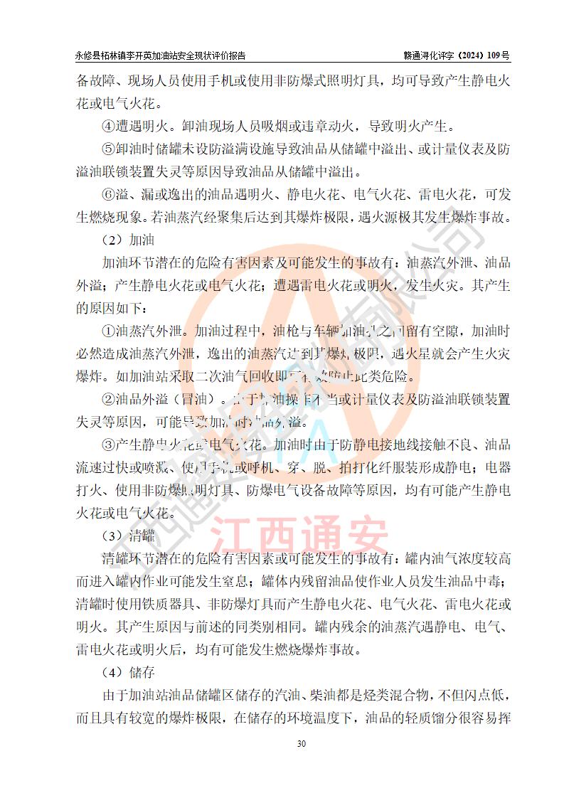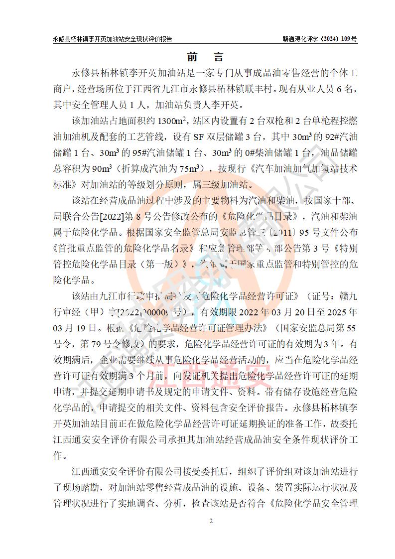 評價報告名稱 | 永修縣柘林鎮(zhèn)李開英加油站安全現狀評價報告 | |||