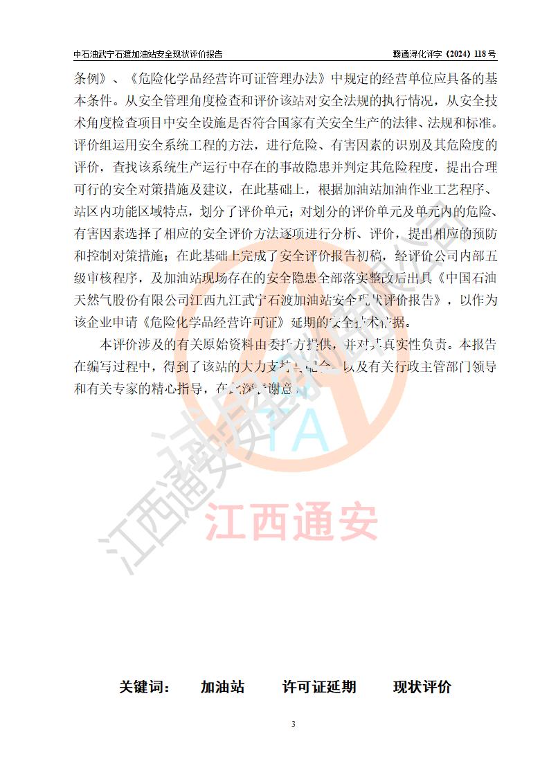 評價報(bào)告名稱 | 中國石油天然氣股份有限公司江西九江武寧石渡加油站安全現(xiàn)狀評價報(bào)告 | |||