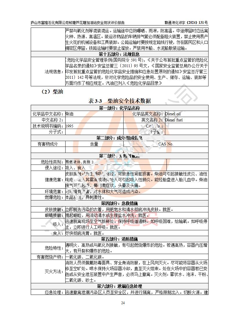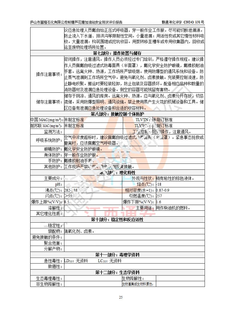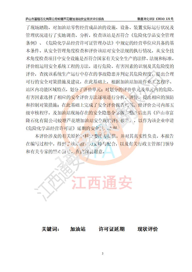 評價(jià)報(bào)告名稱 | 廬山市富隆石化有限公司蛟塘蘆花塘加油站安全現(xiàn)狀評價(jià)報(bào)告 | |||