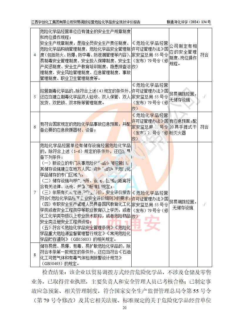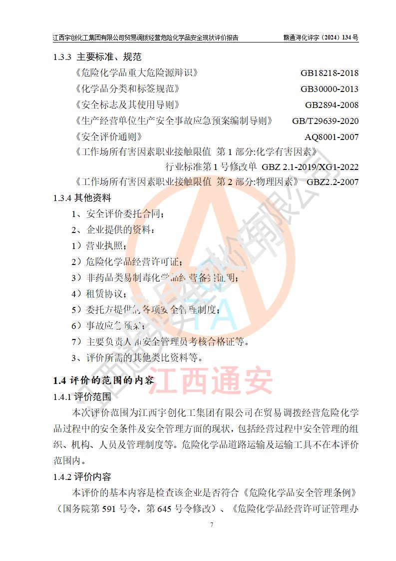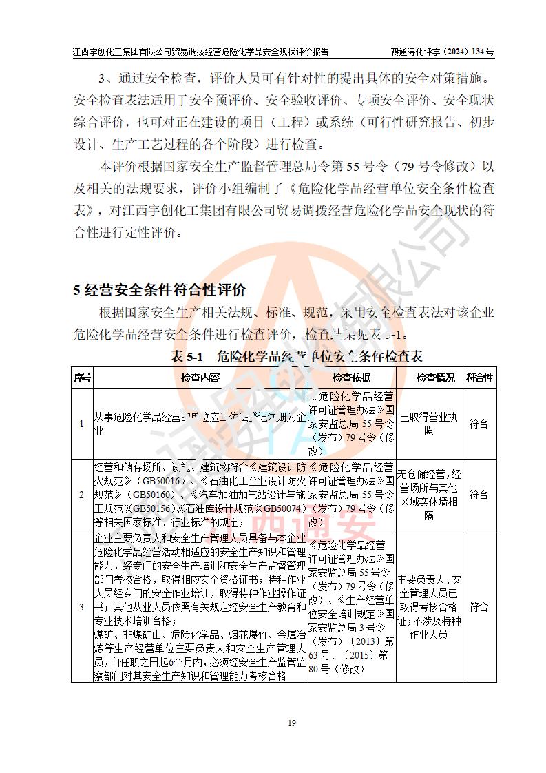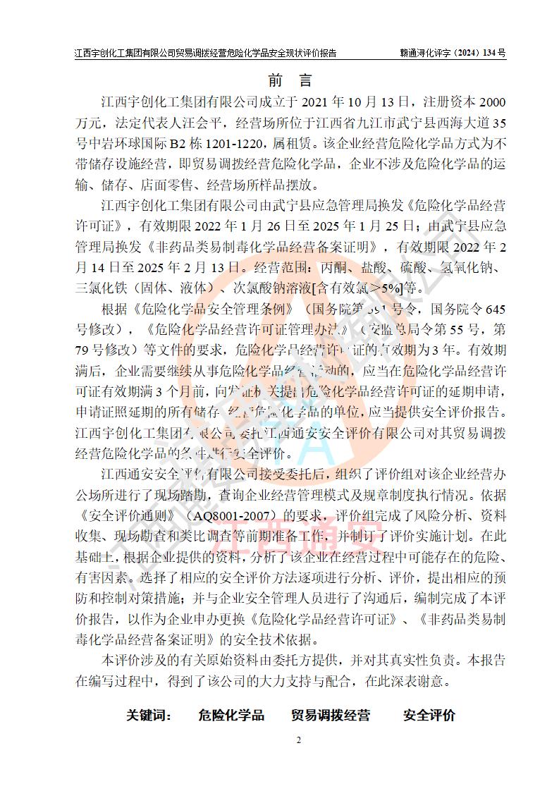 評價報告名稱 | 江西宇創(chuàng)化工集團有限公司貿(mào)易調(diào)撥經(jīng)營危險化學品安全現(xiàn)狀評價報告 | |||