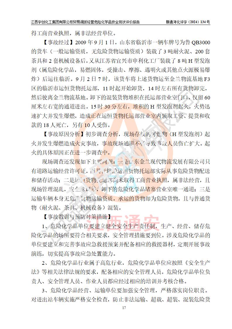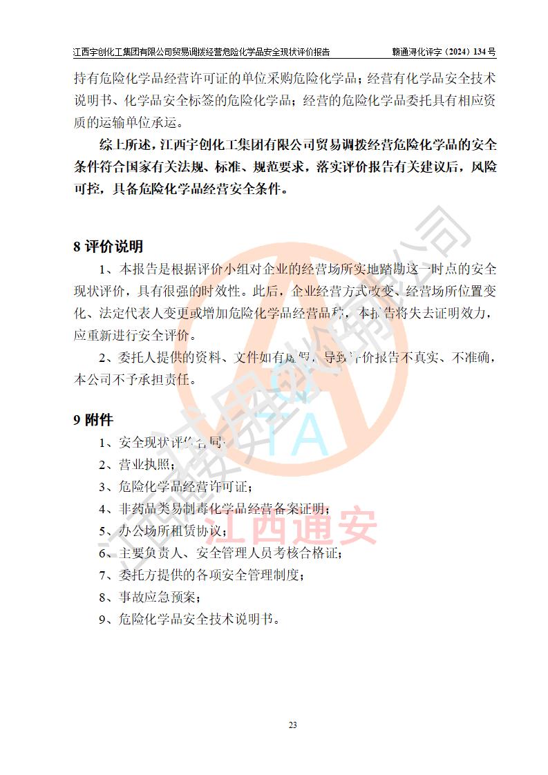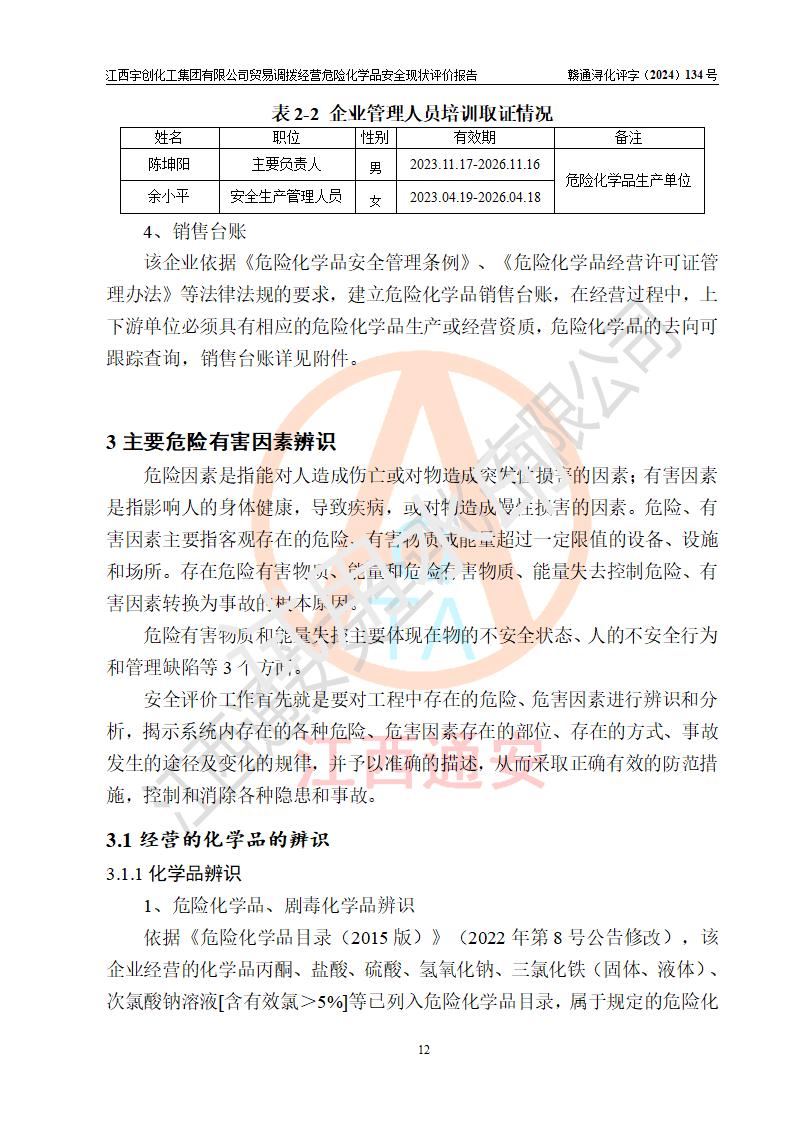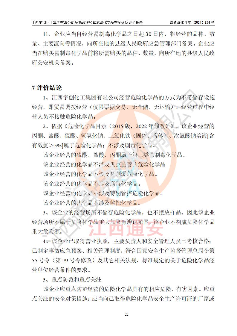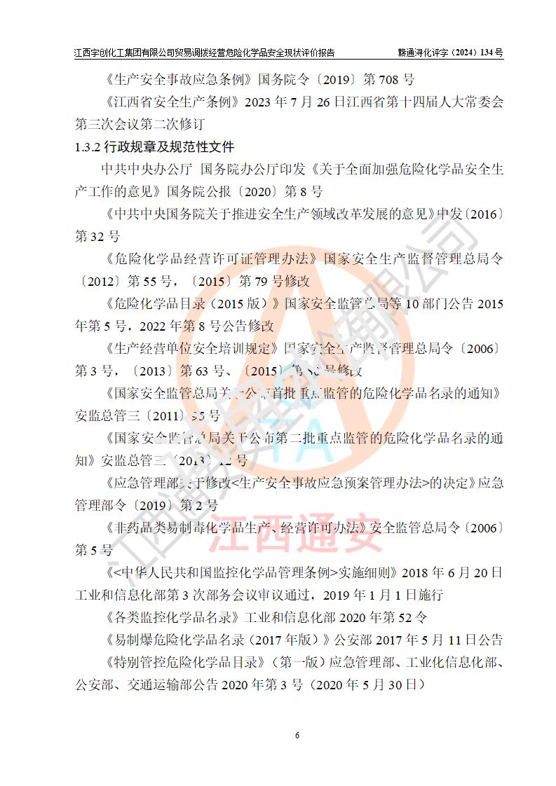 評價報告名稱 | 江西宇創(chuàng)化工集團有限公司貿(mào)易調(diào)撥經(jīng)營危險化學品安全現(xiàn)狀評價報告 | |||