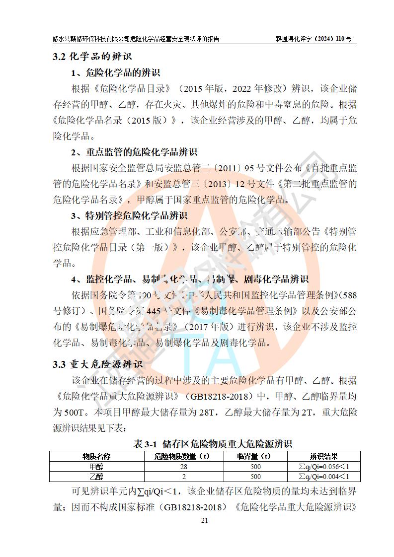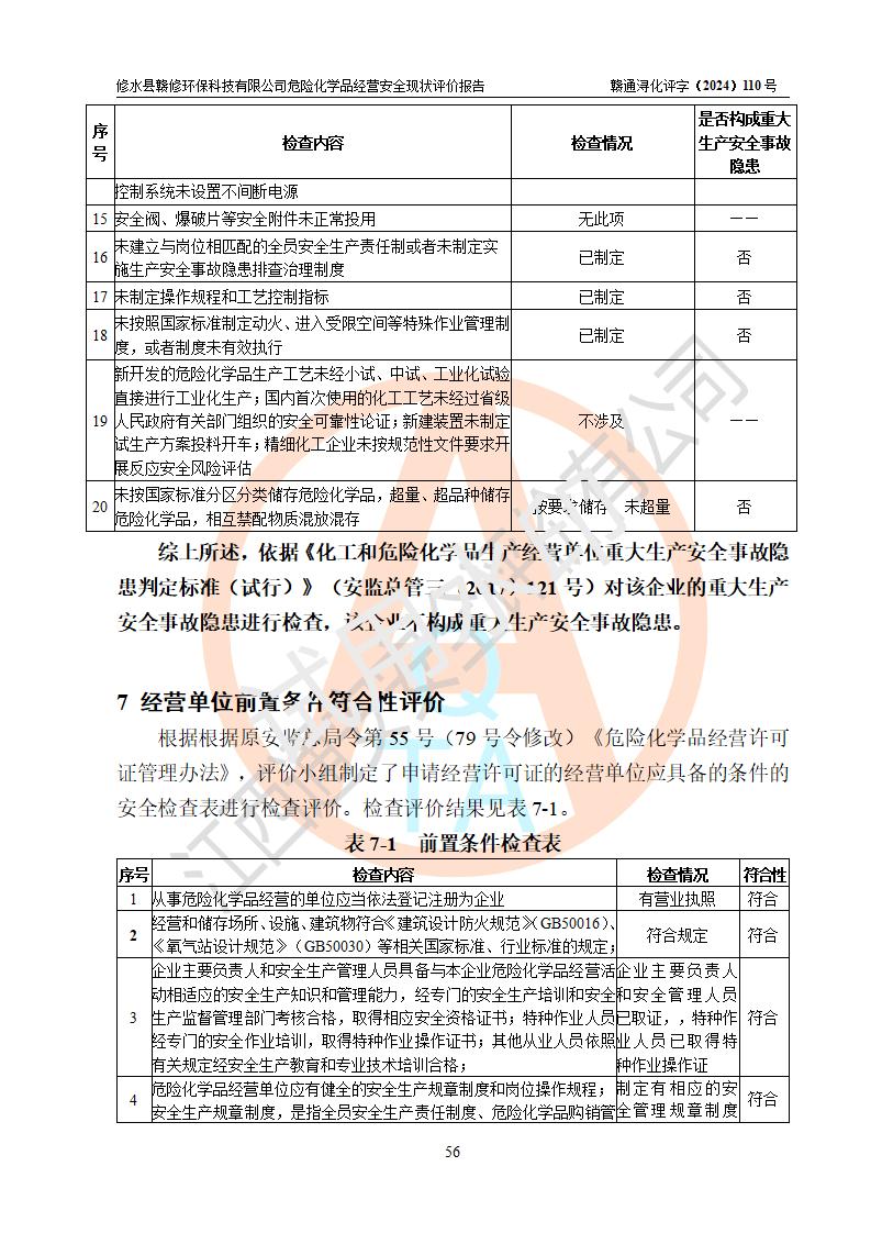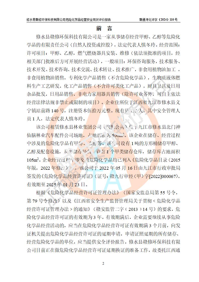 評價報告名稱 | 修水縣贛修**科技有限公司危險化學(xué)品經(jīng)營安全現(xiàn)狀評價報告 | ||||||