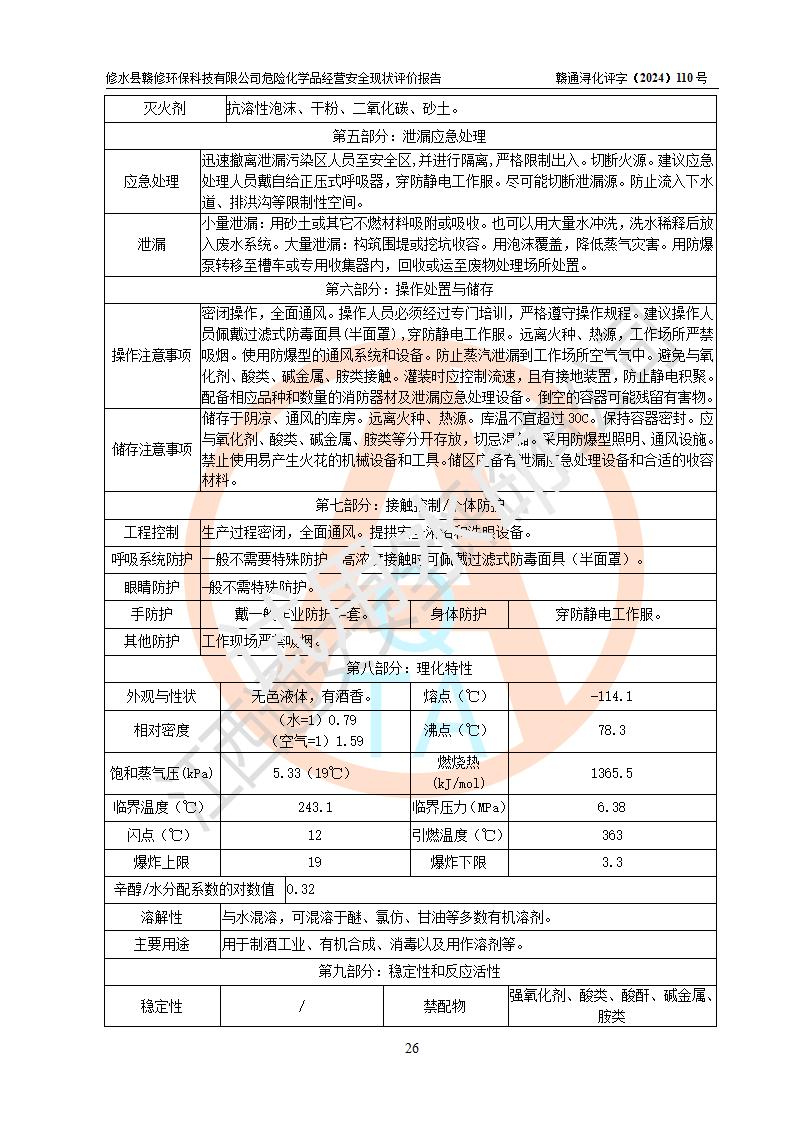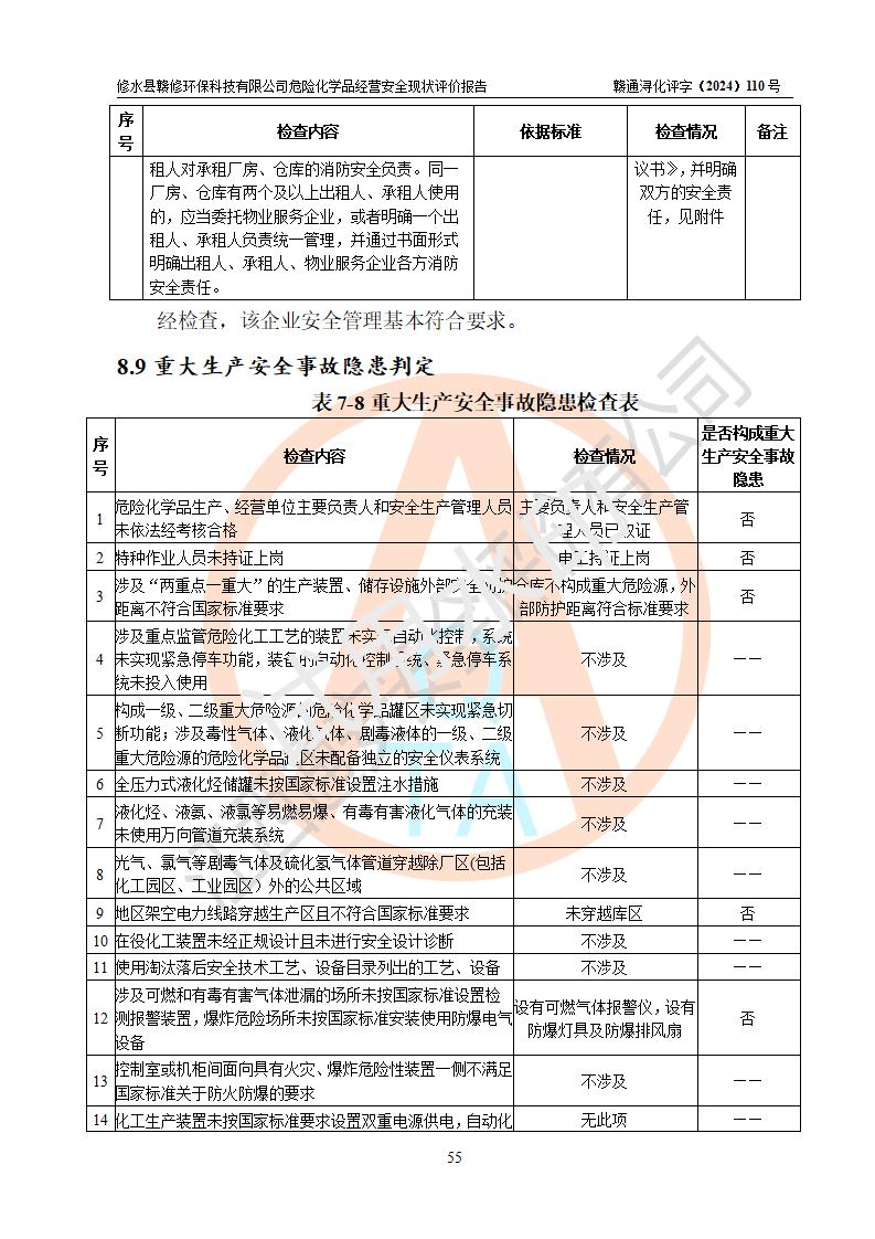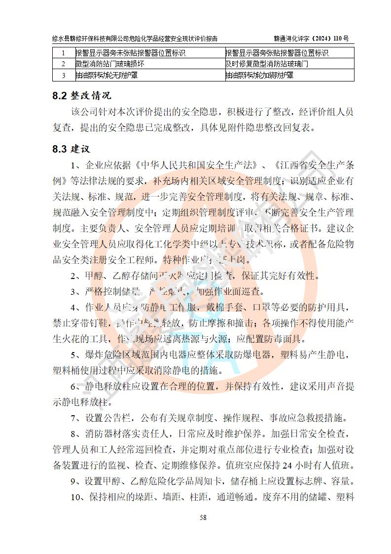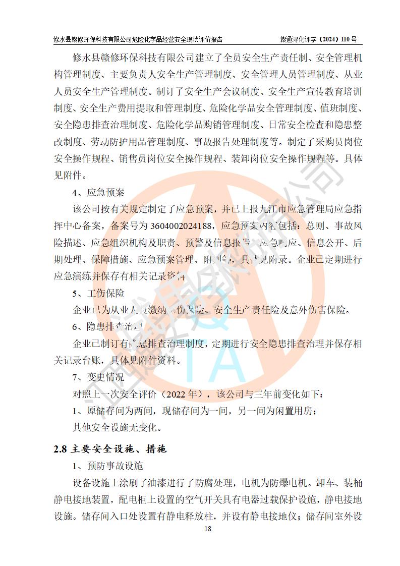 評價報告名稱 | 修水縣贛修**科技有限公司危險化學(xué)品經(jīng)營安全現(xiàn)狀評價報告 | ||||||