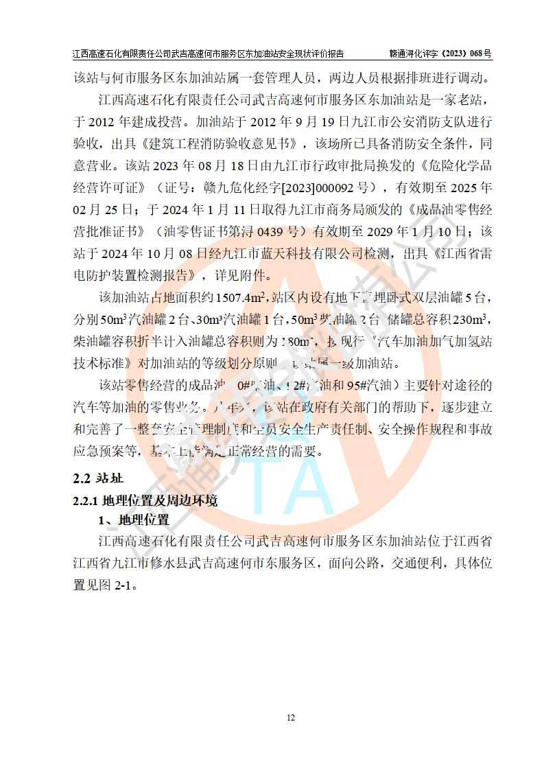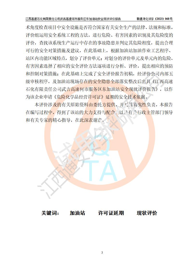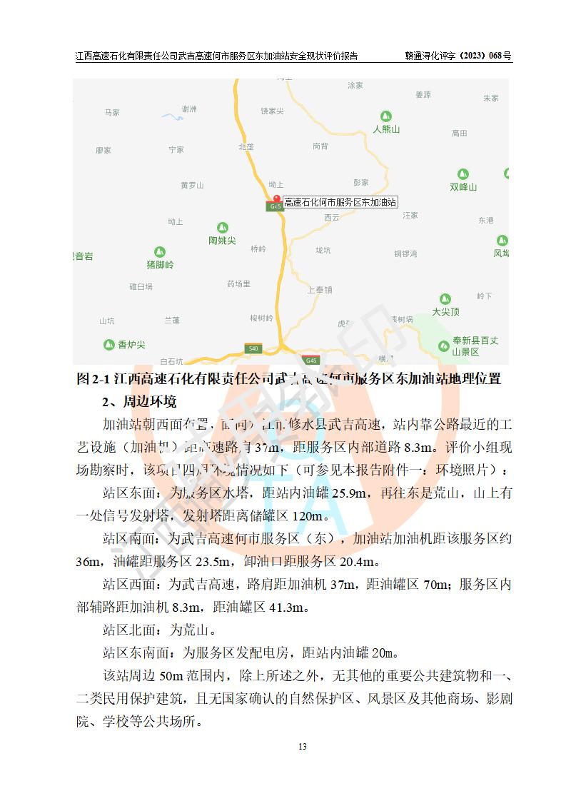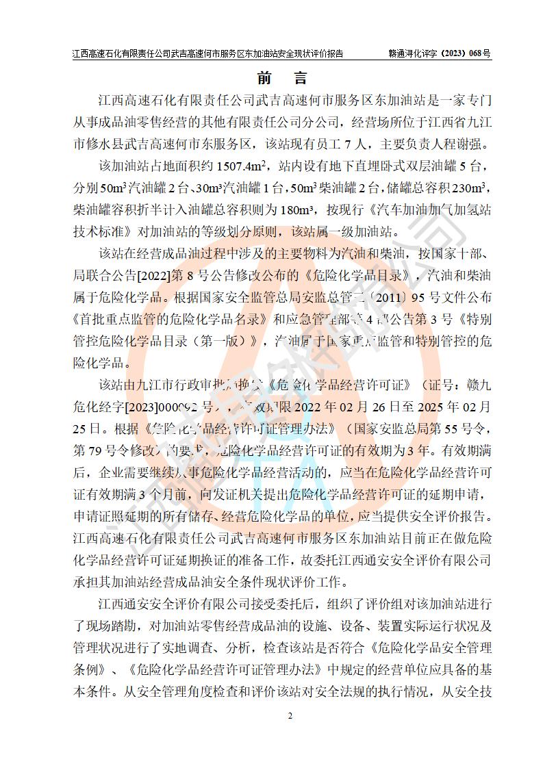 評價報告名稱 | 江西高速石化有限責(zé)任公司武吉高速何市服務(wù)區(qū)東加油站安全現(xiàn)狀評價報告 | |||
