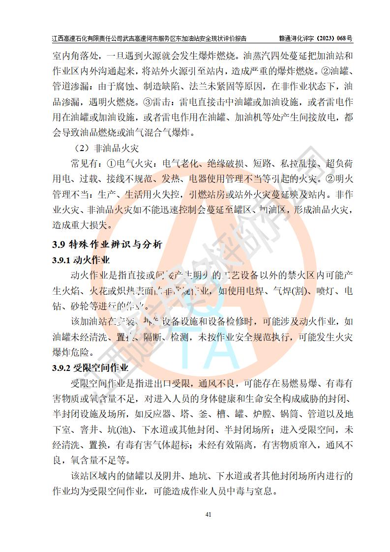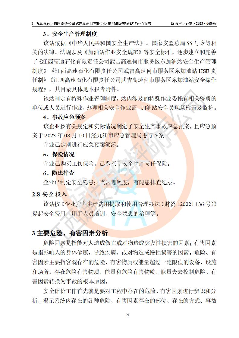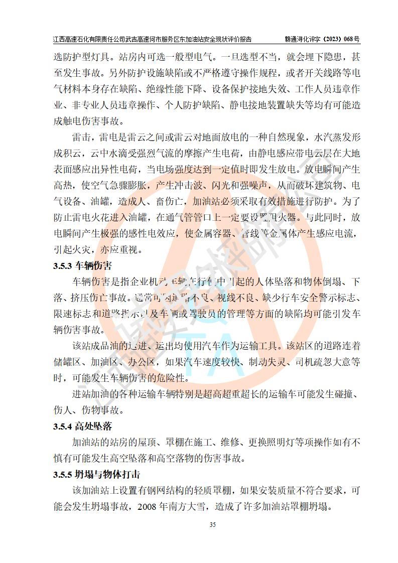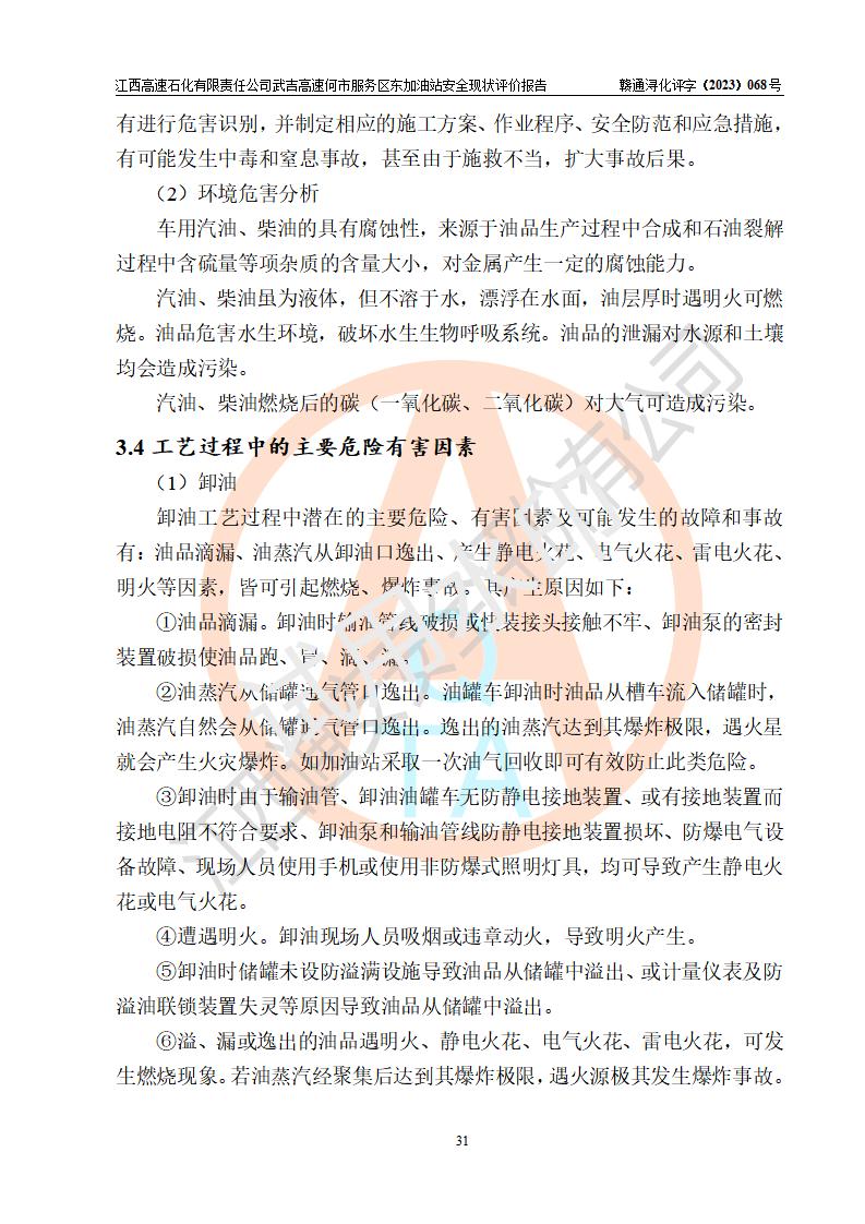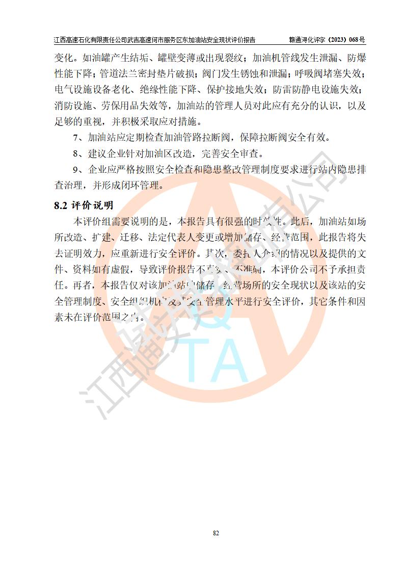 評價報告名稱 | 江西高速石化有限責(zé)任公司武吉高速何市服務(wù)區(qū)東加油站安全現(xiàn)狀評價報告 | |||