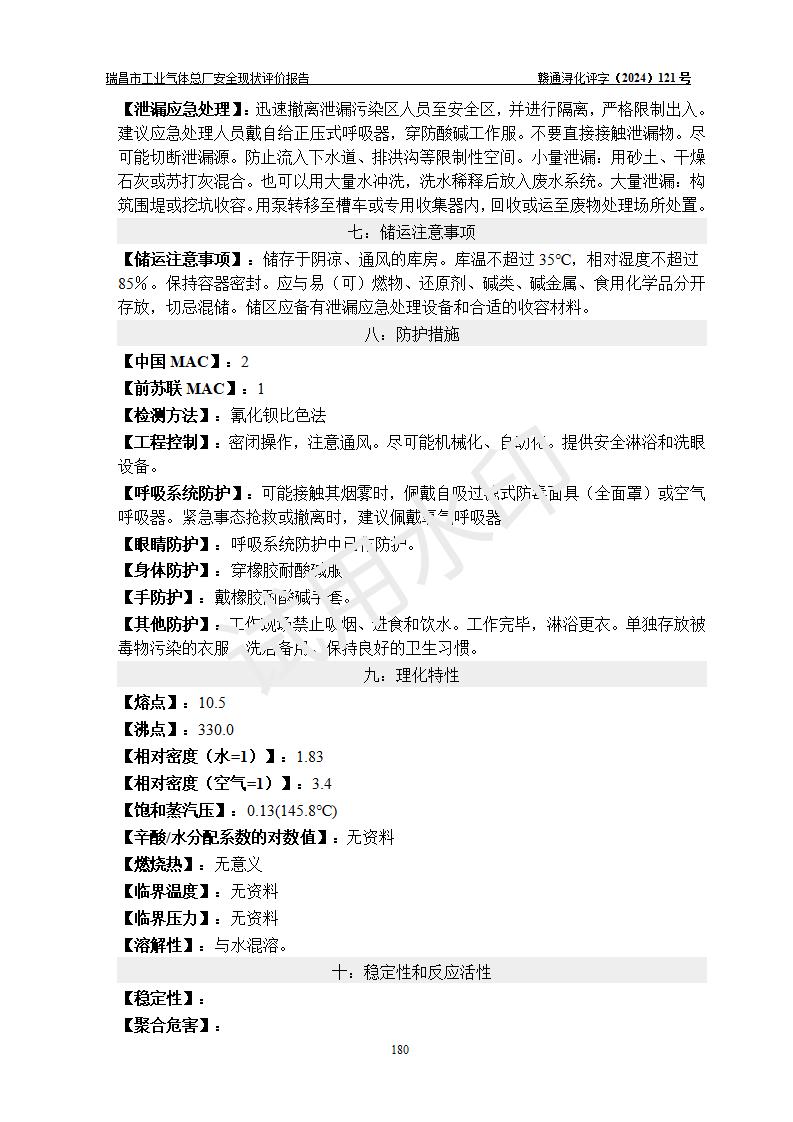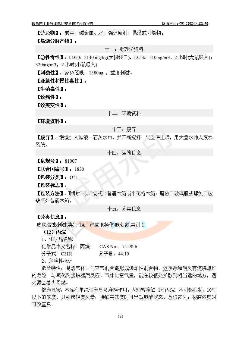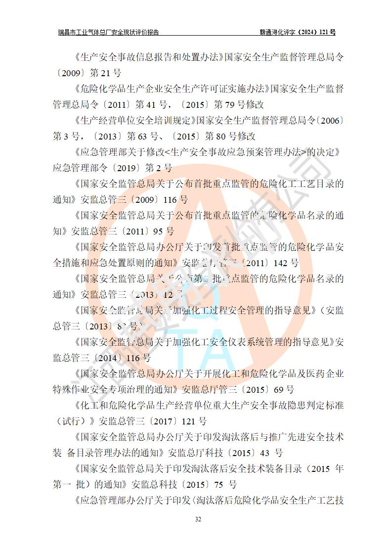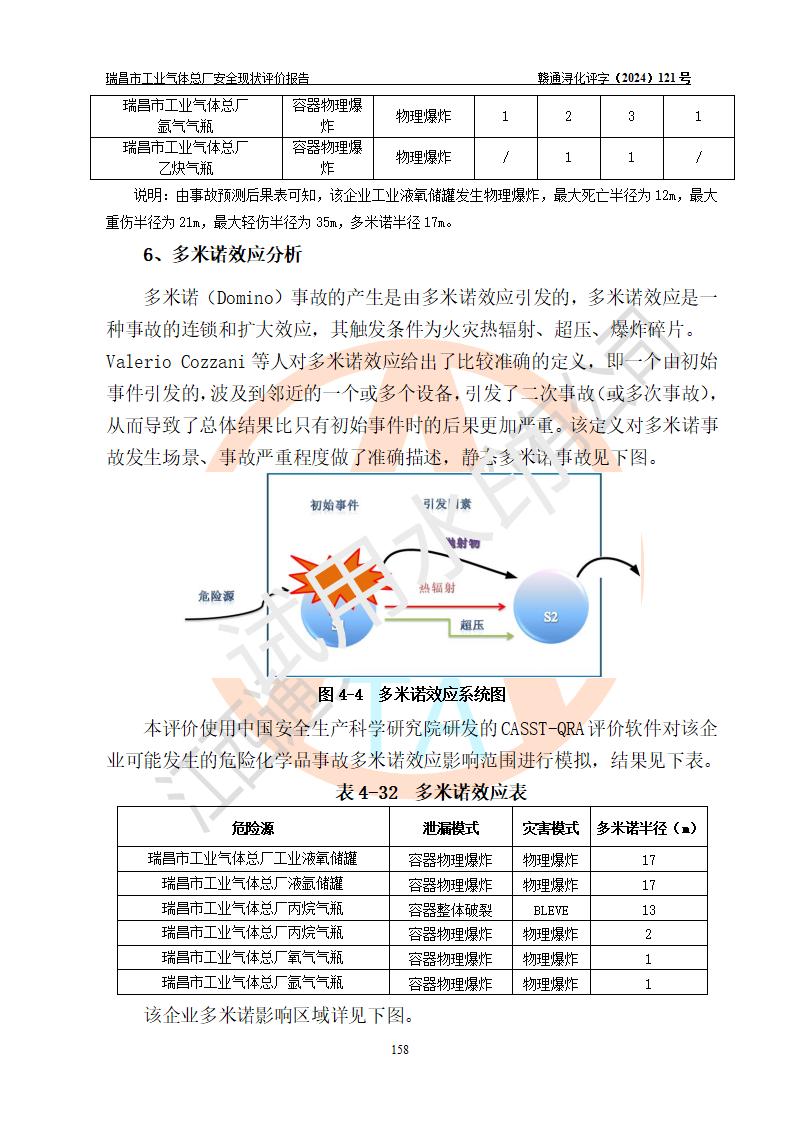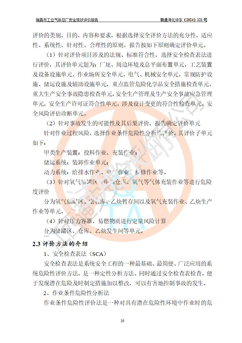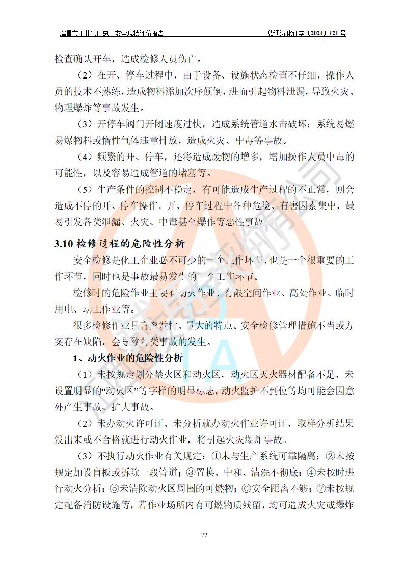 評價結(jié)論 | 瑞昌市工業(yè)氣體總廠廠址、總體布局、設(shè)備布置情況與設(shè)計圖紙一致,在役裝置不涉及危險工藝、重大危險源,企業(yè)主要負責人、安全負責人有相關(guān)化學專業(yè)學歷,且有3年以上化工行業(yè)從業(yè)經(jīng)歷,企業(yè)法人**及安全負責人已取得安全考核合格證。瑞昌市工業(yè)氣體總廠在役裝置配套安全裝置、及采取的安全技術(shù)措施符合**有關(guān)法規(guī)、標準、規(guī)范要求,符合《危險化學品生產(chǎn)企業(yè)安全生產(chǎn)許可證實施辦法》規(guī)定的安全生產(chǎn)條件,風險可控,可滿足安全生產(chǎn)要求。 | ||||