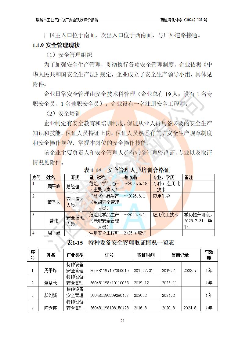 評價報告名稱 | 瑞昌市工業(yè)氣體總廠安全現(xiàn)狀評價報告 | ||||