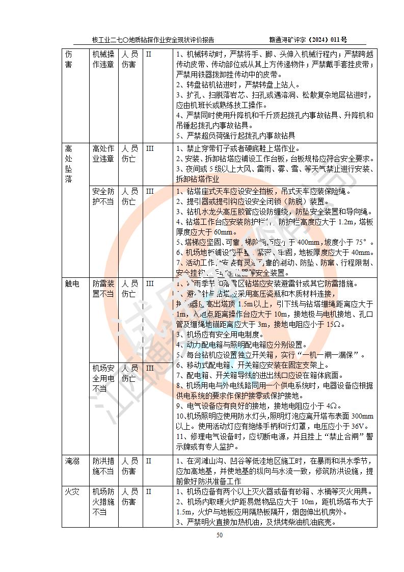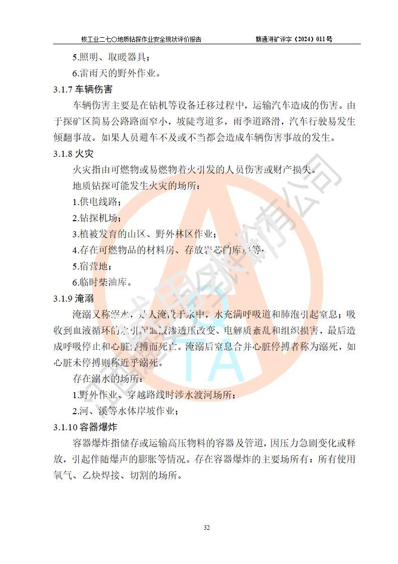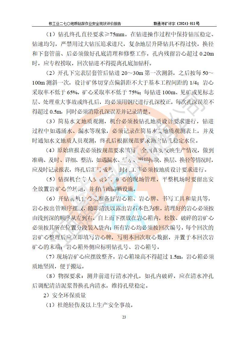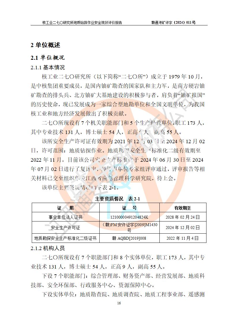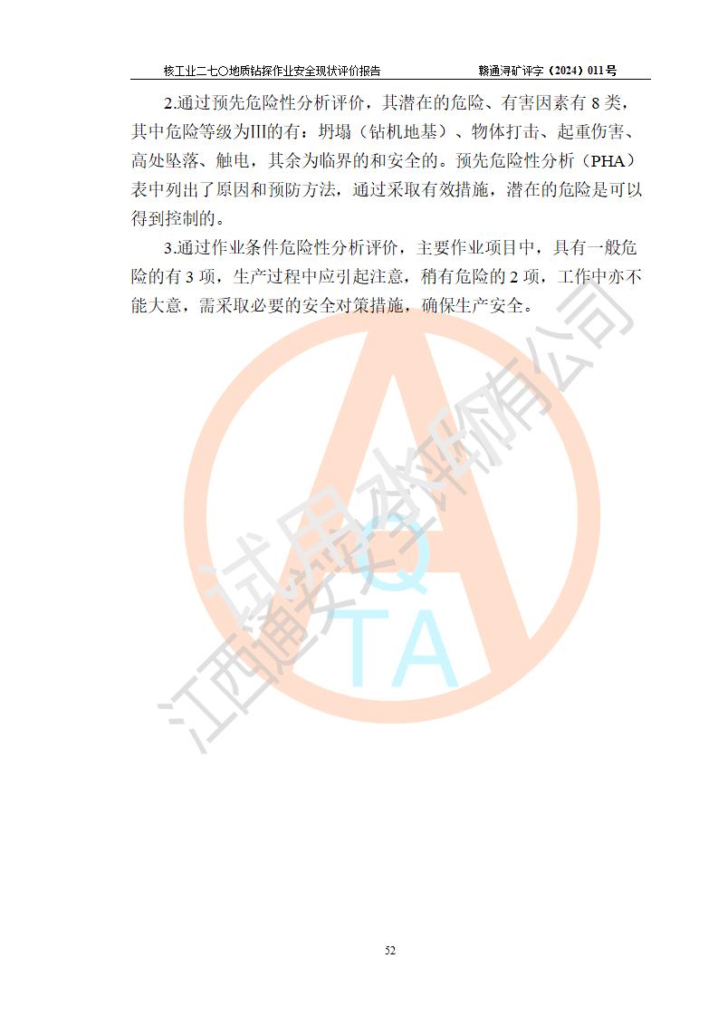 核工業(yè)二七〇研究所地質(zhì)鉆探作業(yè)安全現(xiàn)狀評價報告