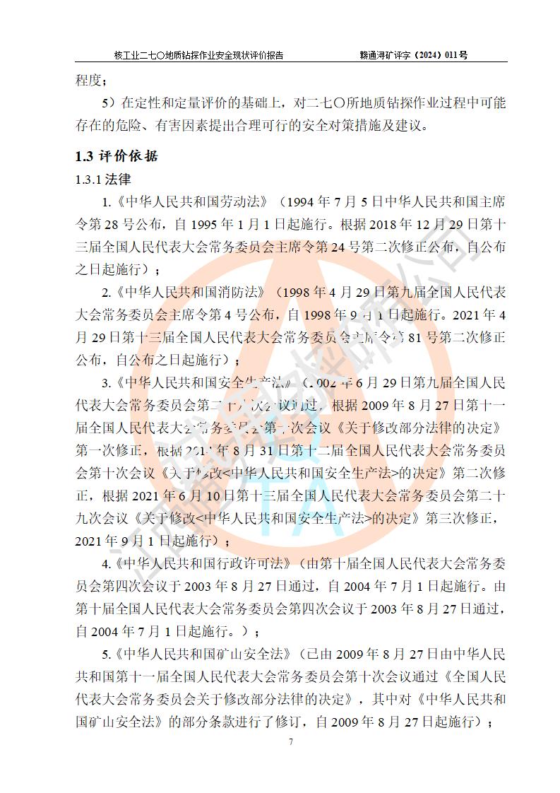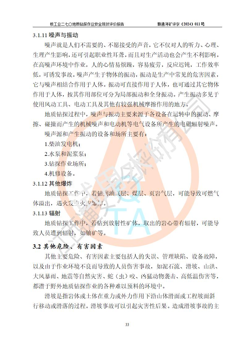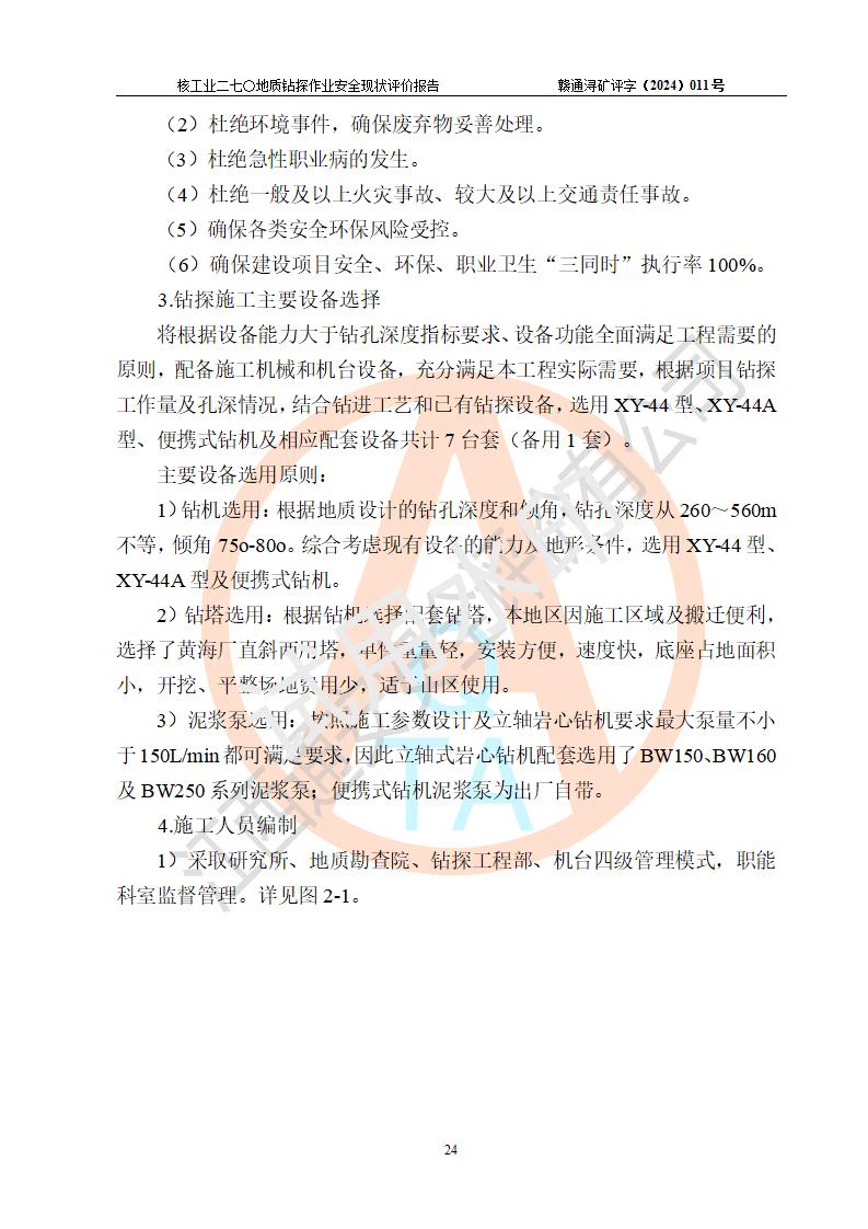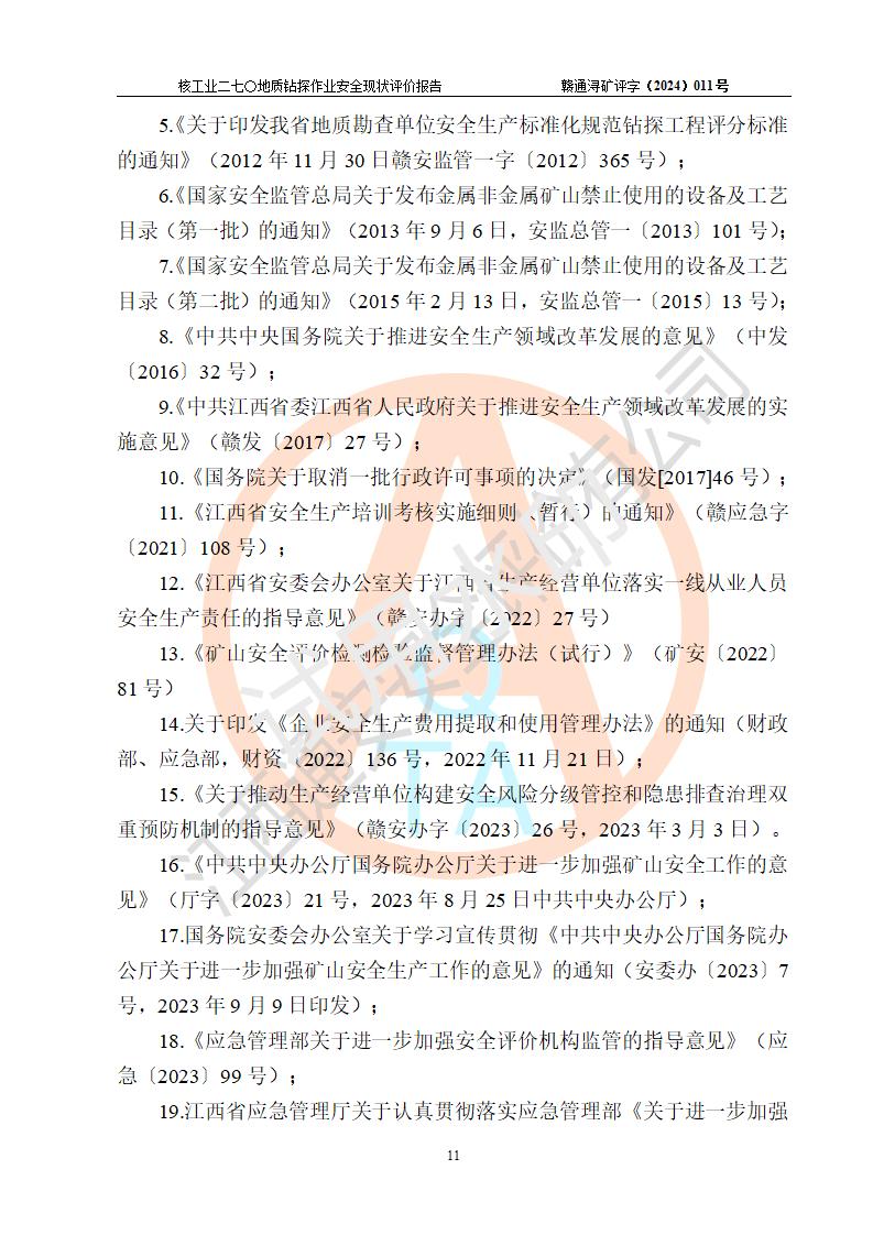 核工業(yè)二七〇研究所地質(zhì)鉆探作業(yè)安全現(xiàn)狀評價報告