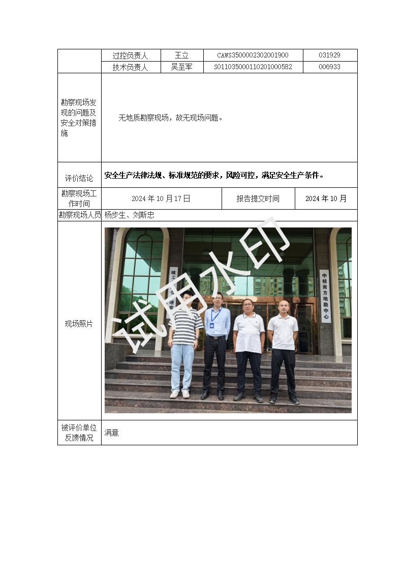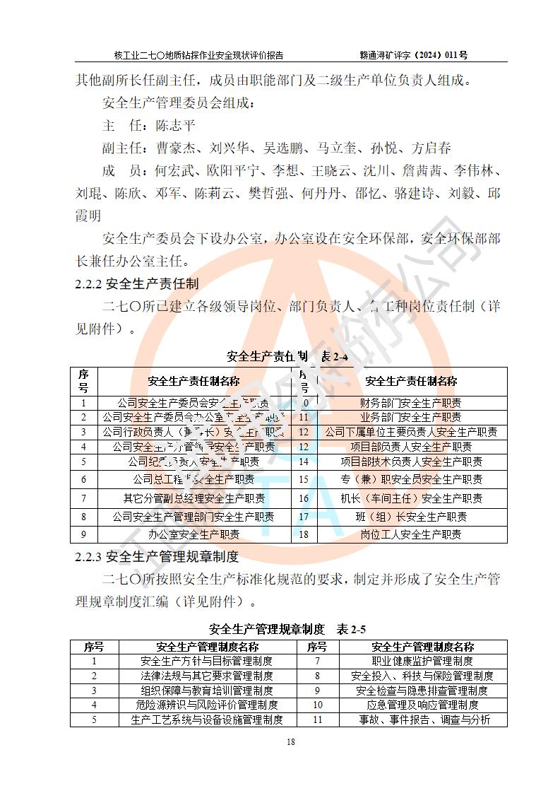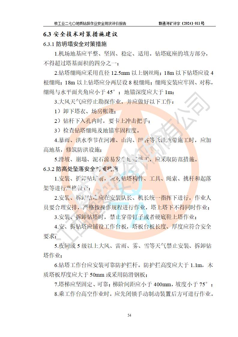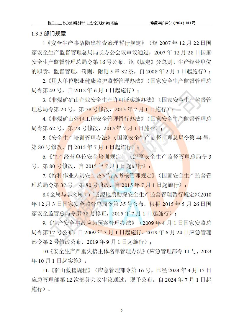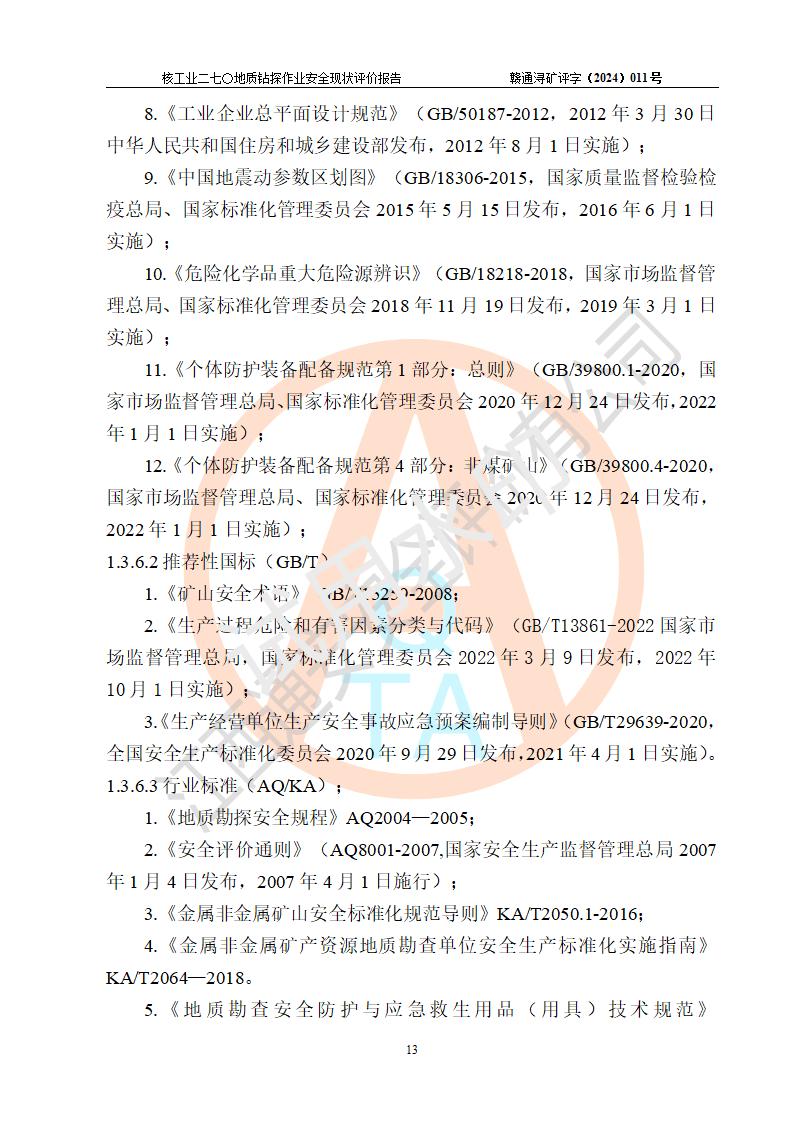核工業(yè)二七〇研究所地質(zhì)鉆探作業(yè)安全現(xiàn)狀評價報告