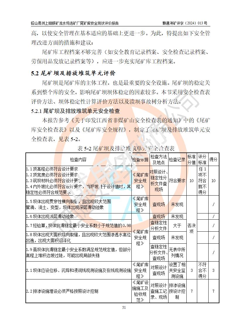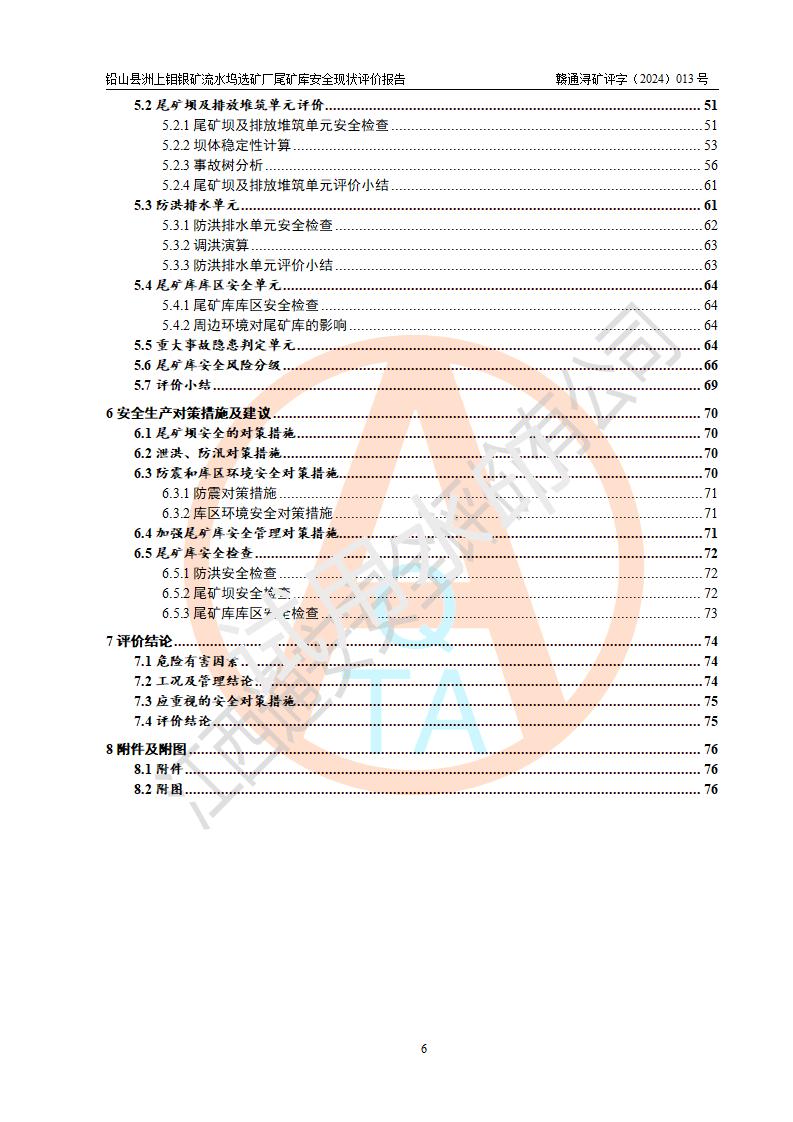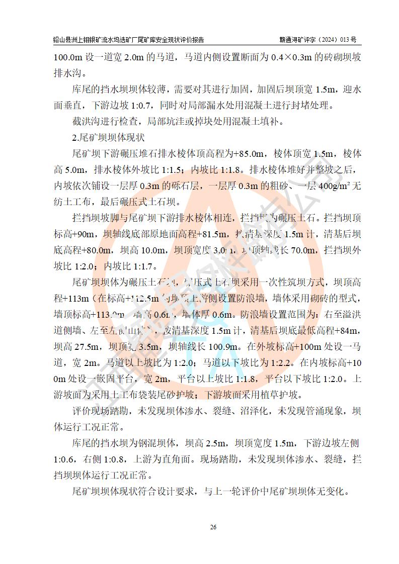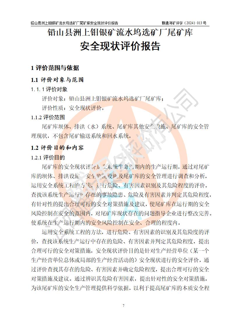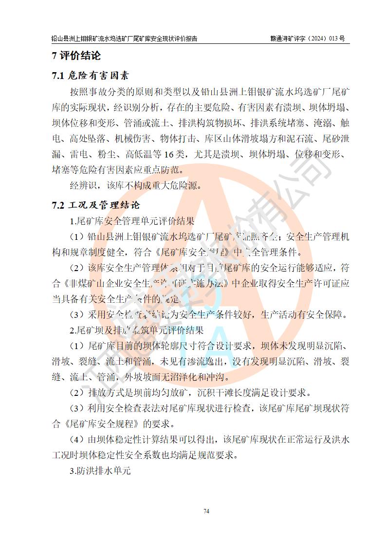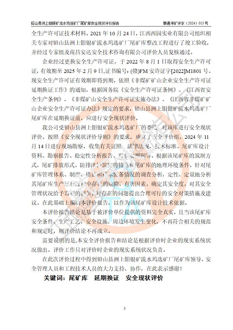 報(bào)告名稱(chēng) | 鉛山縣洲上鉬銀礦流水塢選礦廠(chǎng)尾礦庫(kù)安全現(xiàn)狀評(píng)價(jià)報(bào)告 | ||||||