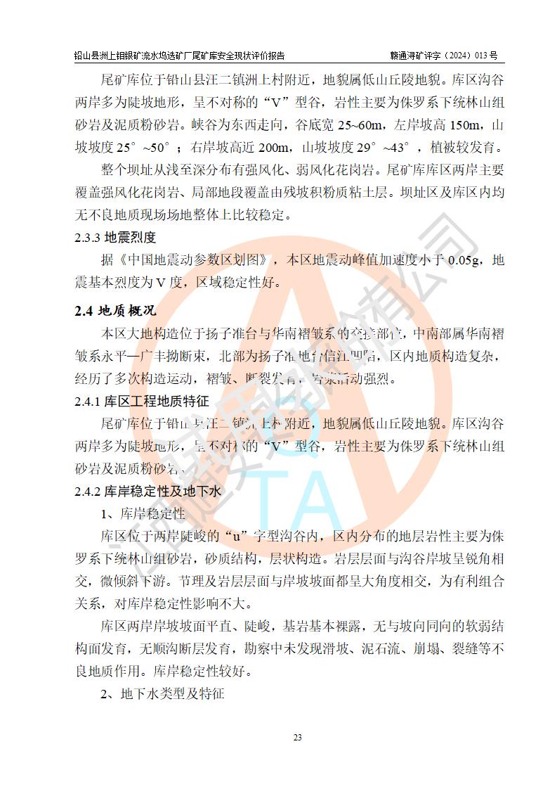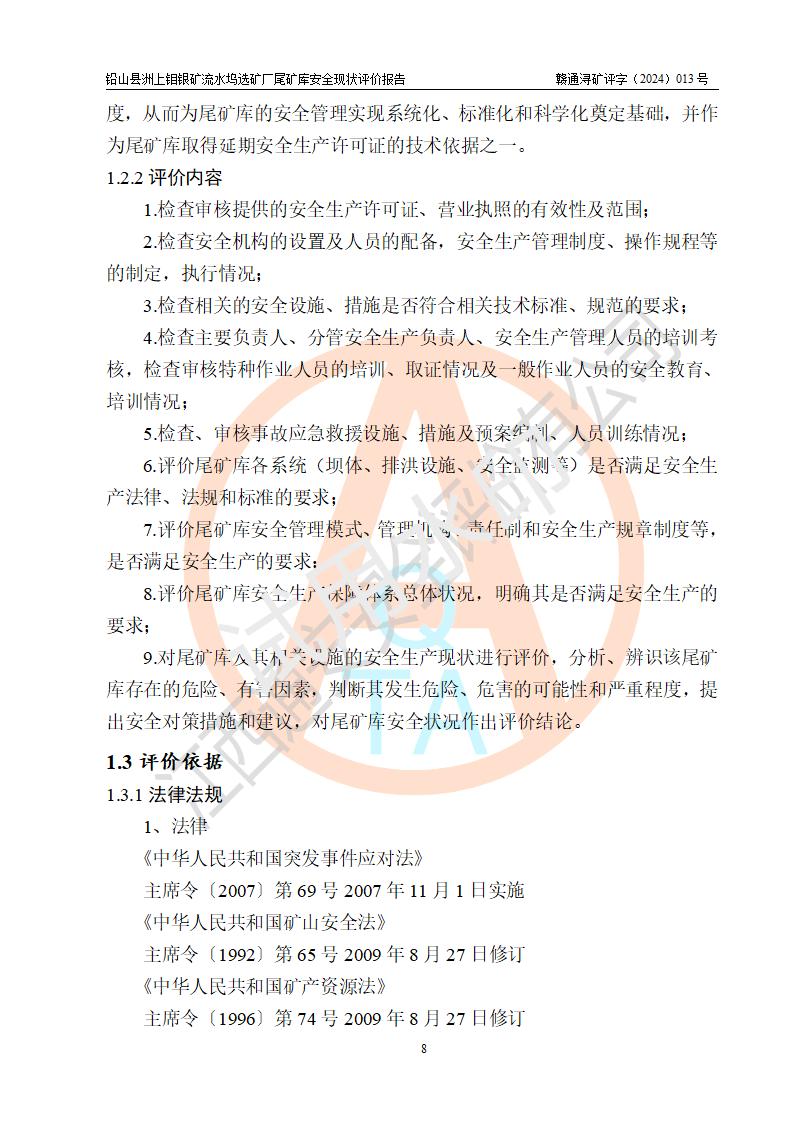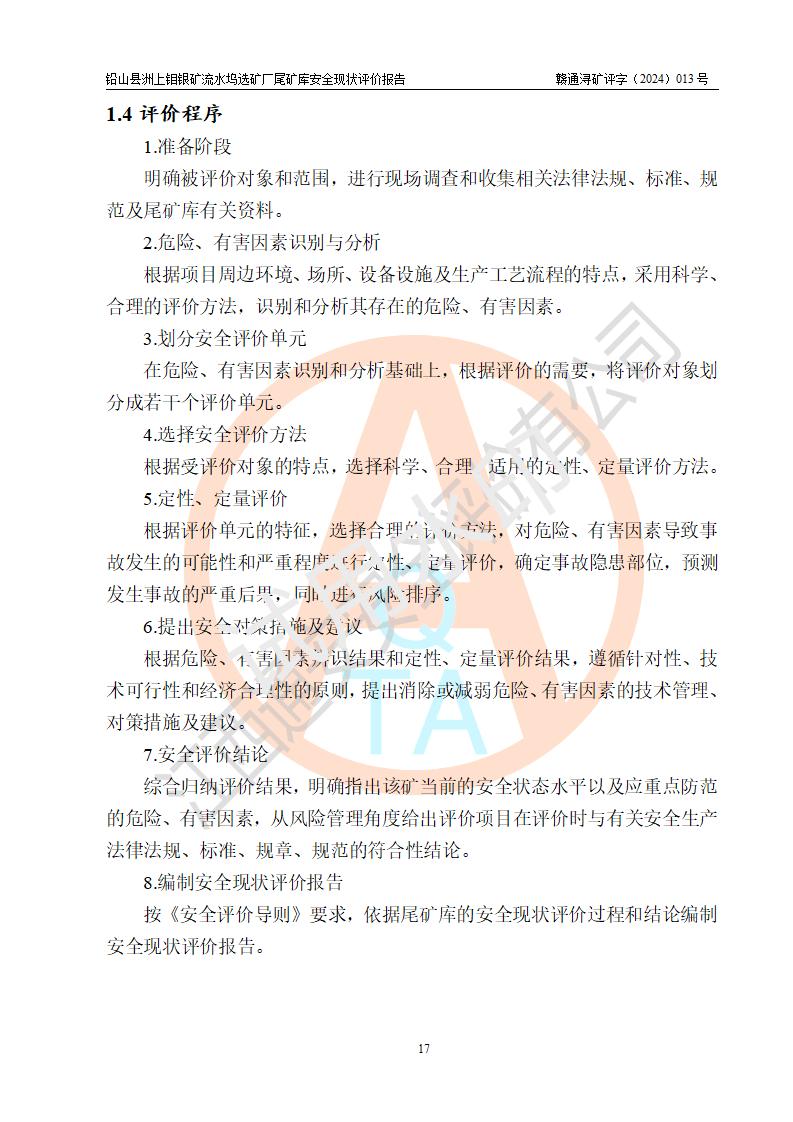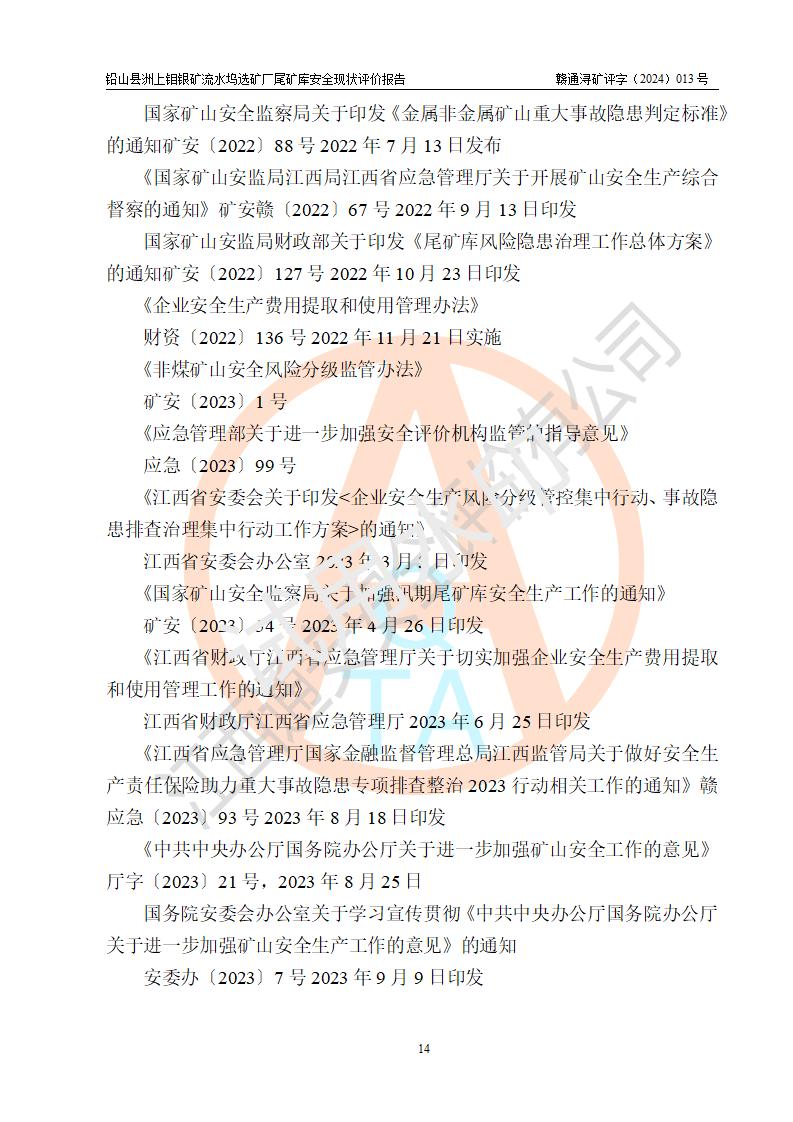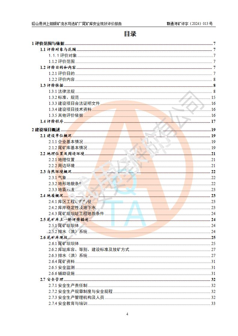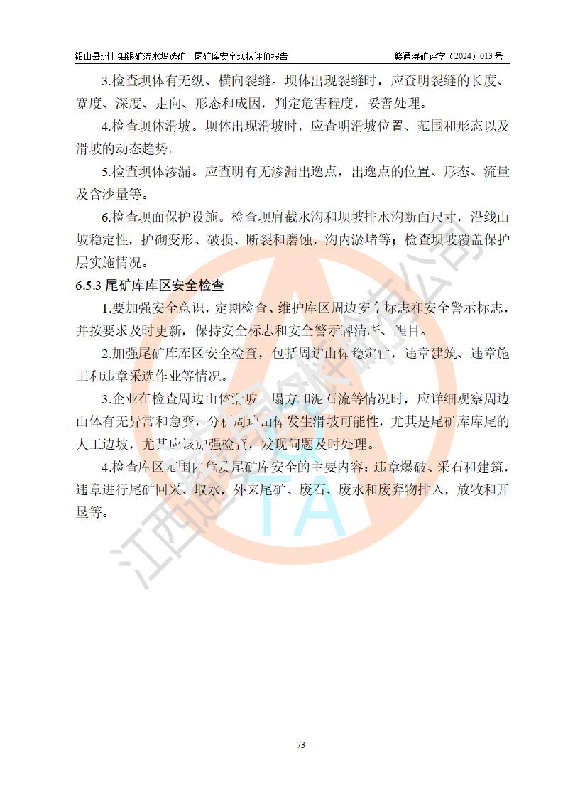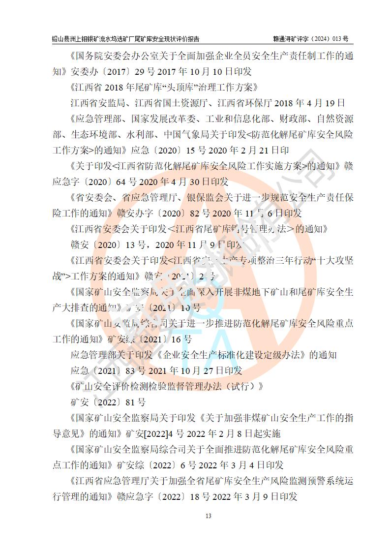 報(bào)告名稱(chēng) | 鉛山縣洲上鉬銀礦流水塢選礦廠(chǎng)尾礦庫(kù)安全現(xiàn)狀評(píng)價(jià)報(bào)告 | ||||||