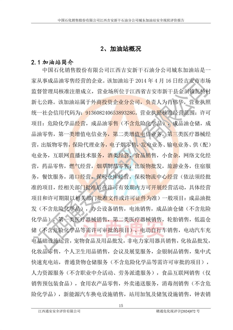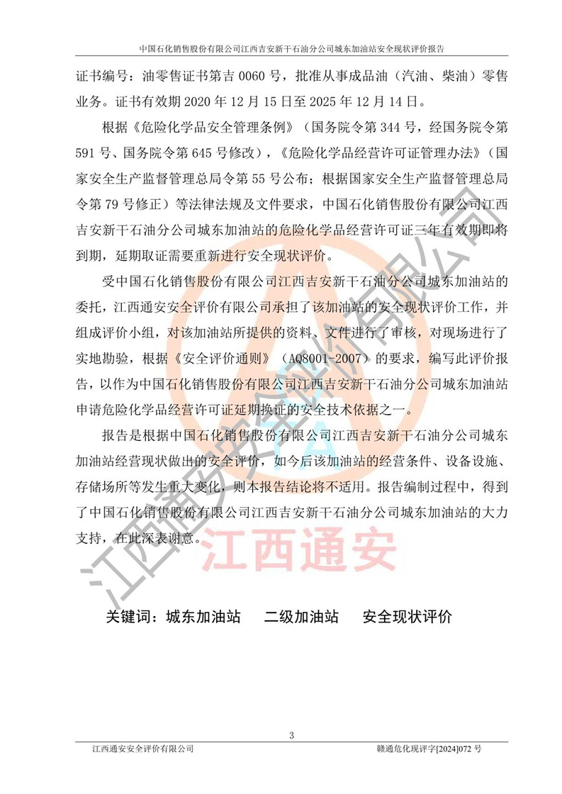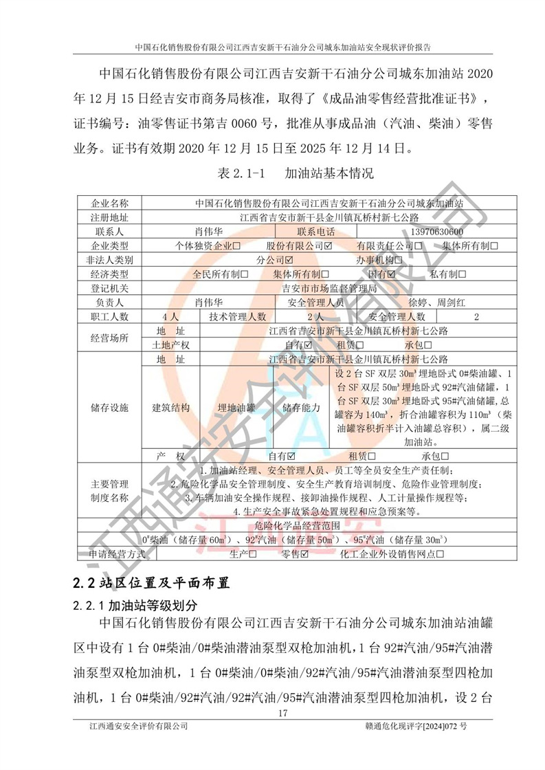評價(jià)報(bào)告名稱 | 中國石化銷售股份有限公司江西吉安新干石油分公司城東加油站安全現(xiàn)狀評價(jià)報(bào)告 | |||
