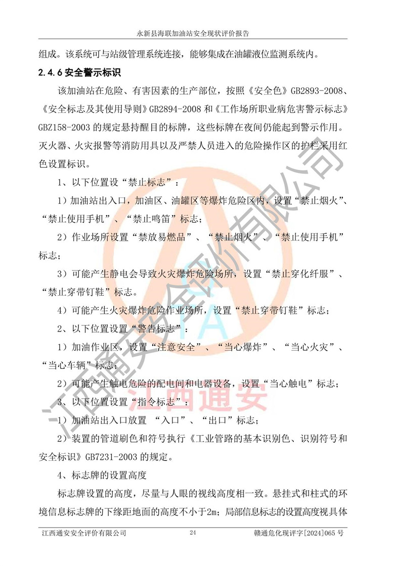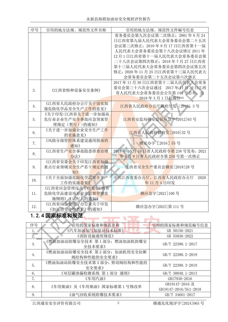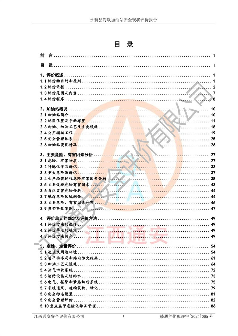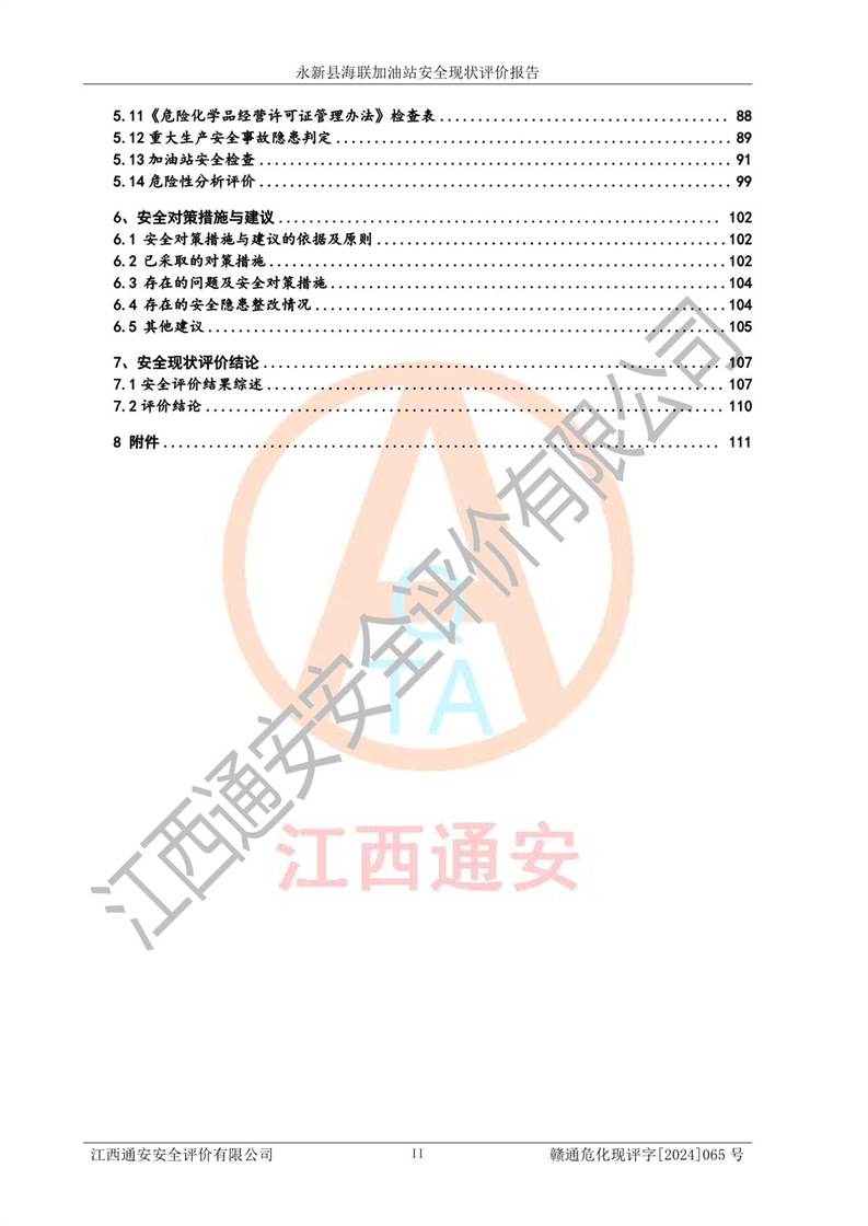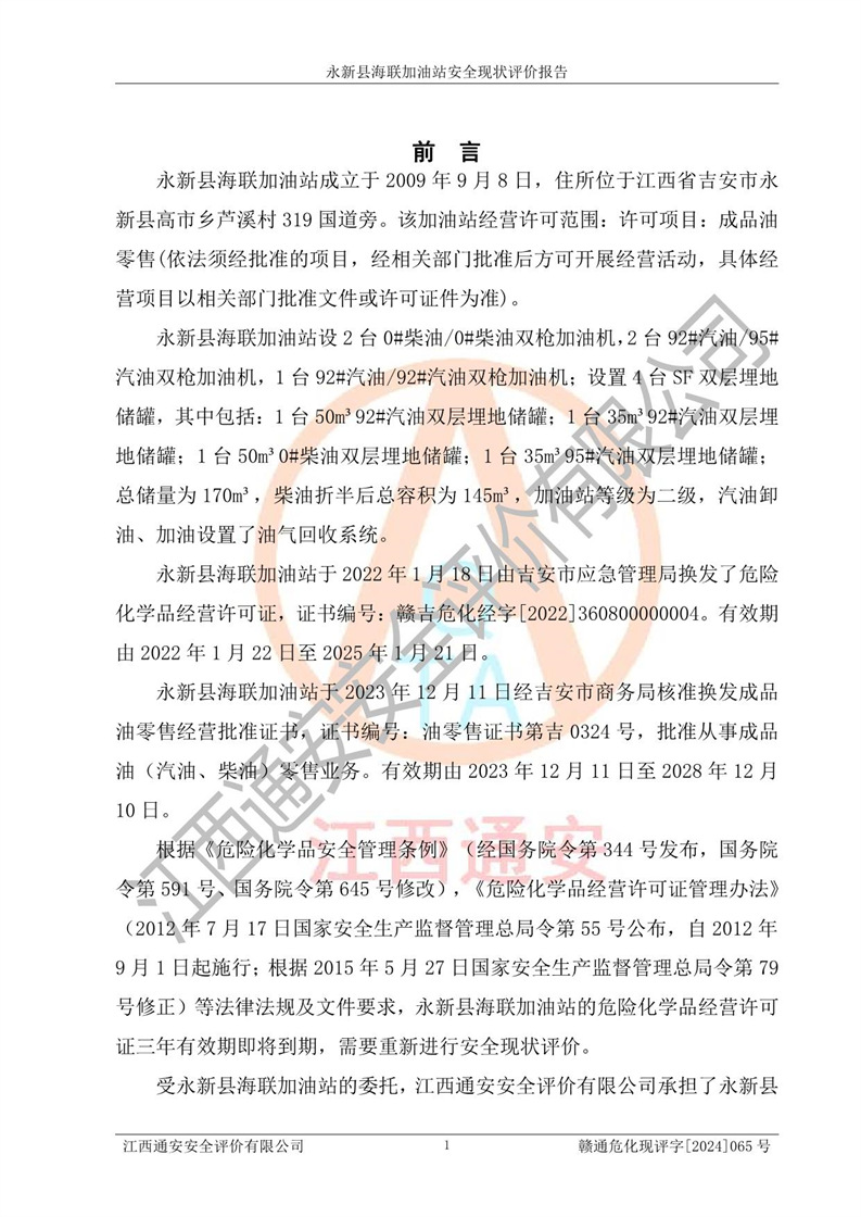 評價(jià)報(bào)告名稱 | 永新縣海聯(lián)加油站安全現(xiàn)狀評價(jià)報(bào)告 | |||
