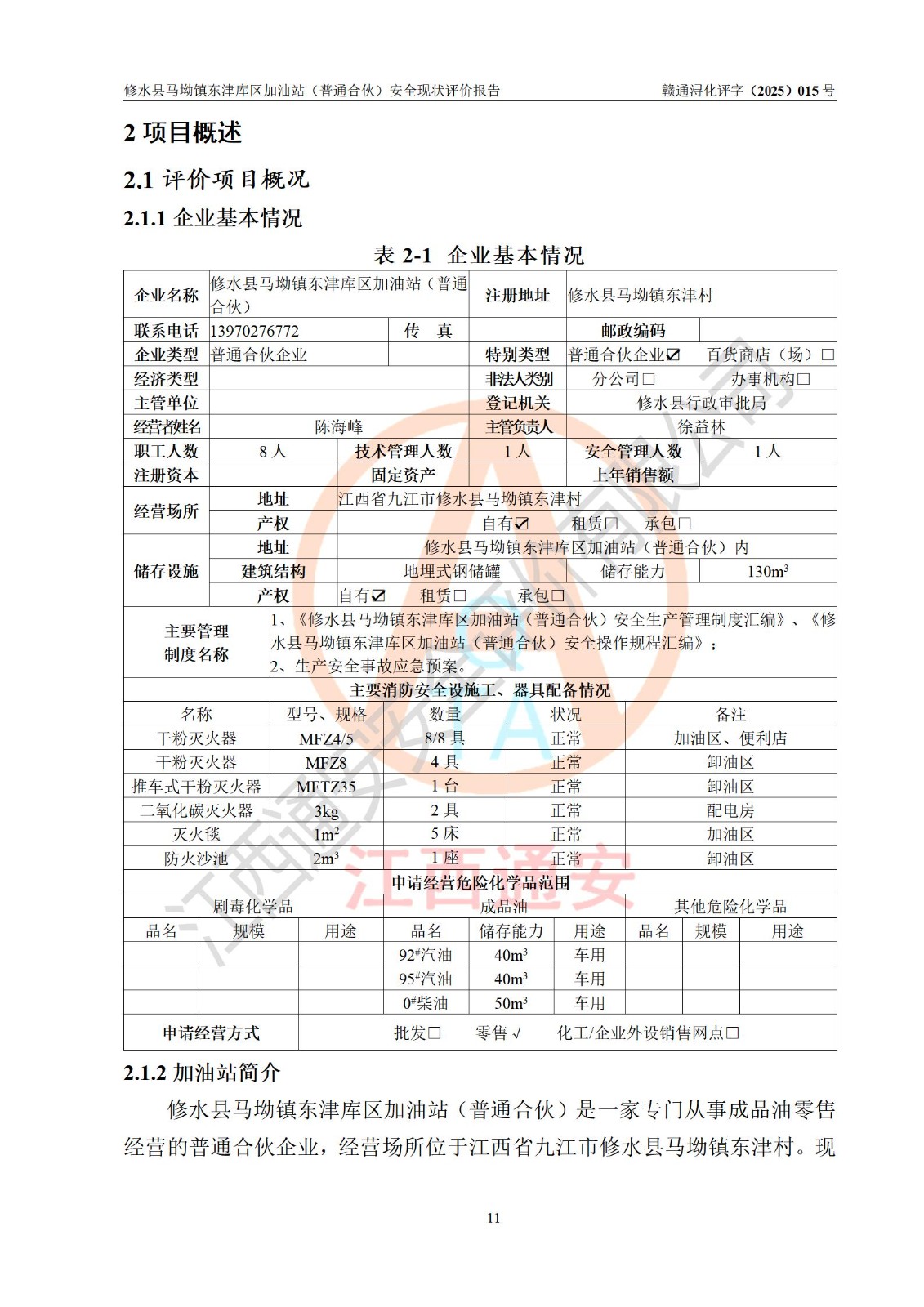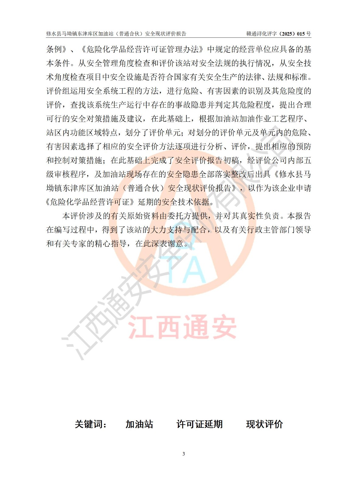 評(píng)價(jià)報(bào)告名稱 | 修水縣馬坳鎮(zhèn)東津庫(kù)區(qū)加油站(普通合伙)安全現(xiàn)狀評(píng)價(jià)報(bào)告 | |||