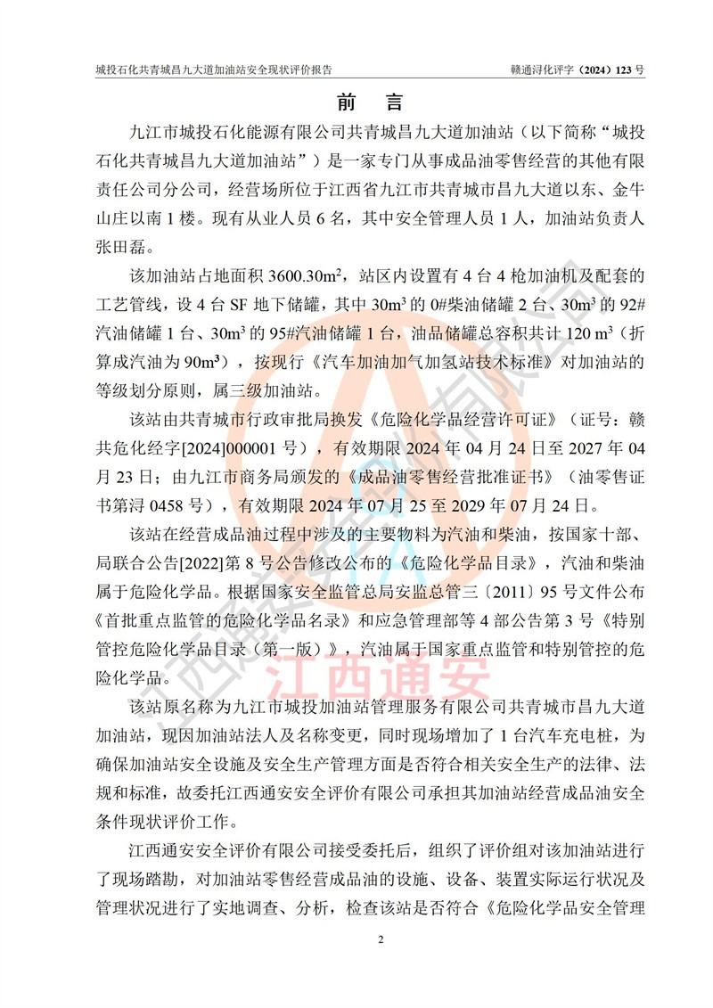評(píng)價(jià)報(bào)告名稱 | 九江市城投石化能源有限公司共青城昌九大道加油站安全現(xiàn)狀評(píng)價(jià)報(bào)告 | |||