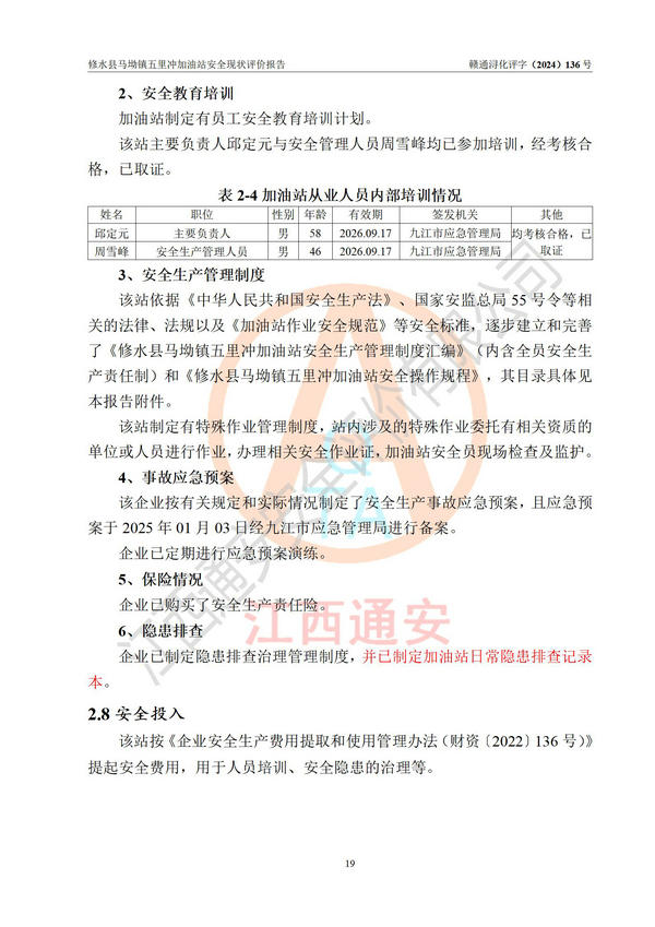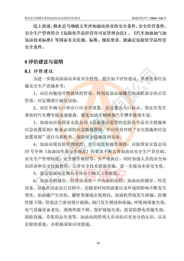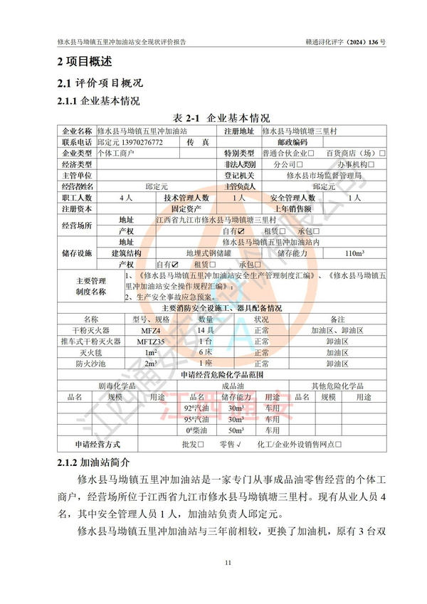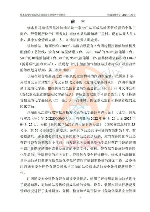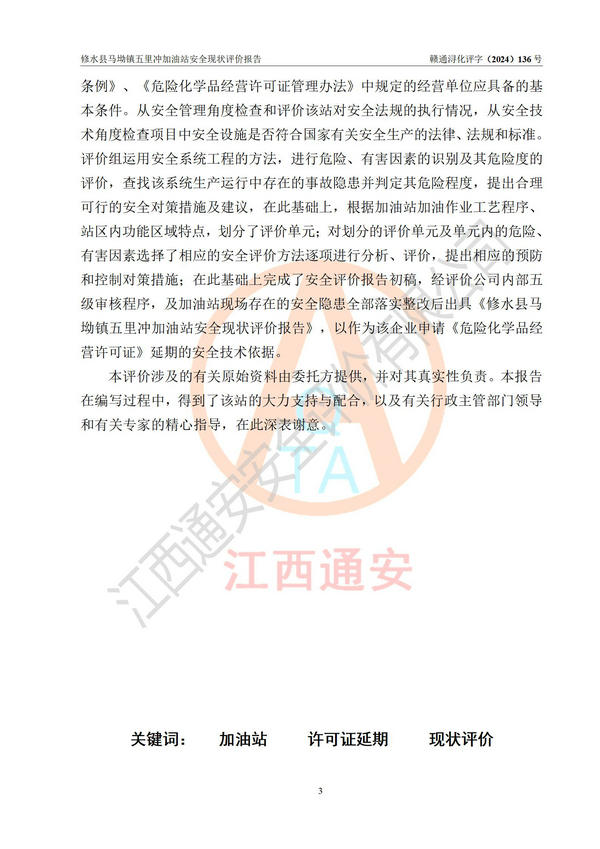 評(píng)價(jià)報(bào)告名稱 | 修水縣馬坳鎮(zhèn)五里沖加油站安全現(xiàn)狀評(píng)價(jià)報(bào)告 | |||