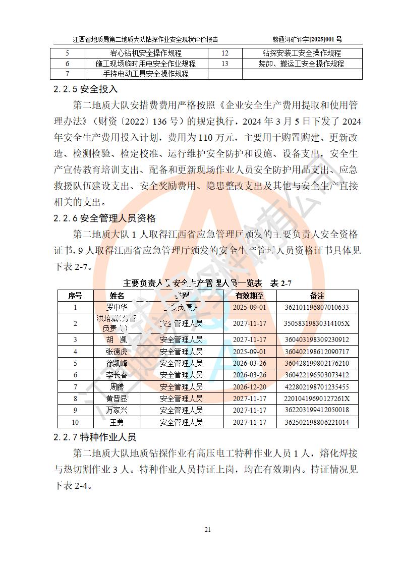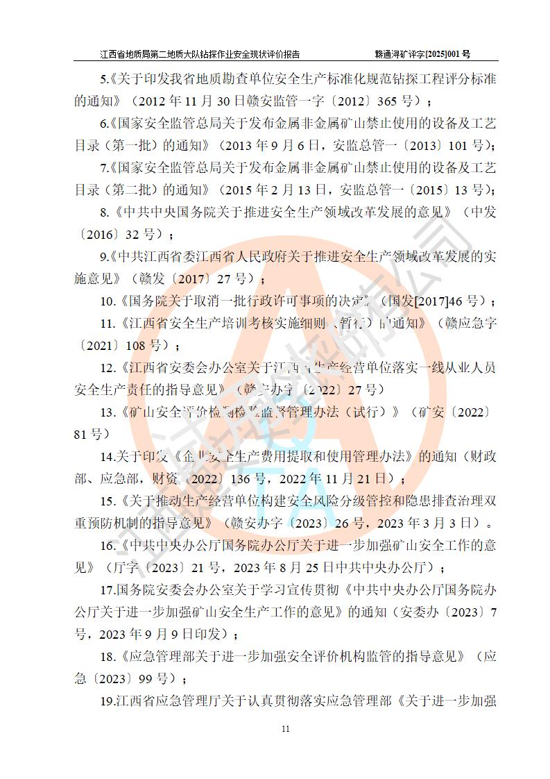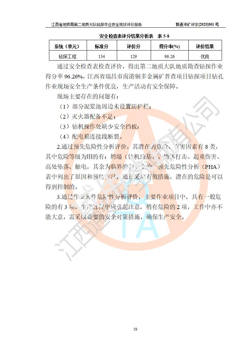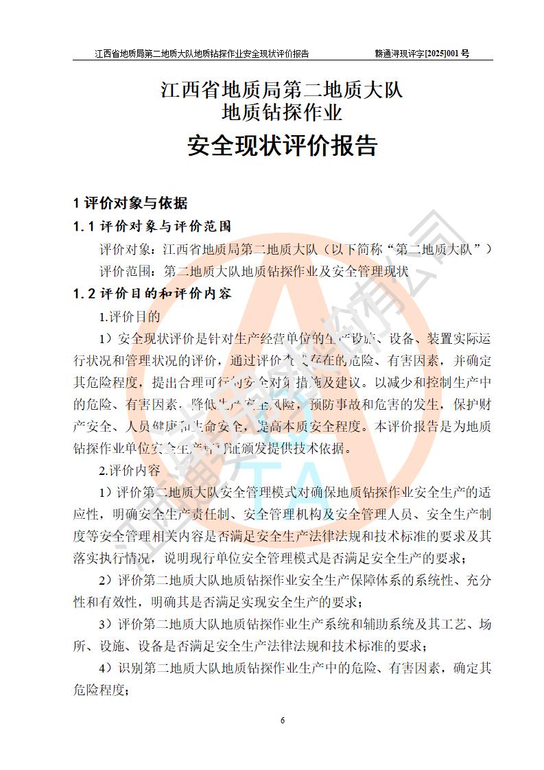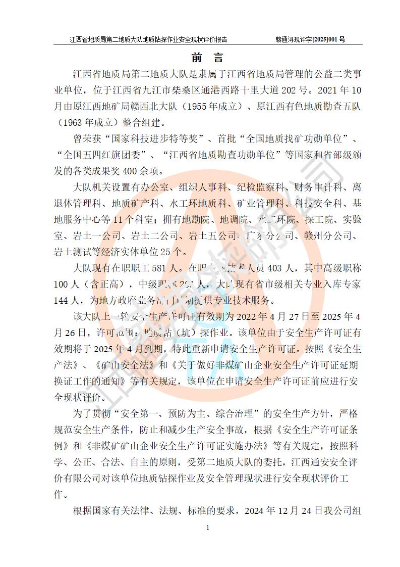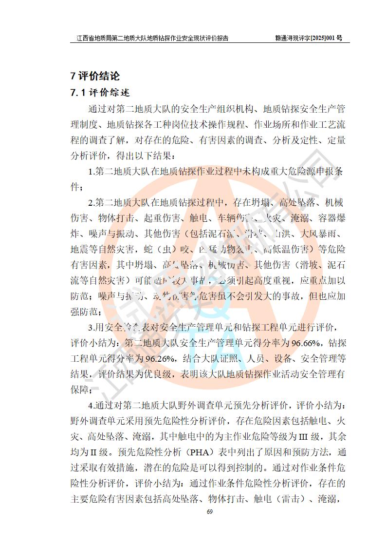 報告名稱 | 江西省地質(zhì)局第二地質(zhì)大隊(duì)地質(zhì)鉆探作業(yè)安全現(xiàn)狀評價報告 | |||||