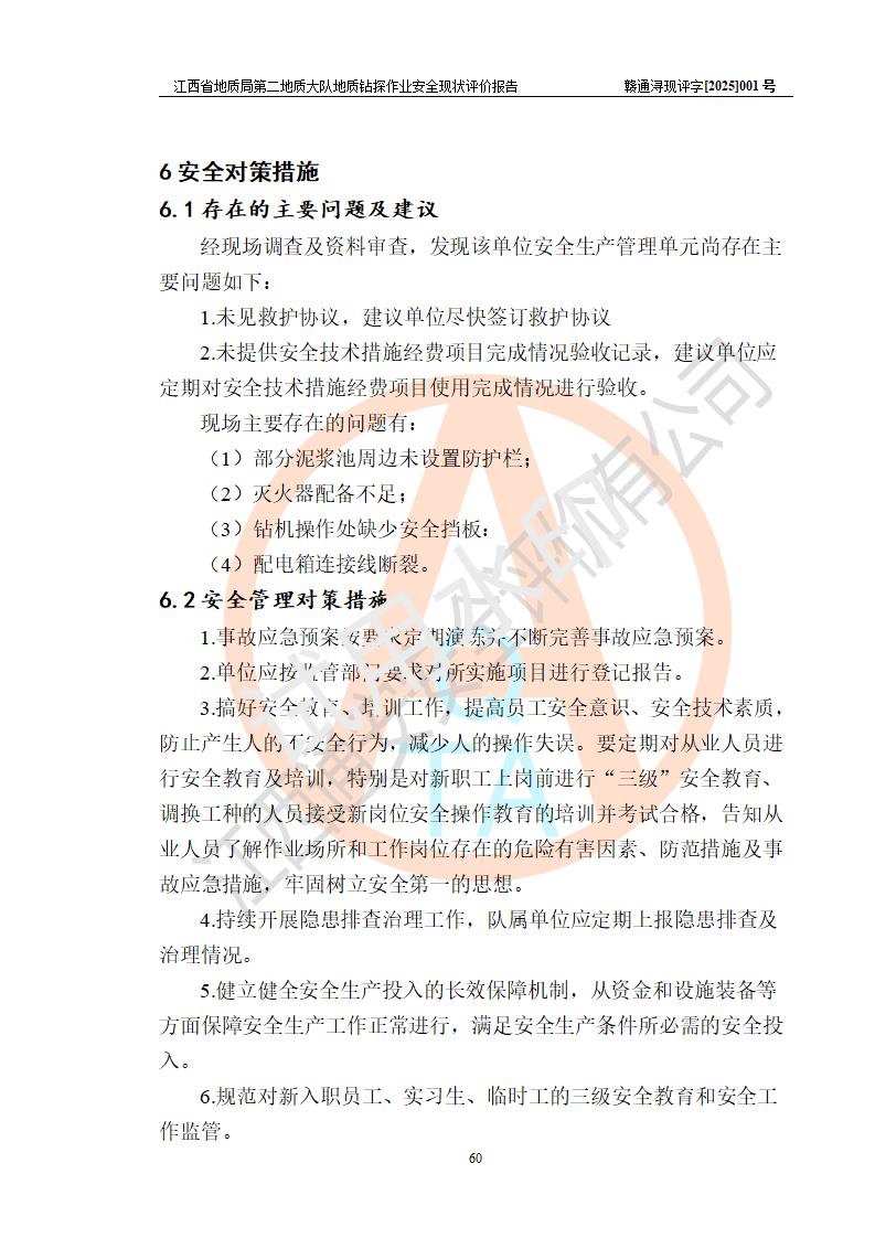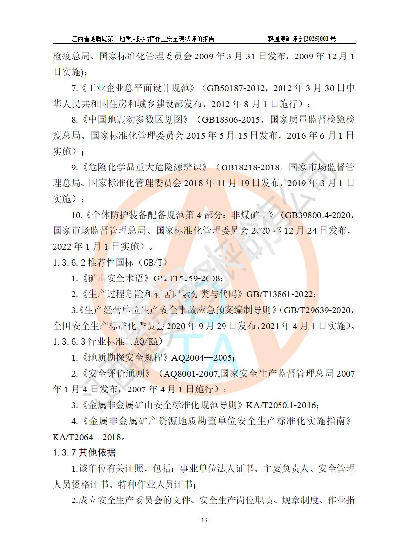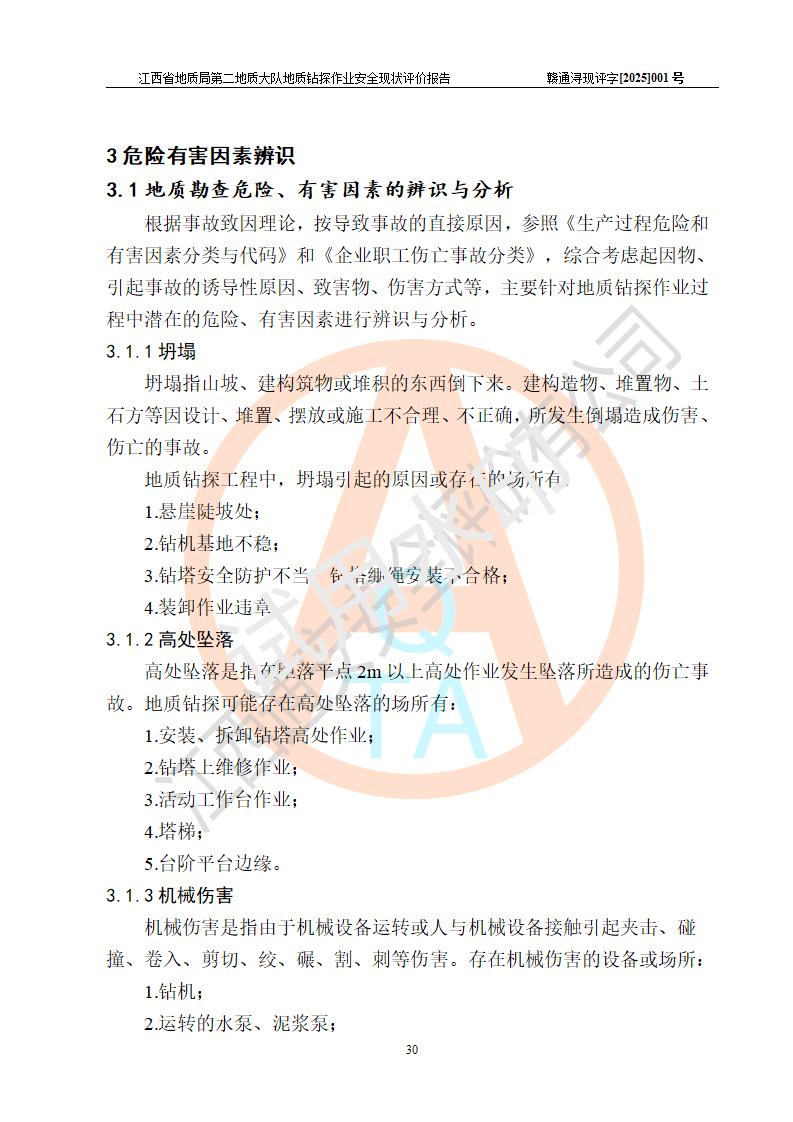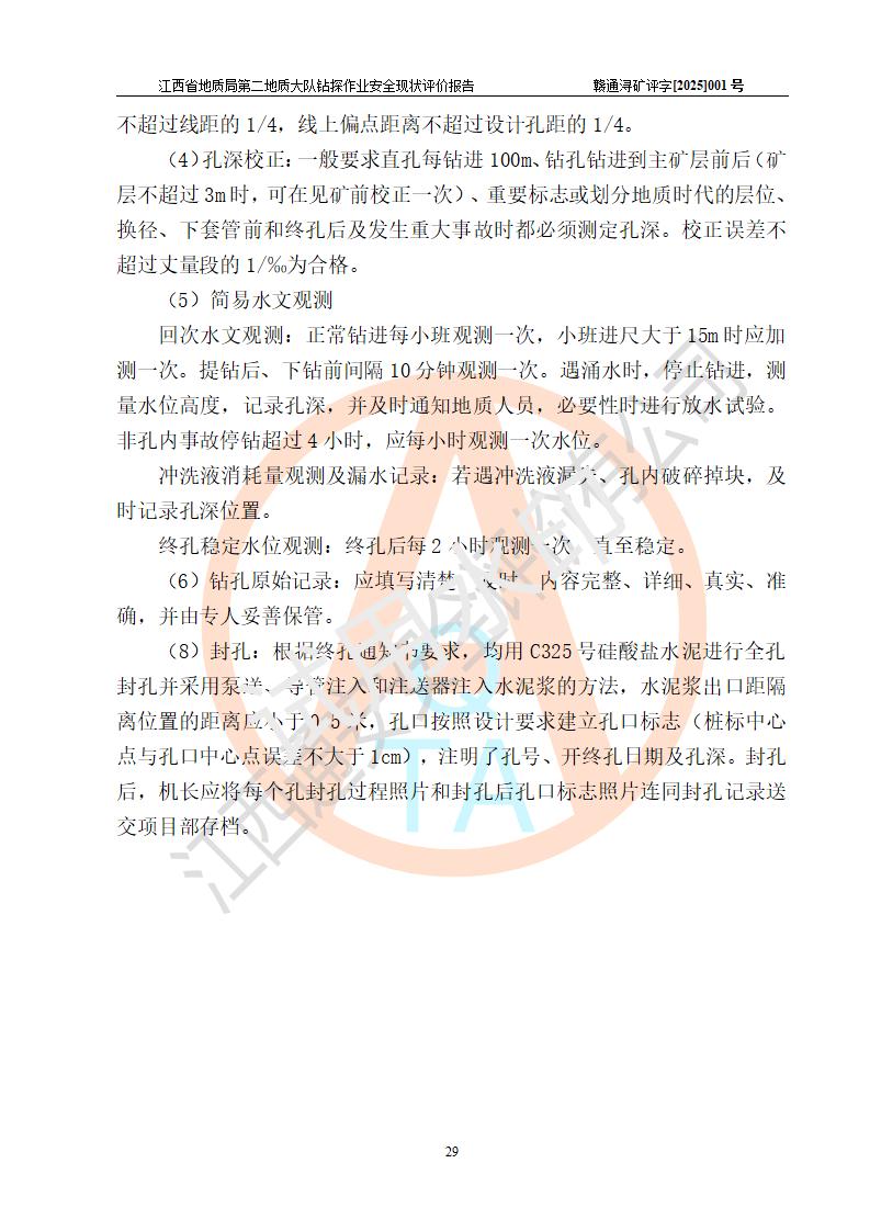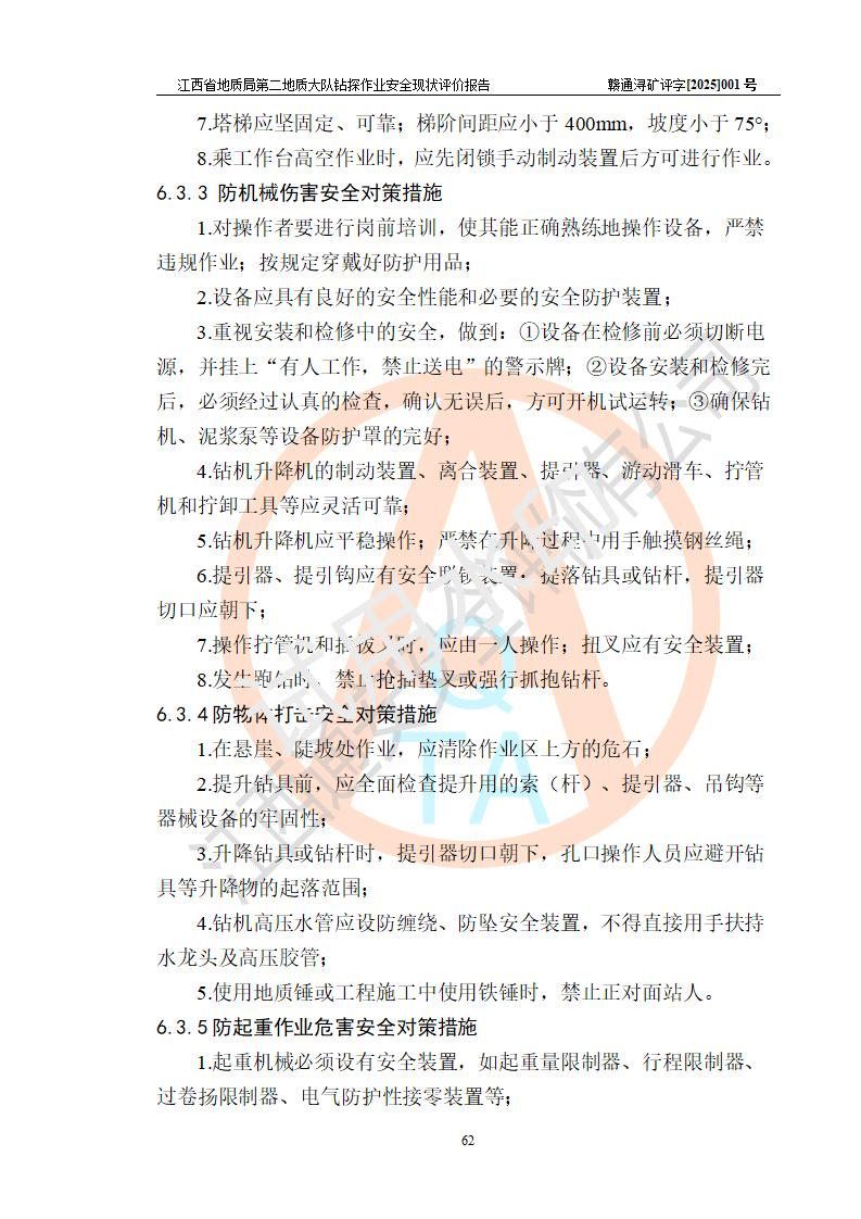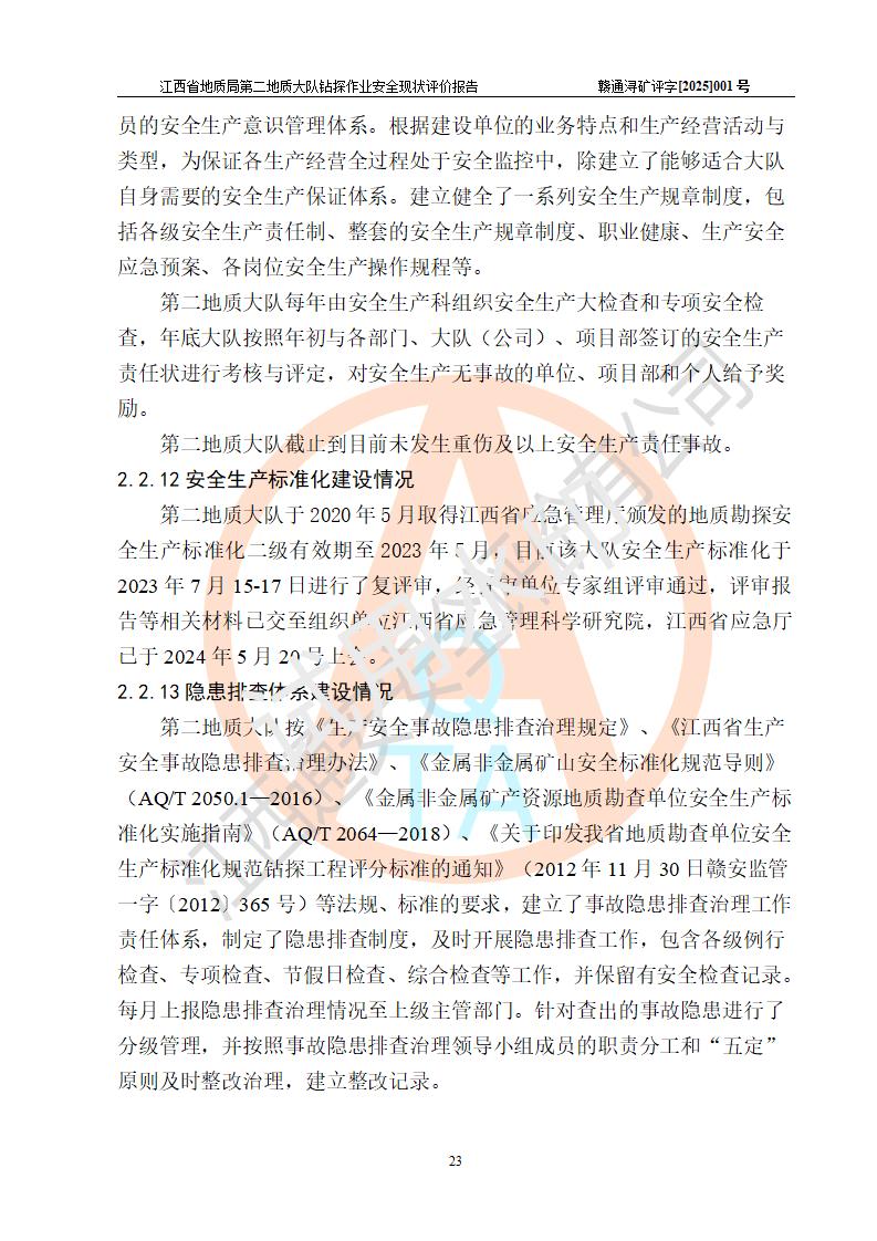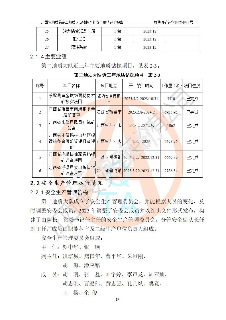 報告名稱 | 江西省地質(zhì)局第二地質(zhì)大隊(duì)地質(zhì)鉆探作業(yè)安全現(xiàn)狀評價報告 | |||||