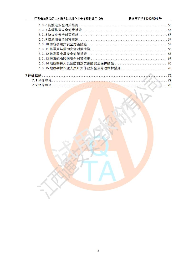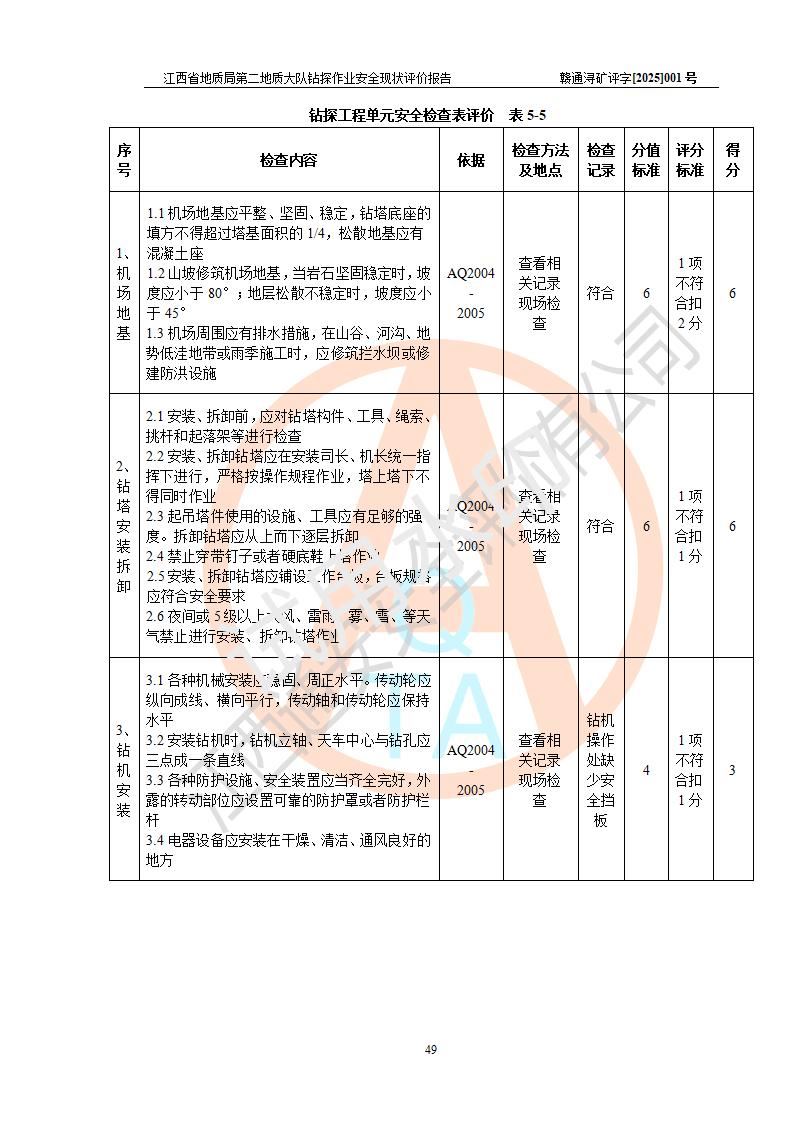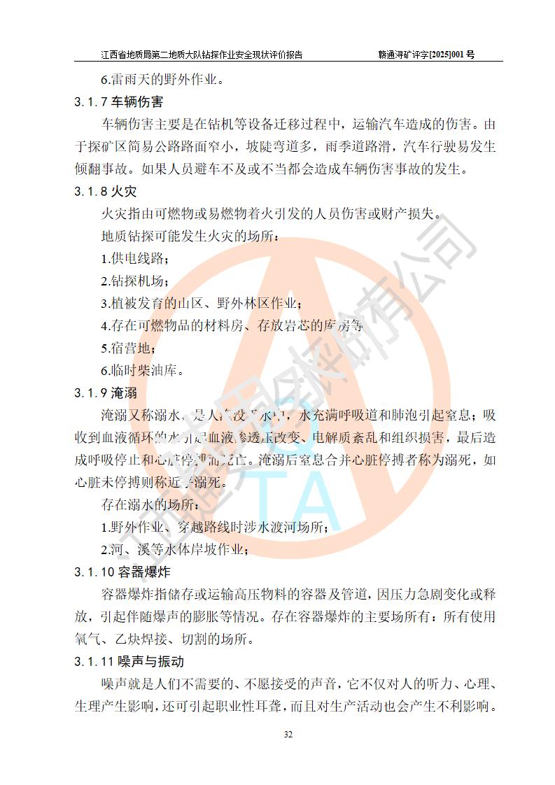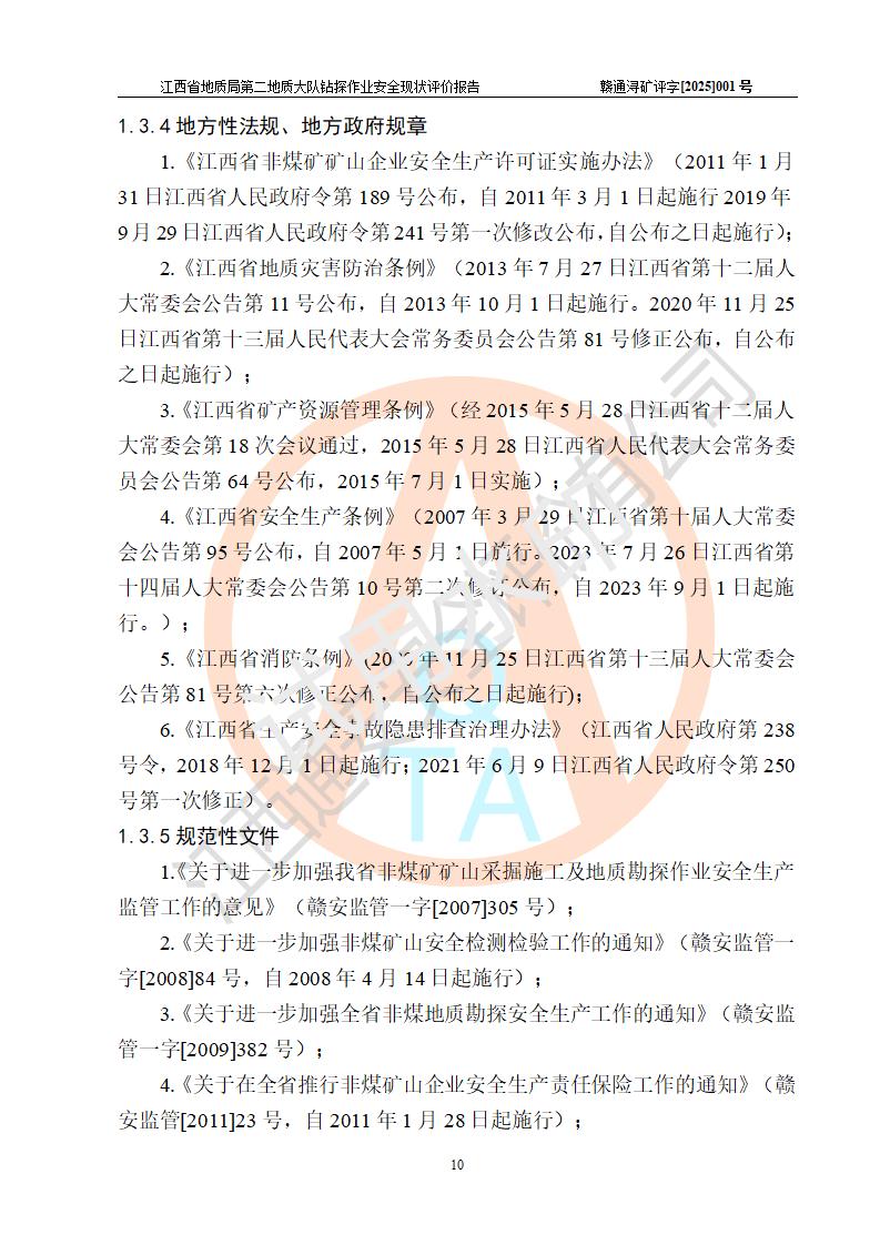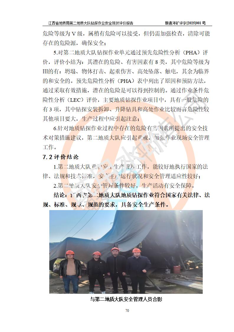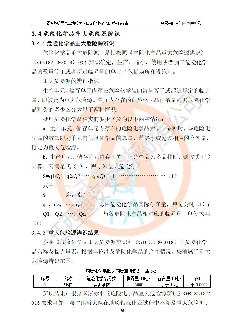 報告名稱 | 江西省地質(zhì)局第二地質(zhì)大隊(duì)地質(zhì)鉆探作業(yè)安全現(xiàn)狀評價報告 | |||||