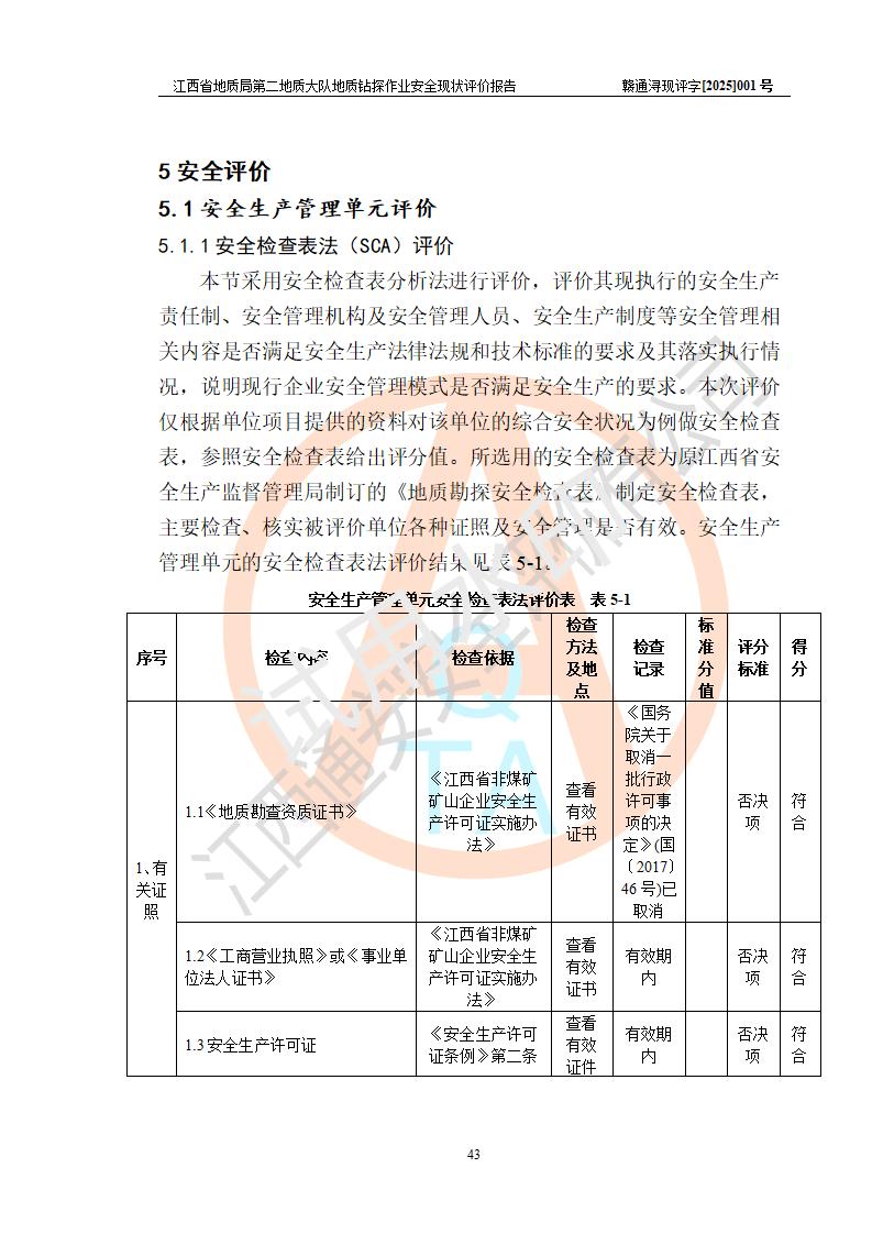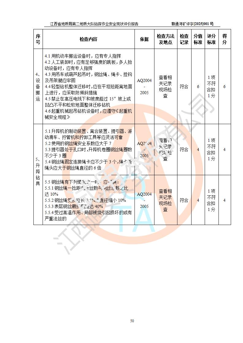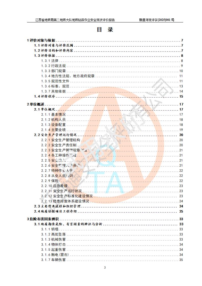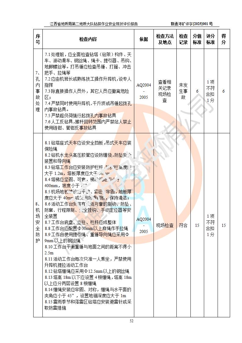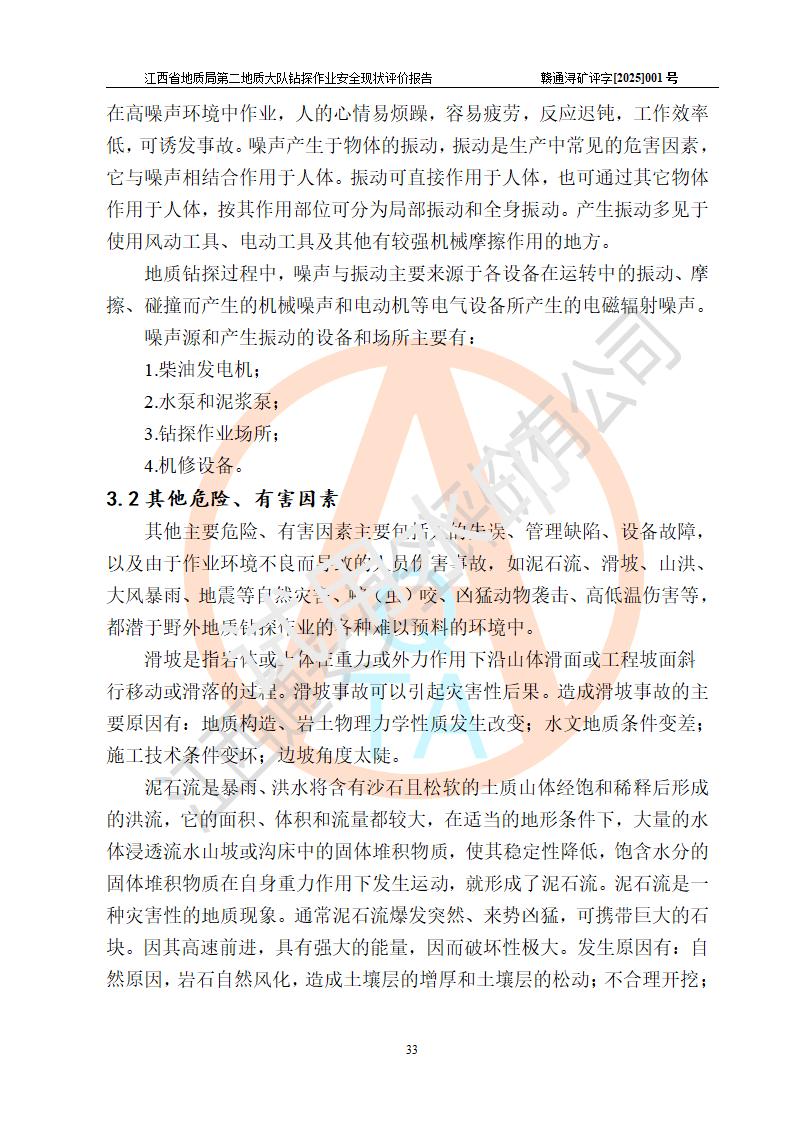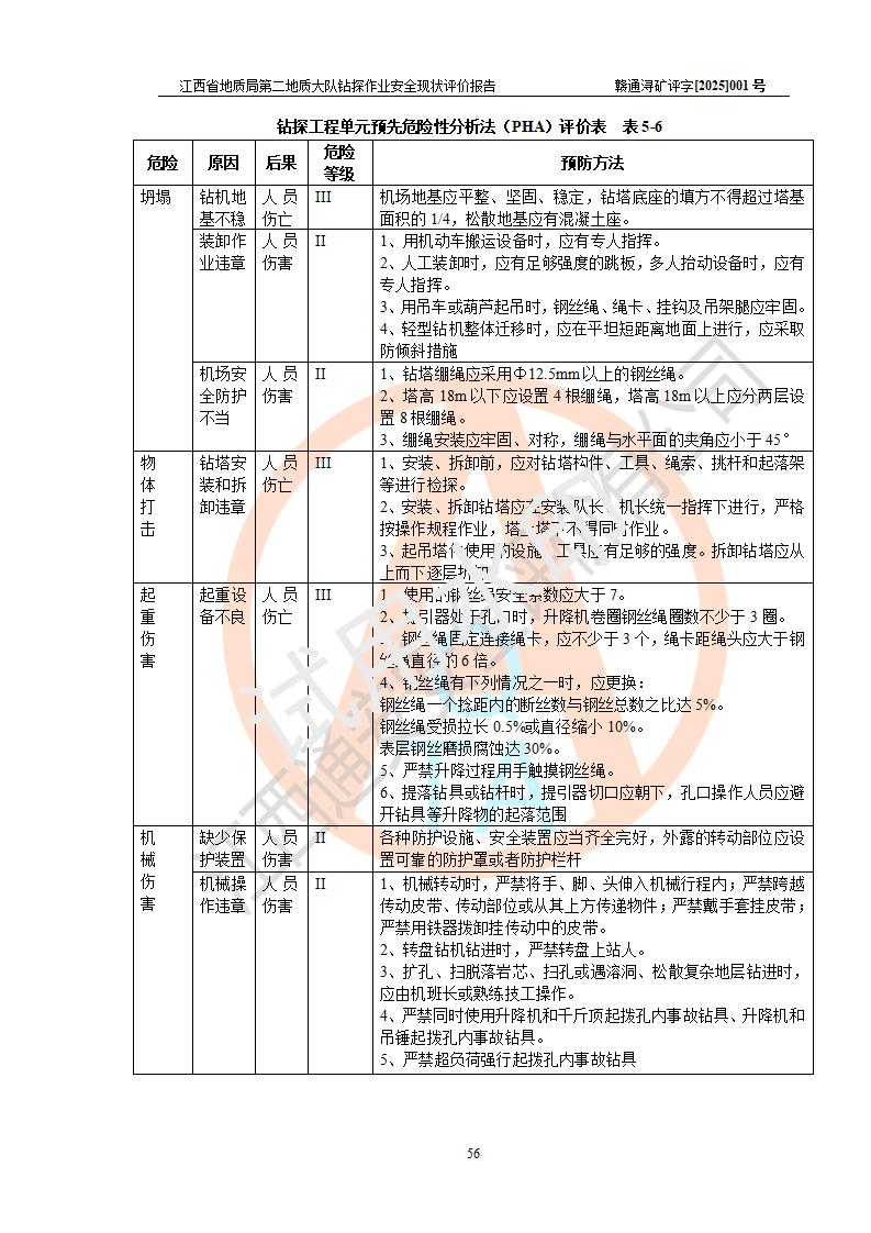 報告名稱 | 江西省地質(zhì)局第二地質(zhì)大隊(duì)地質(zhì)鉆探作業(yè)安全現(xiàn)狀評價報告 | |||||