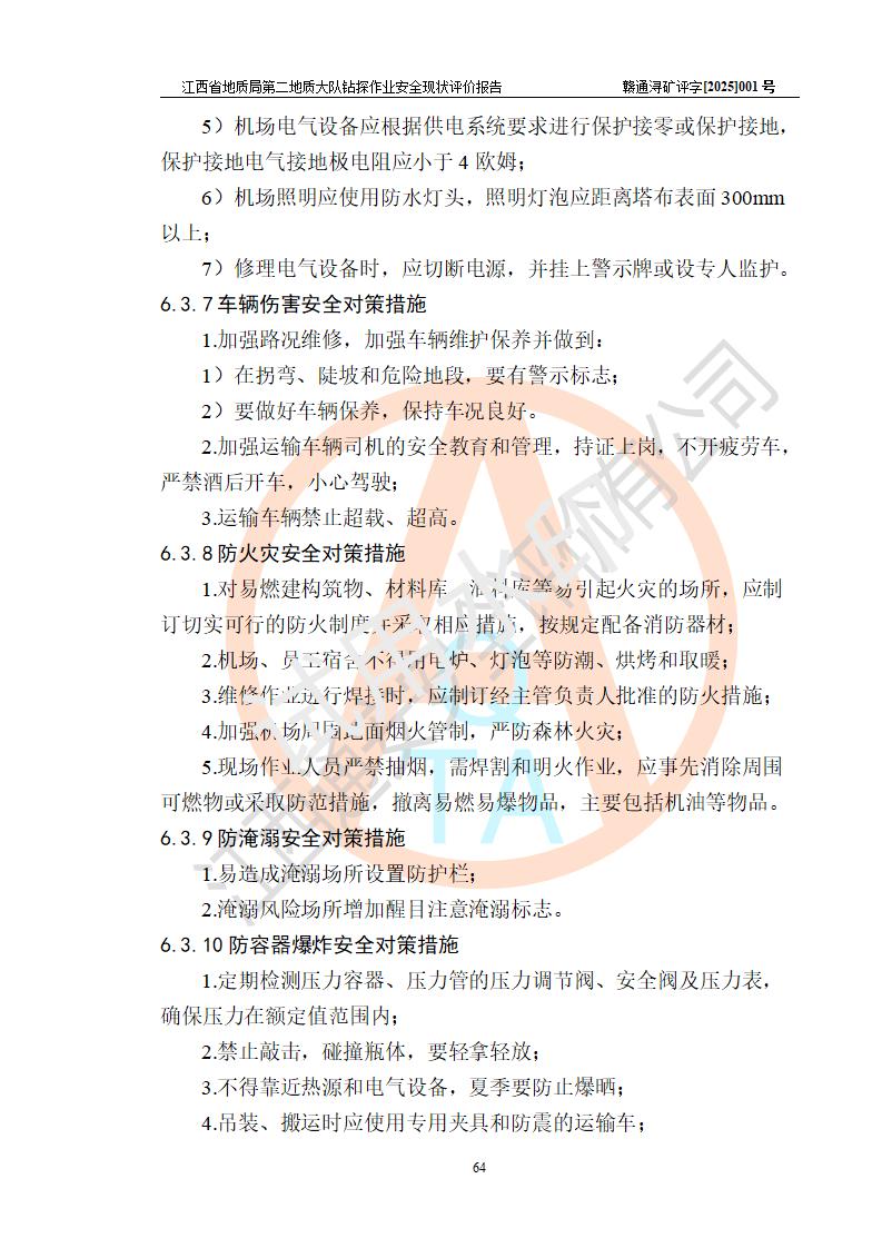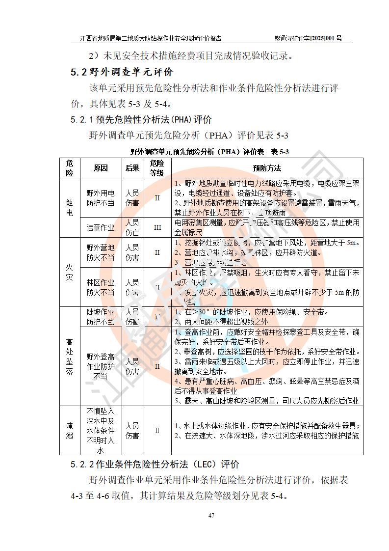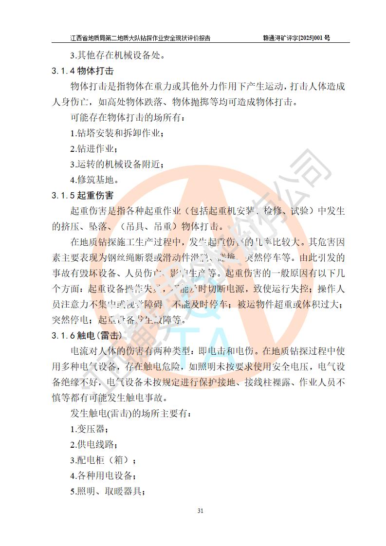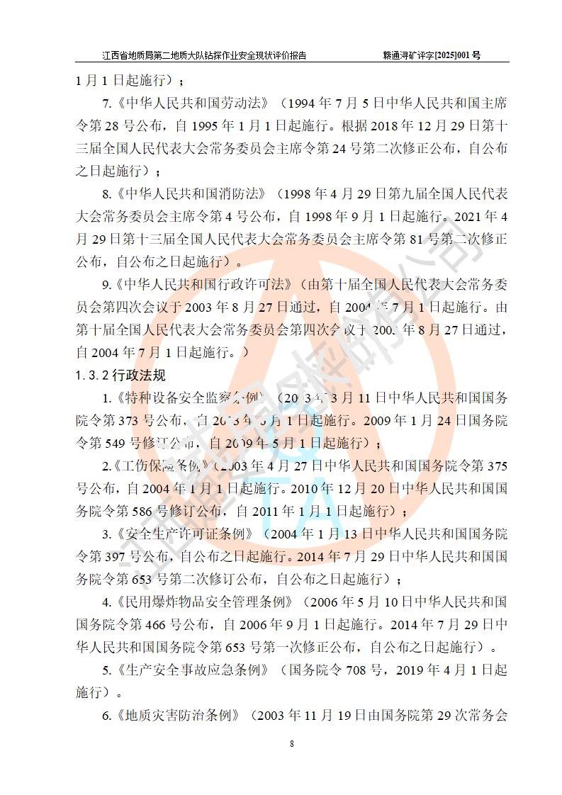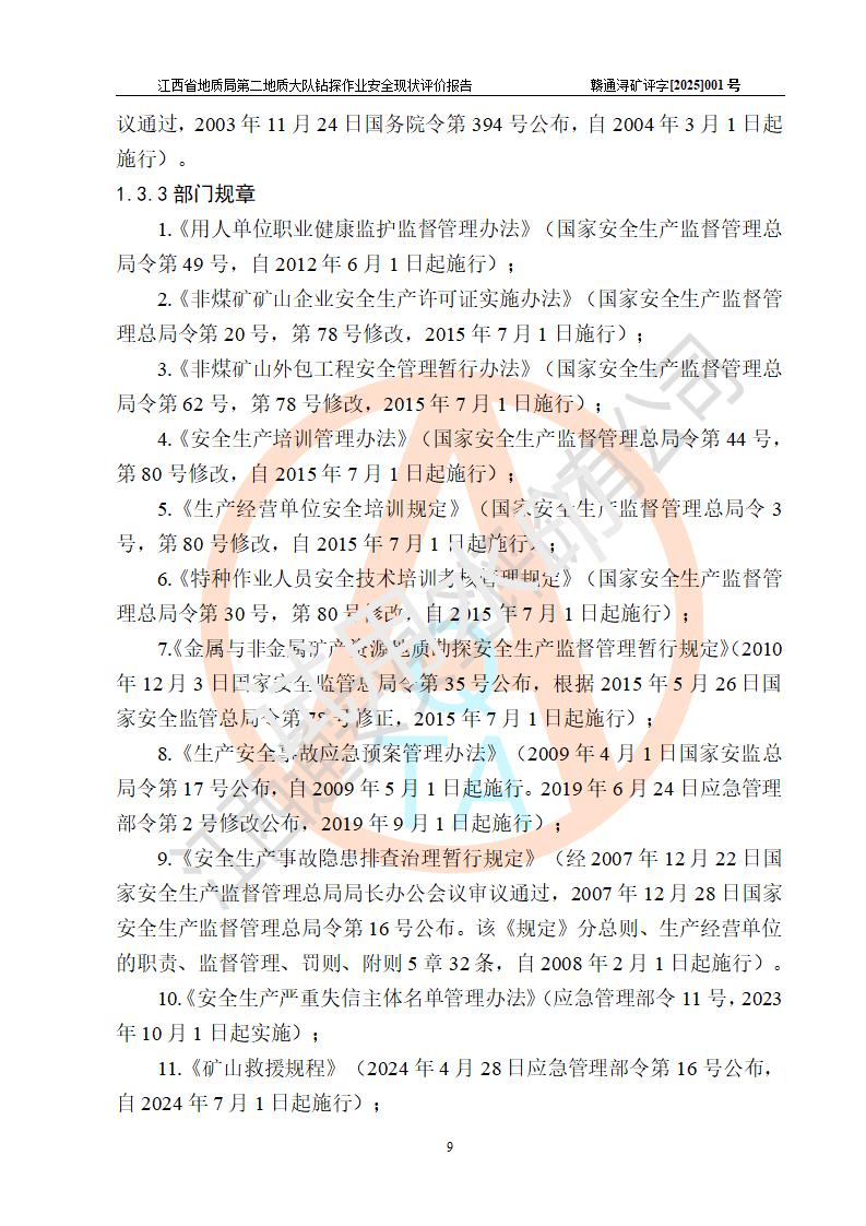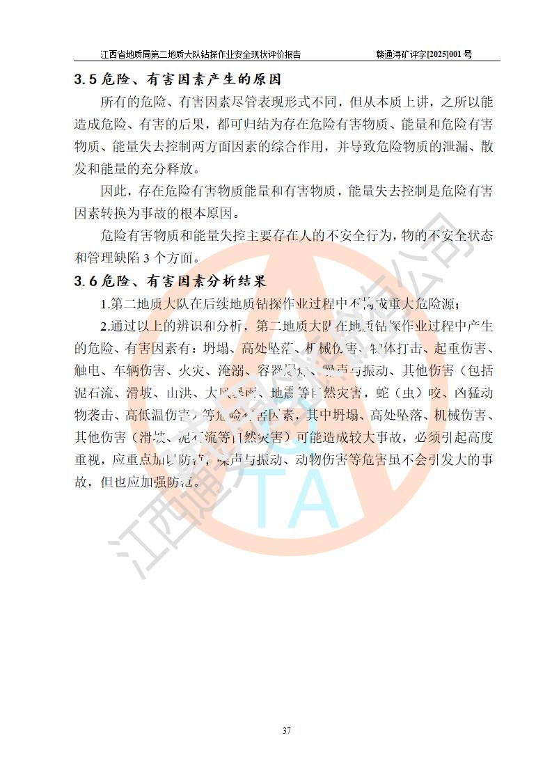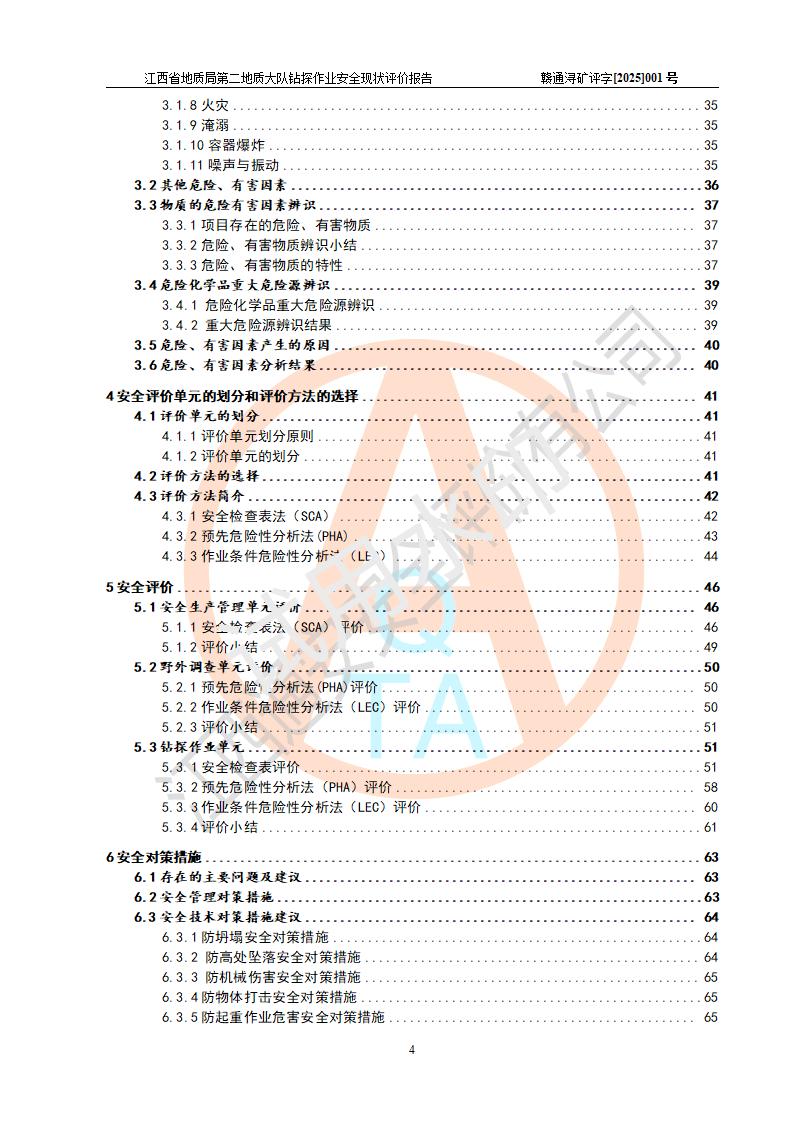 報告名稱 | 江西省地質(zhì)局第二地質(zhì)大隊(duì)地質(zhì)鉆探作業(yè)安全現(xiàn)狀評價報告 | |||||