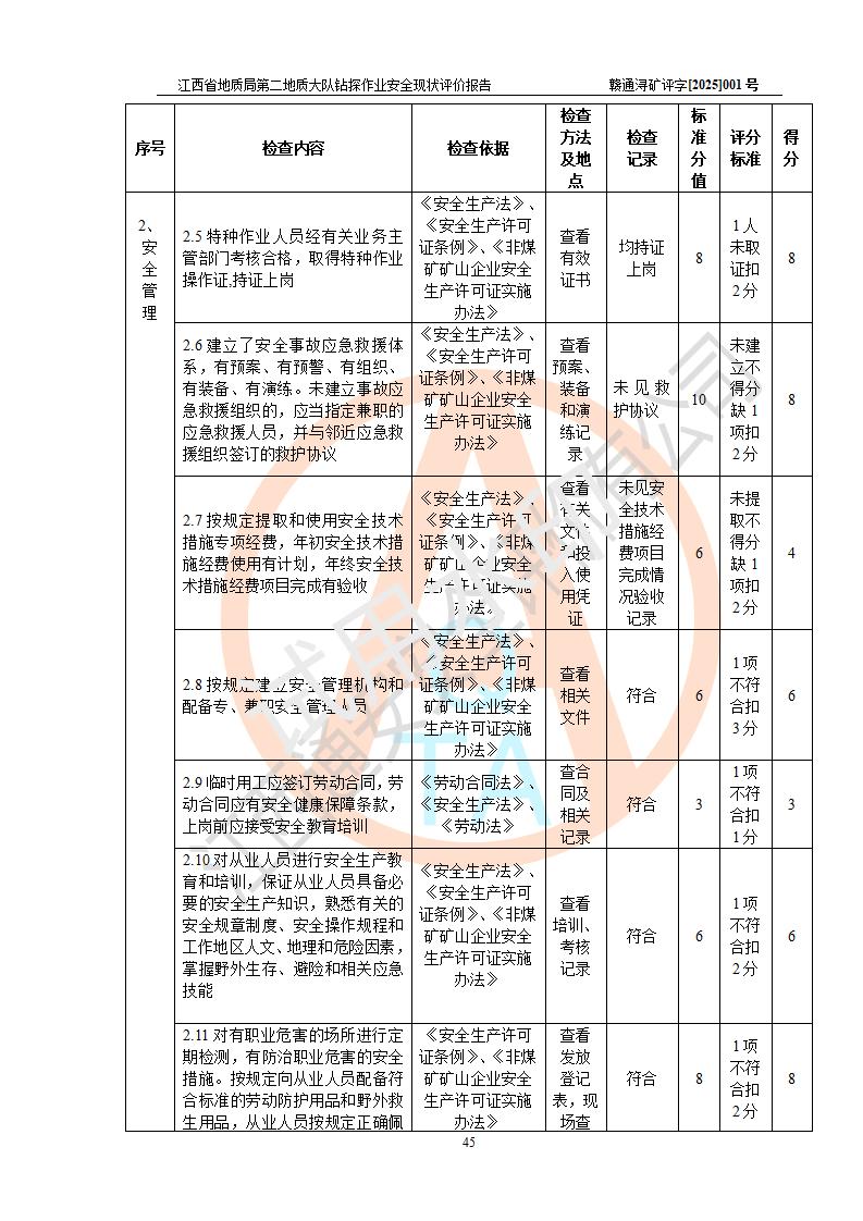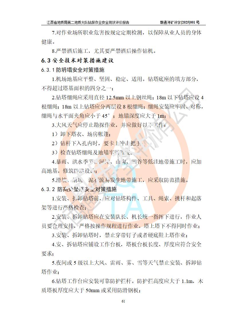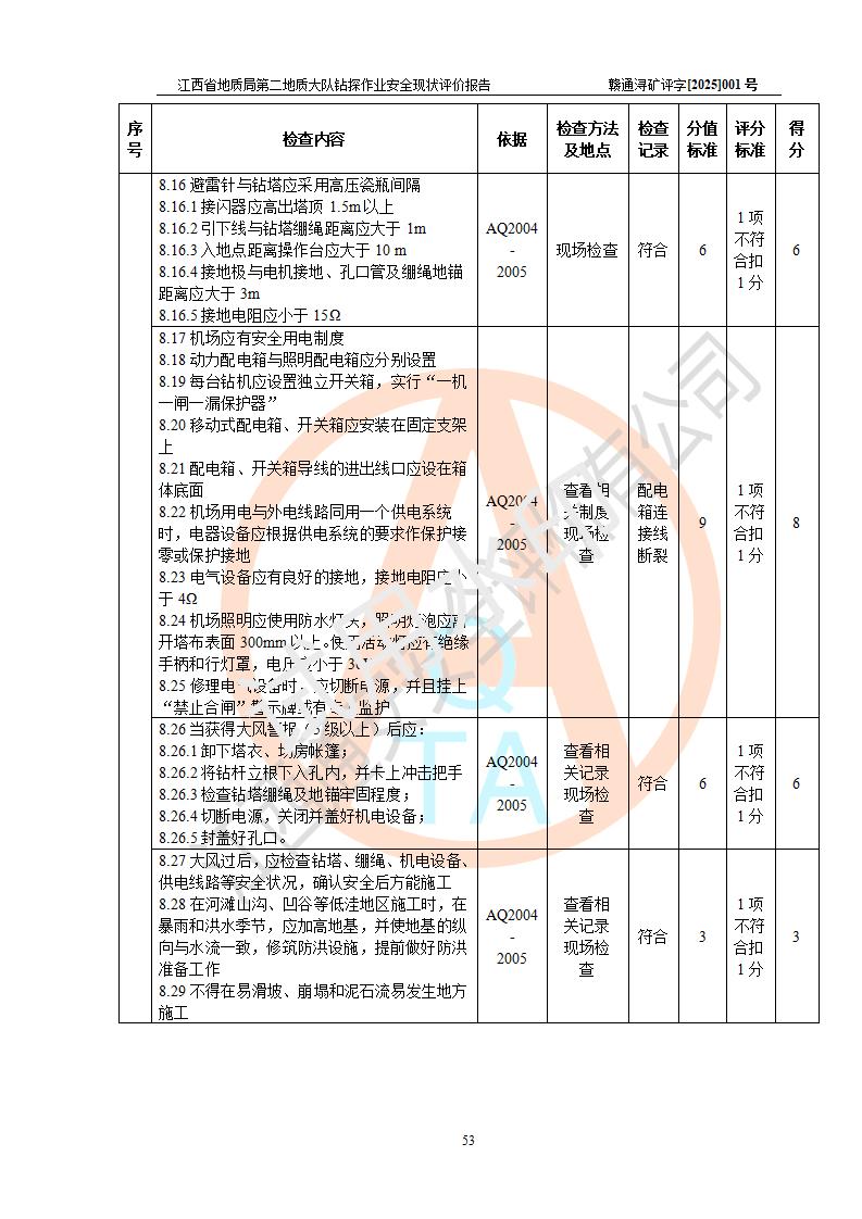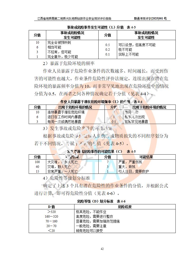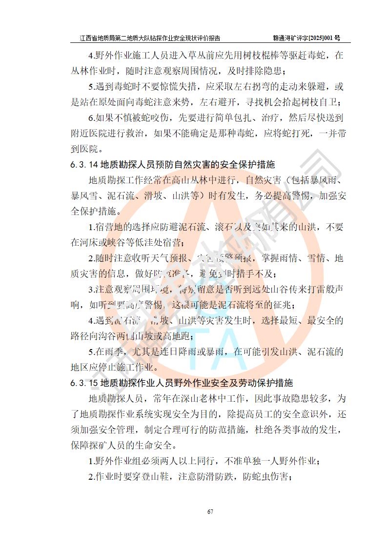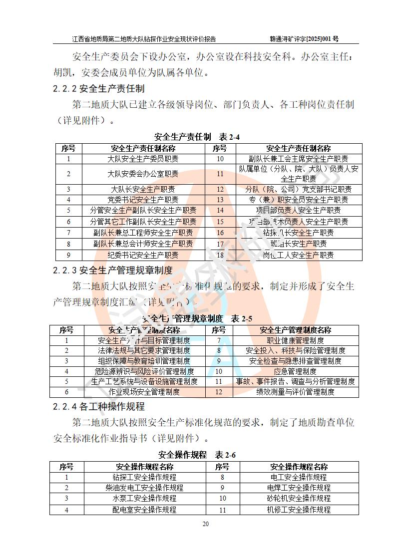 報告名稱 | 江西省地質(zhì)局第二地質(zhì)大隊(duì)地質(zhì)鉆探作業(yè)安全現(xiàn)狀評價報告 | |||||