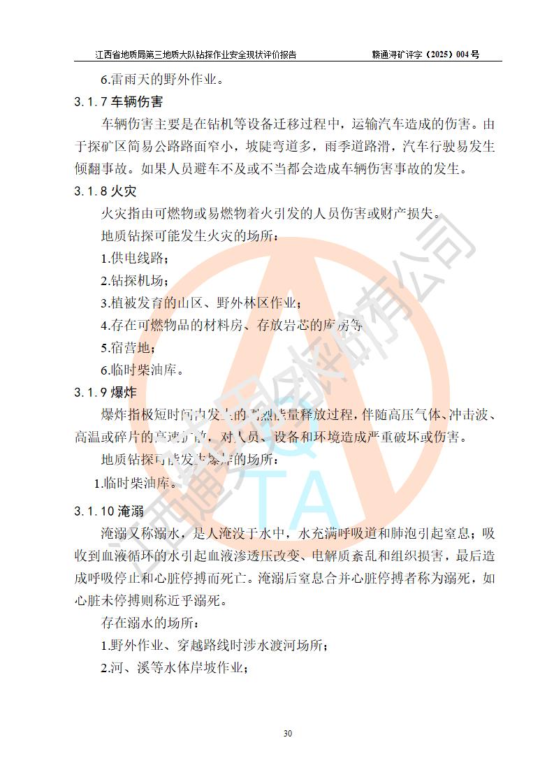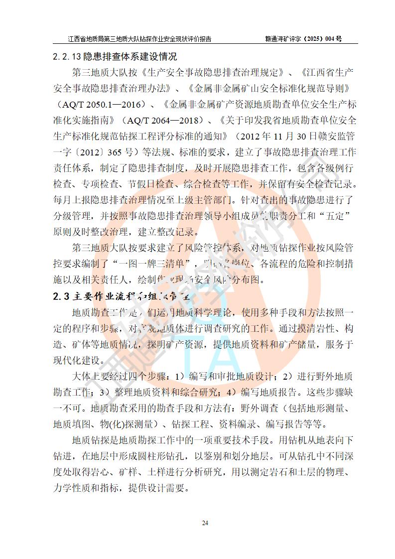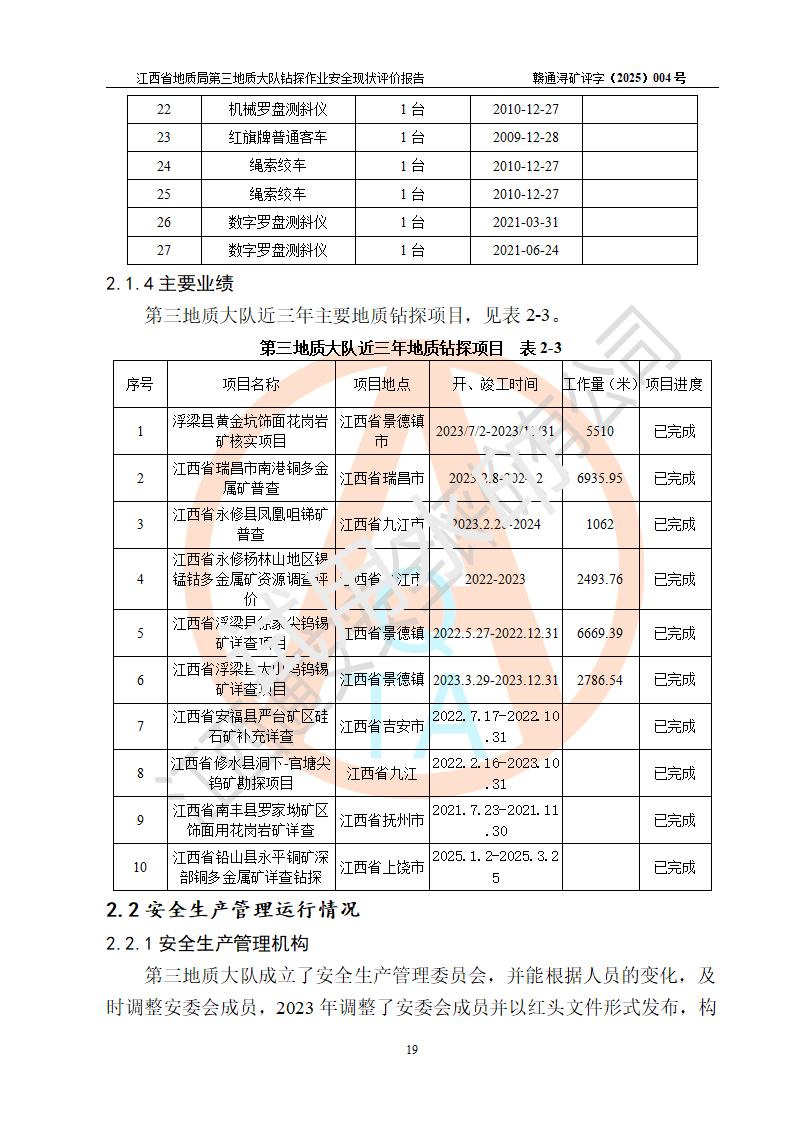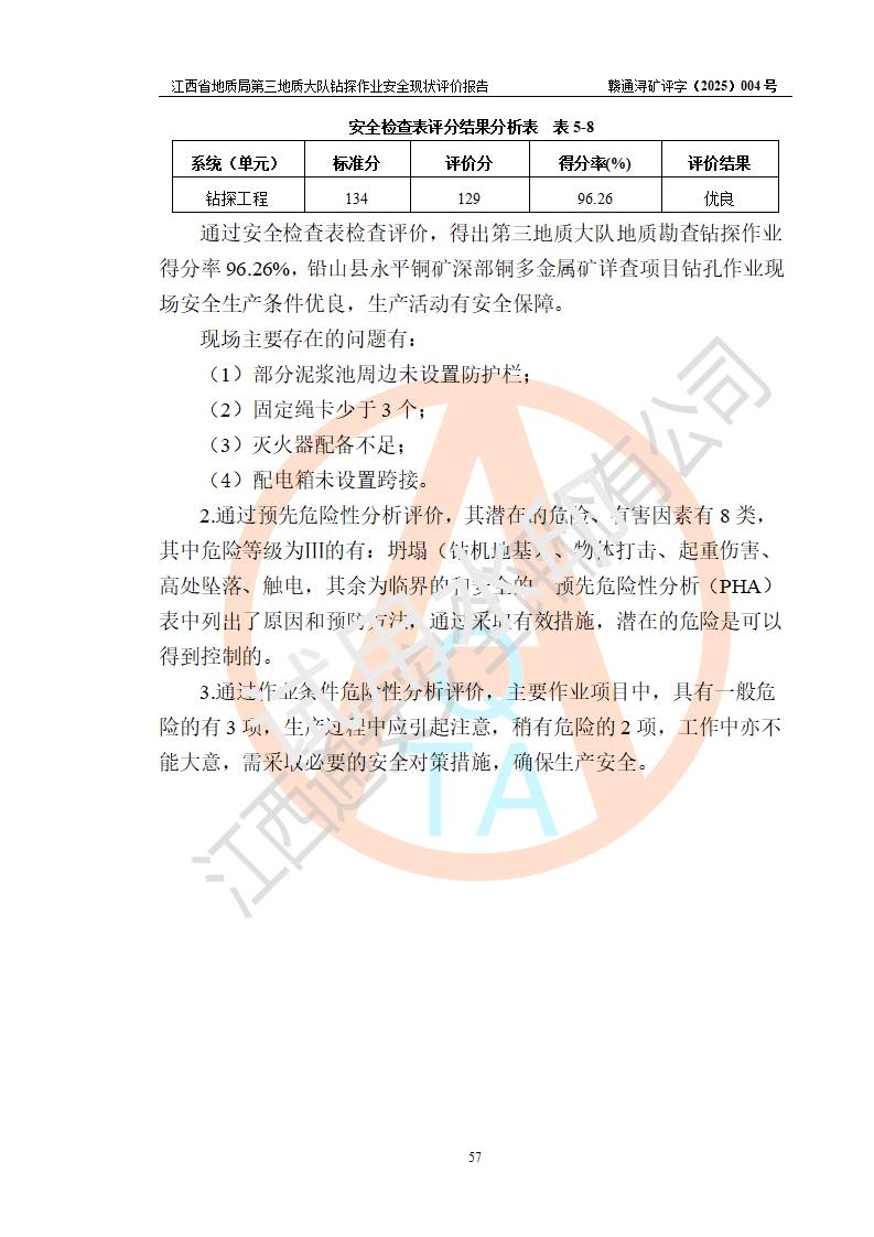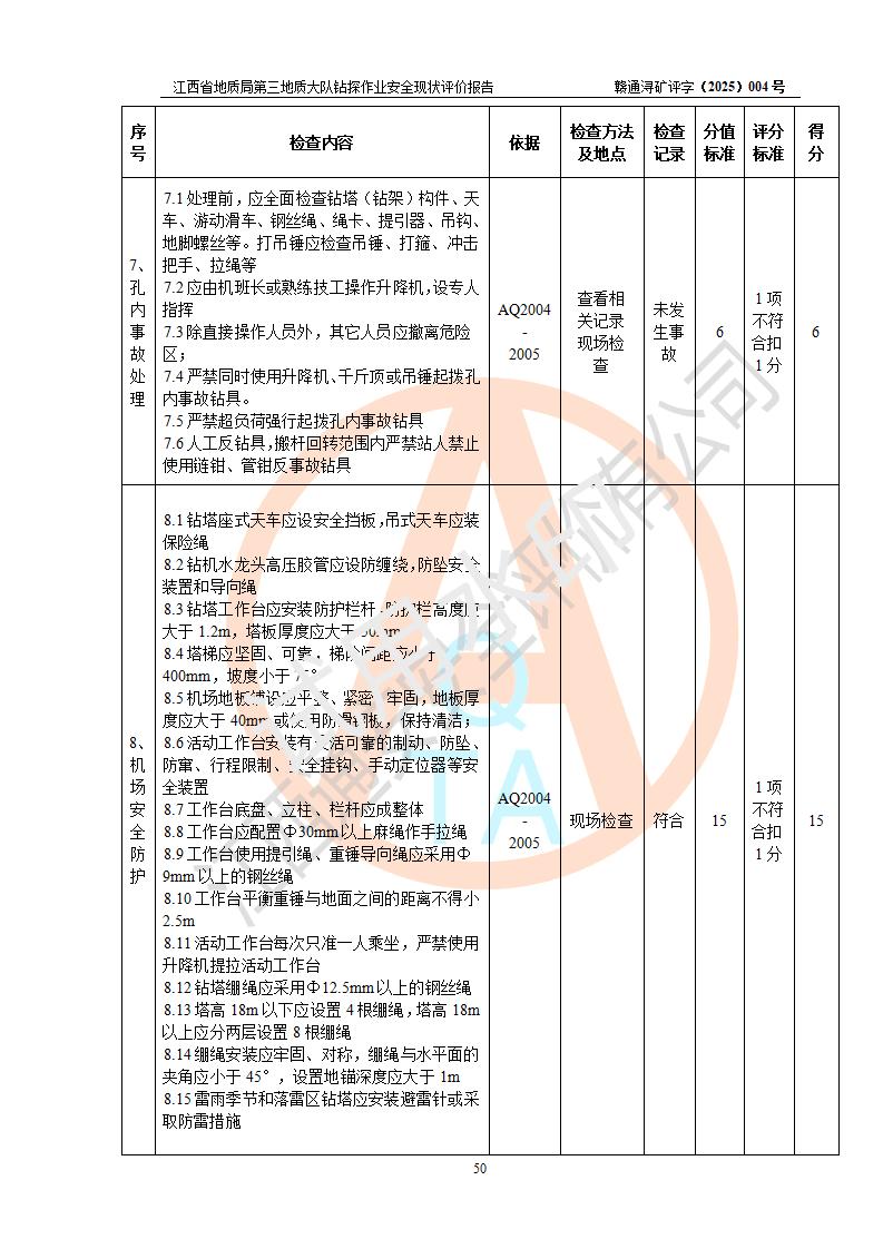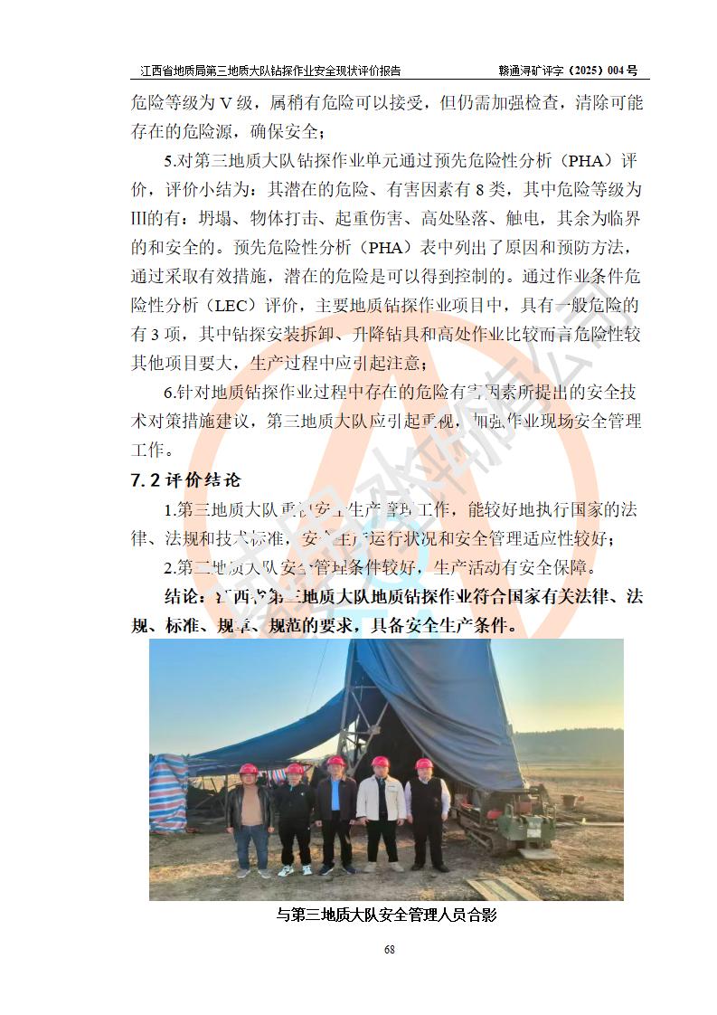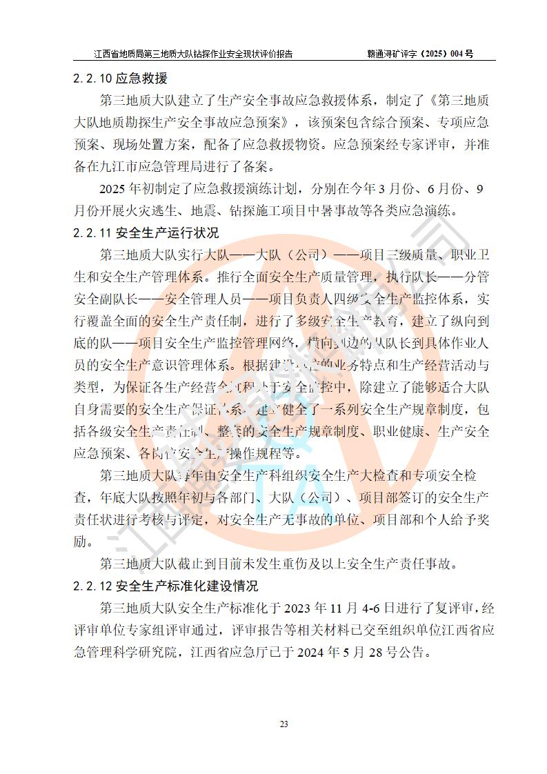 報告名稱 | 江西省地質(zhì)局第三地質(zhì)大隊地質(zhì)鉆探作業(yè)安全現(xiàn)狀評價報告 | |||||