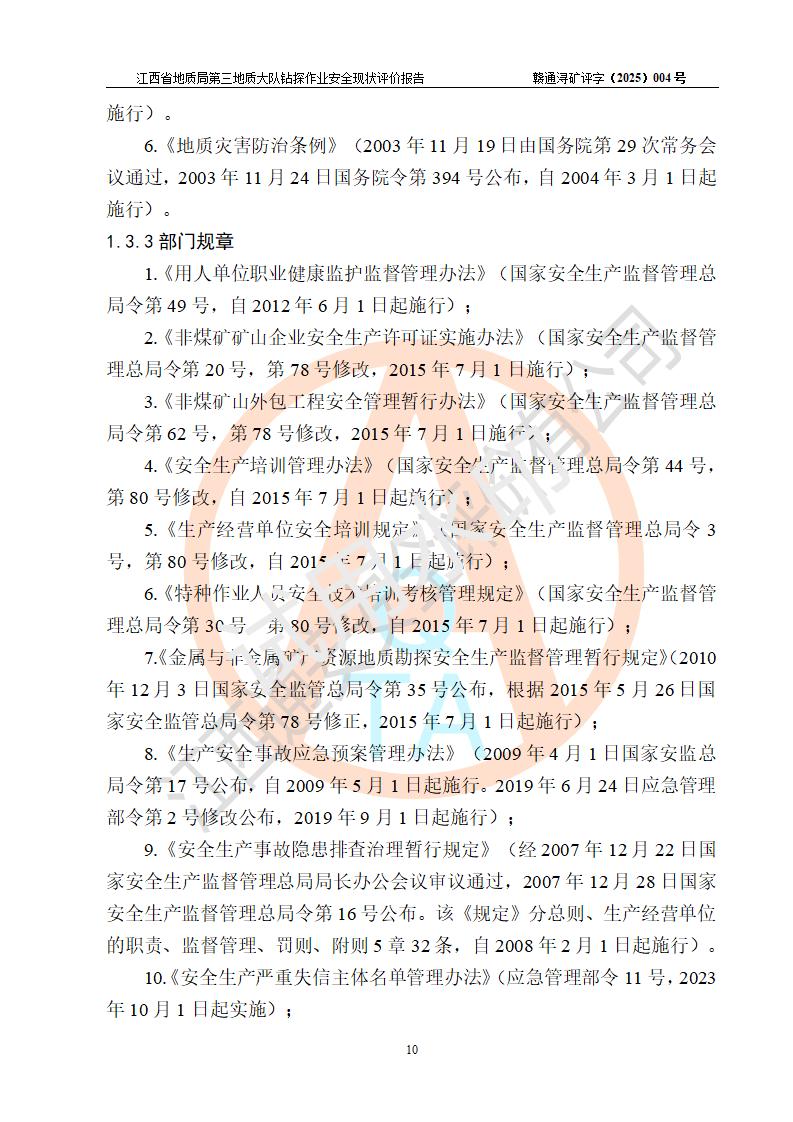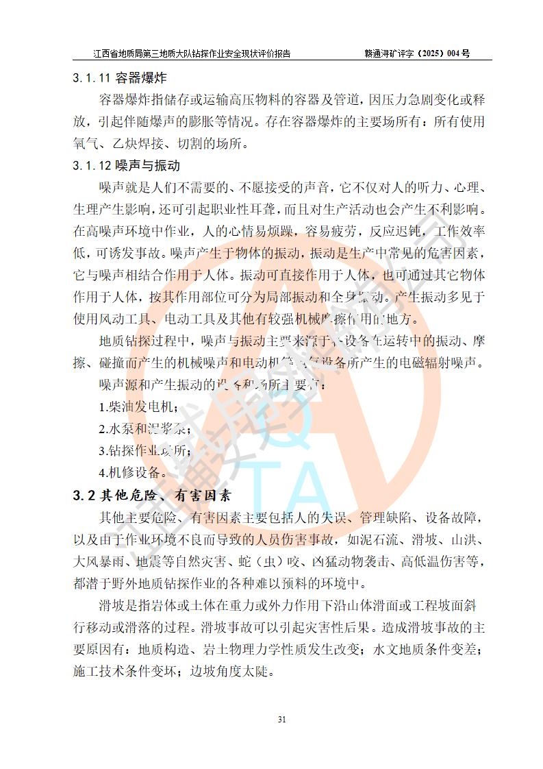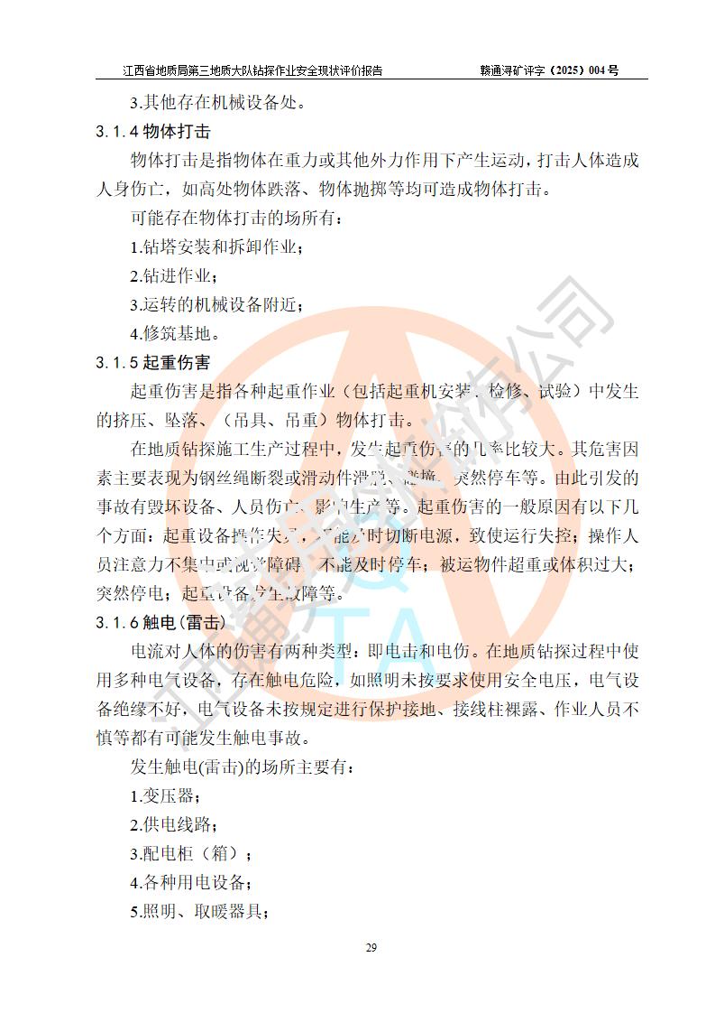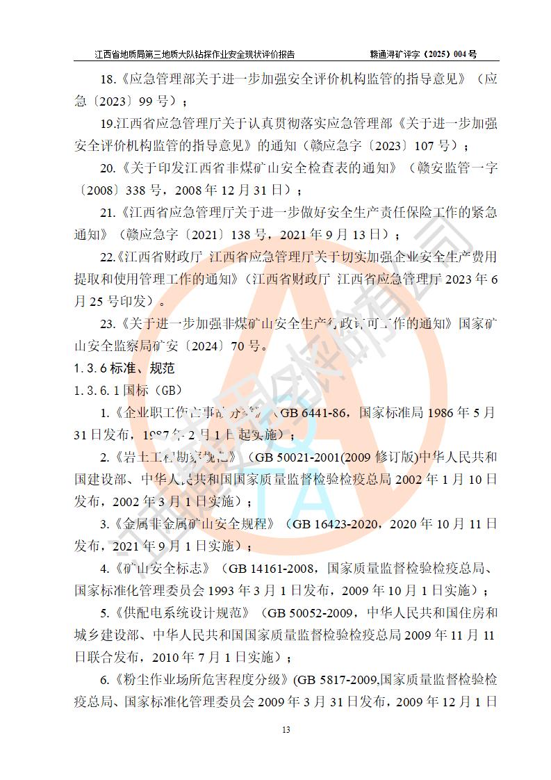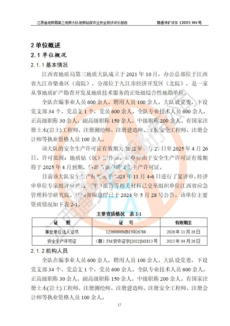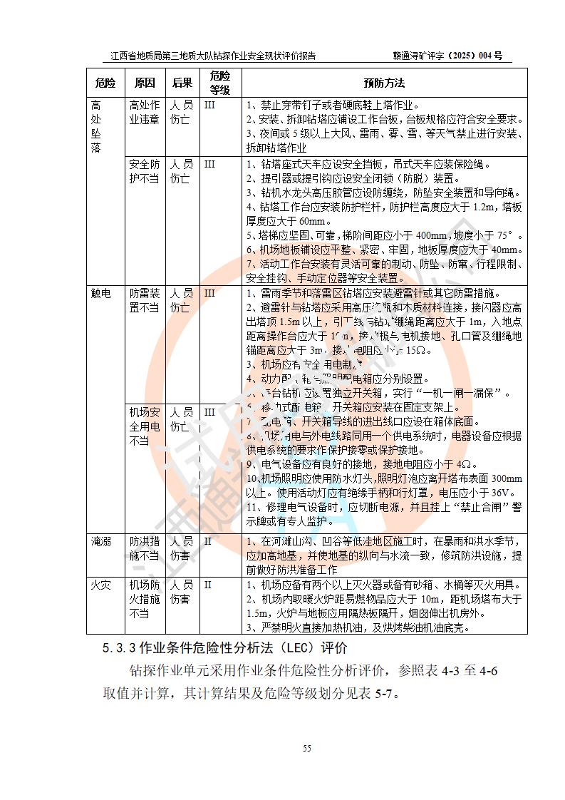 報告名稱 | 江西省地質(zhì)局第三地質(zhì)大隊地質(zhì)鉆探作業(yè)安全現(xiàn)狀評價報告 | |||||