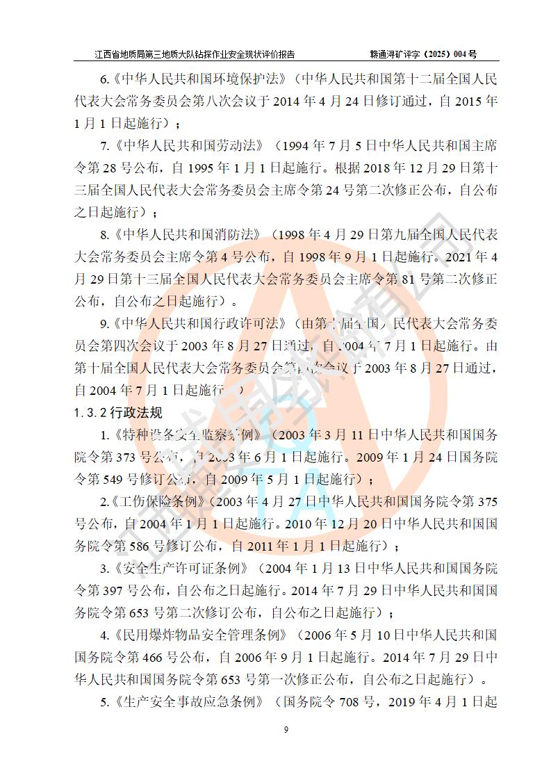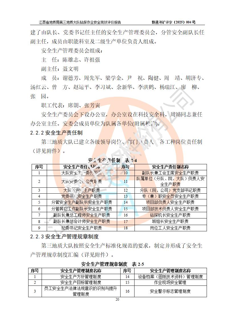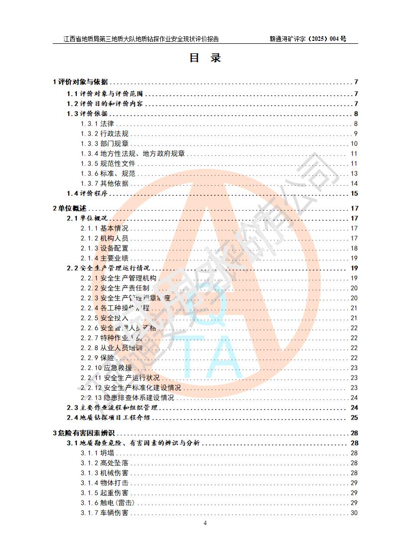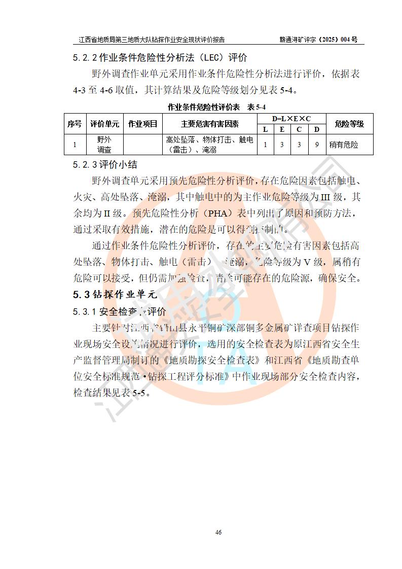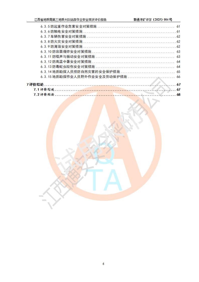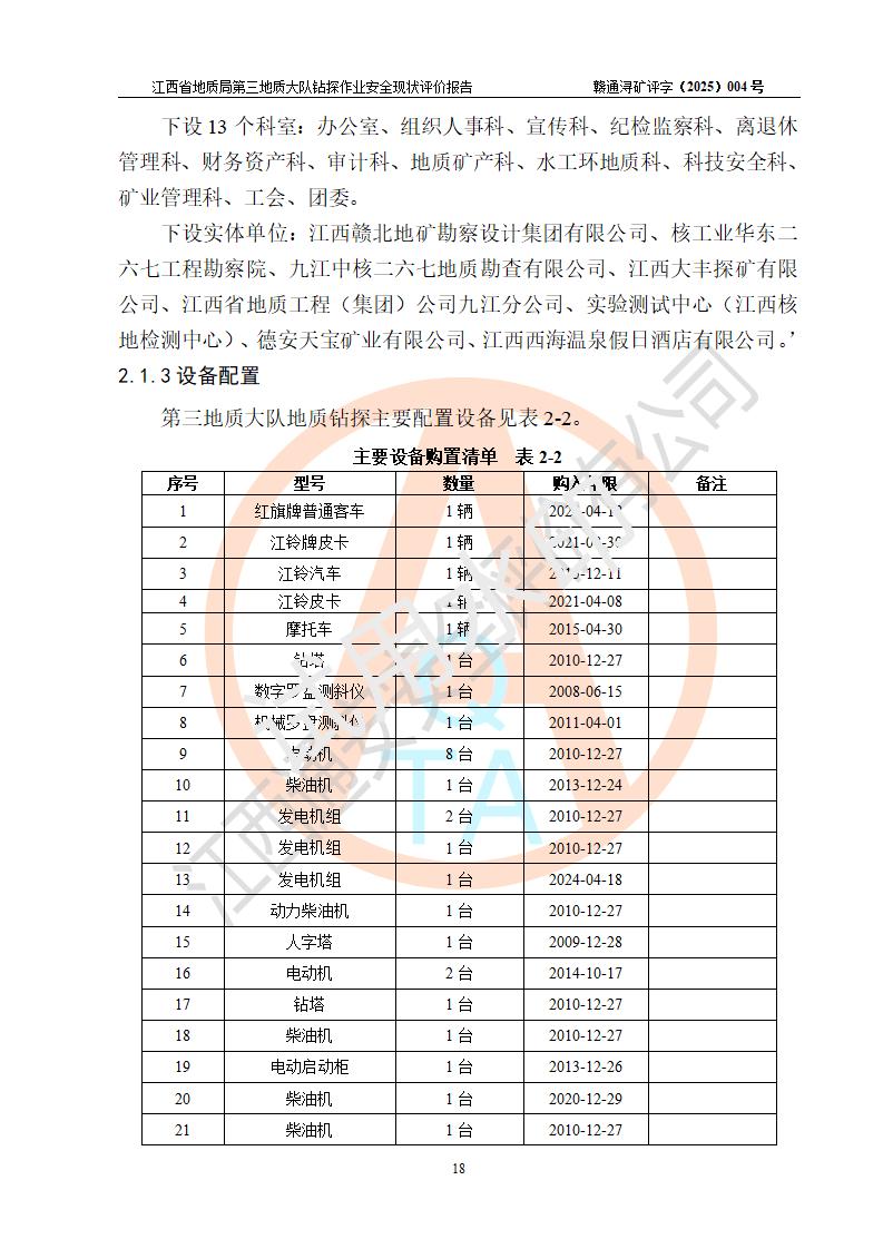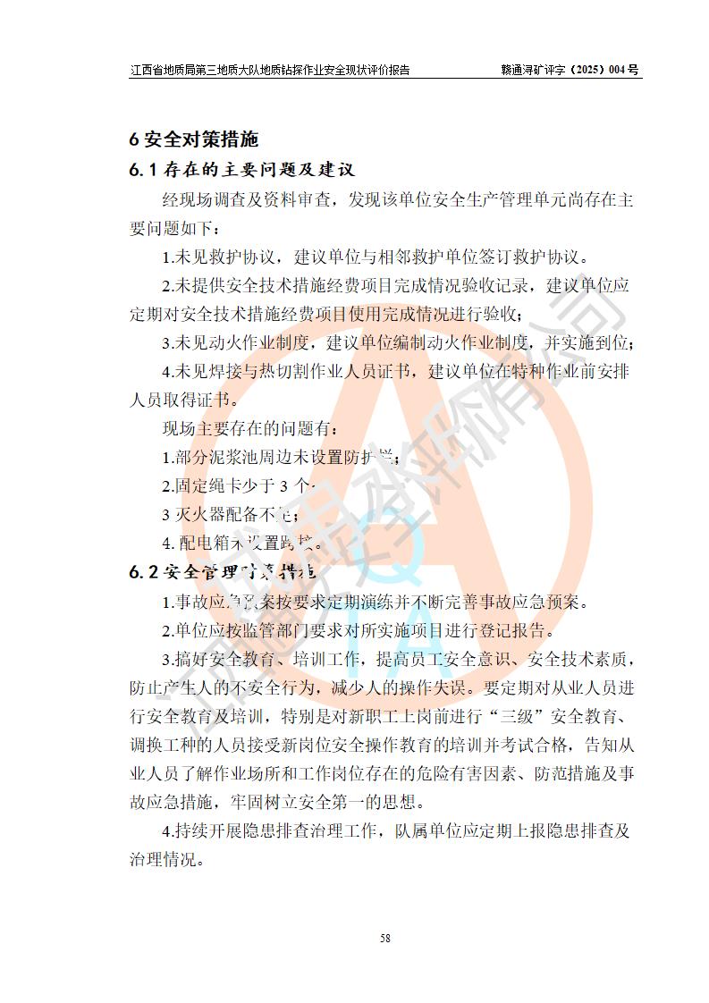 報告名稱 | 江西省地質(zhì)局第三地質(zhì)大隊地質(zhì)鉆探作業(yè)安全現(xiàn)狀評價報告 | |||||