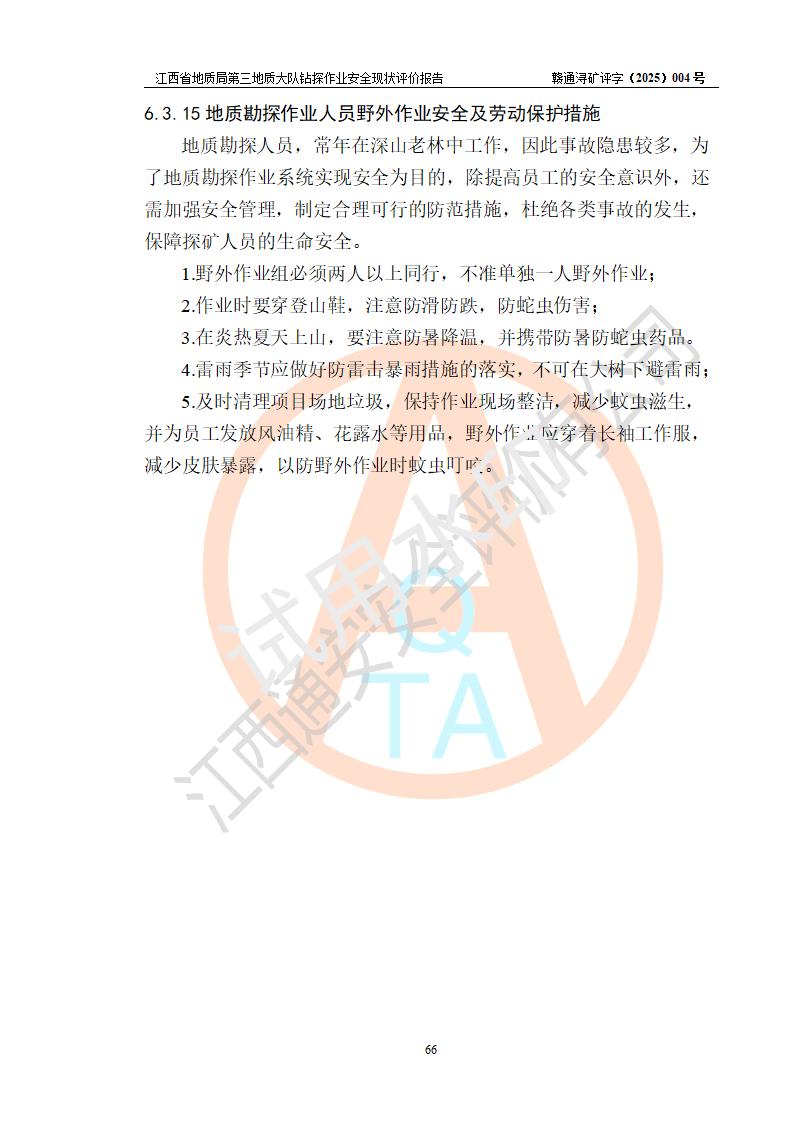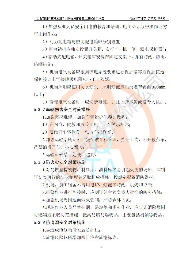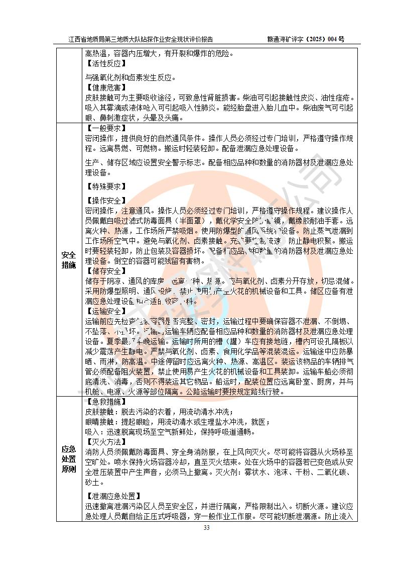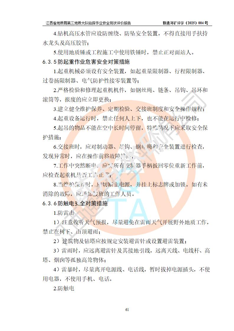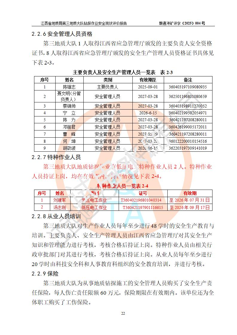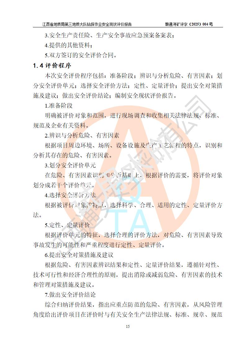 報告名稱 | 江西省地質(zhì)局第三地質(zhì)大隊地質(zhì)鉆探作業(yè)安全現(xiàn)狀評價報告 | |||||