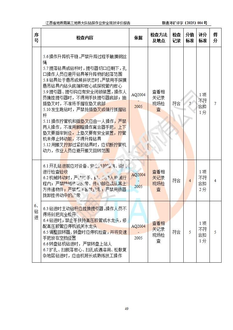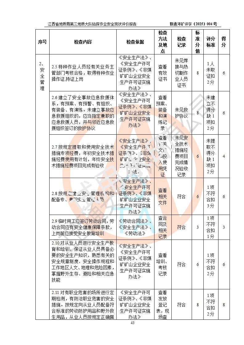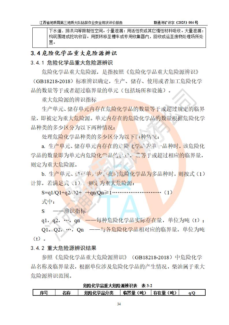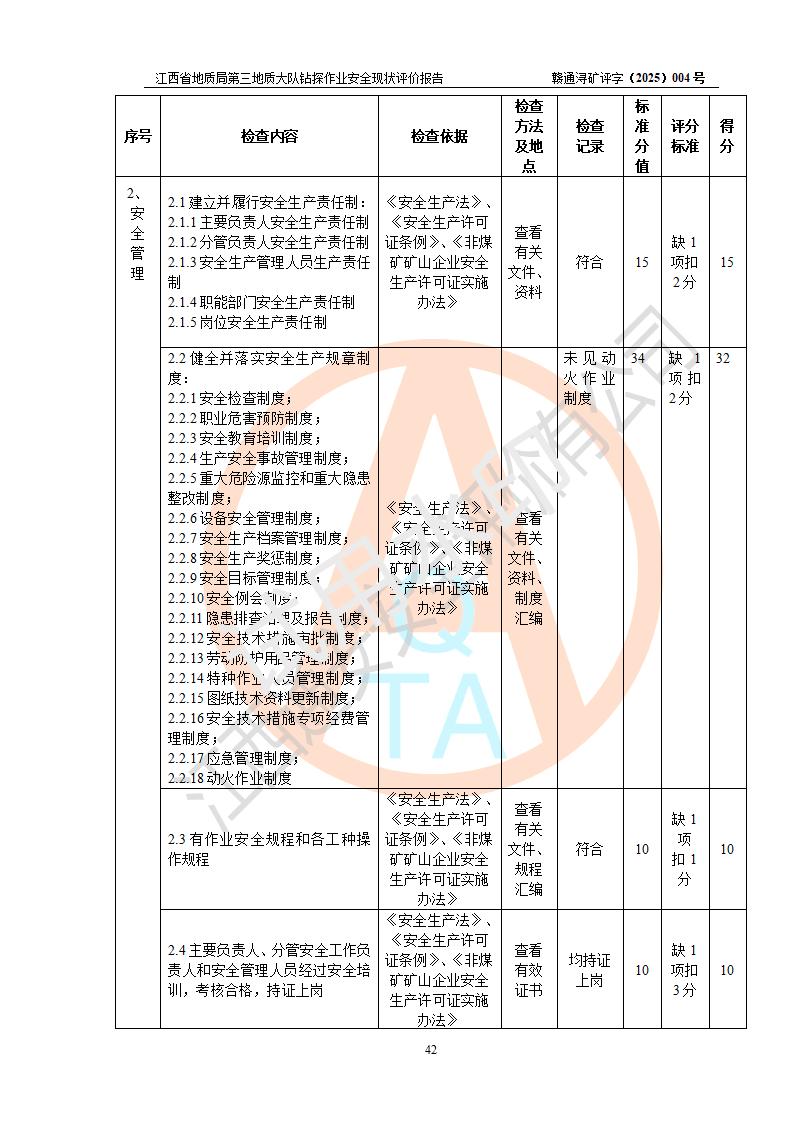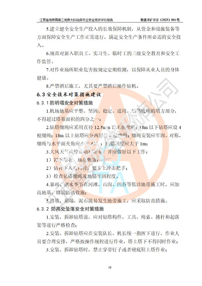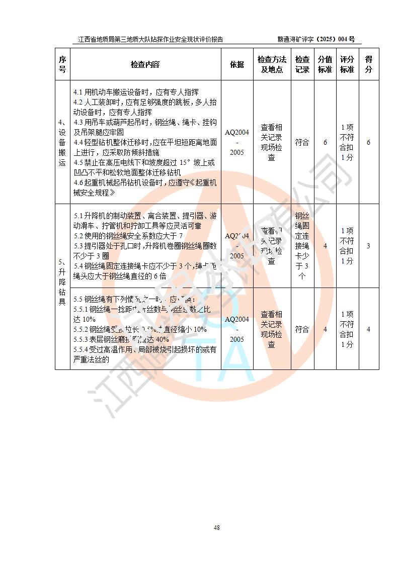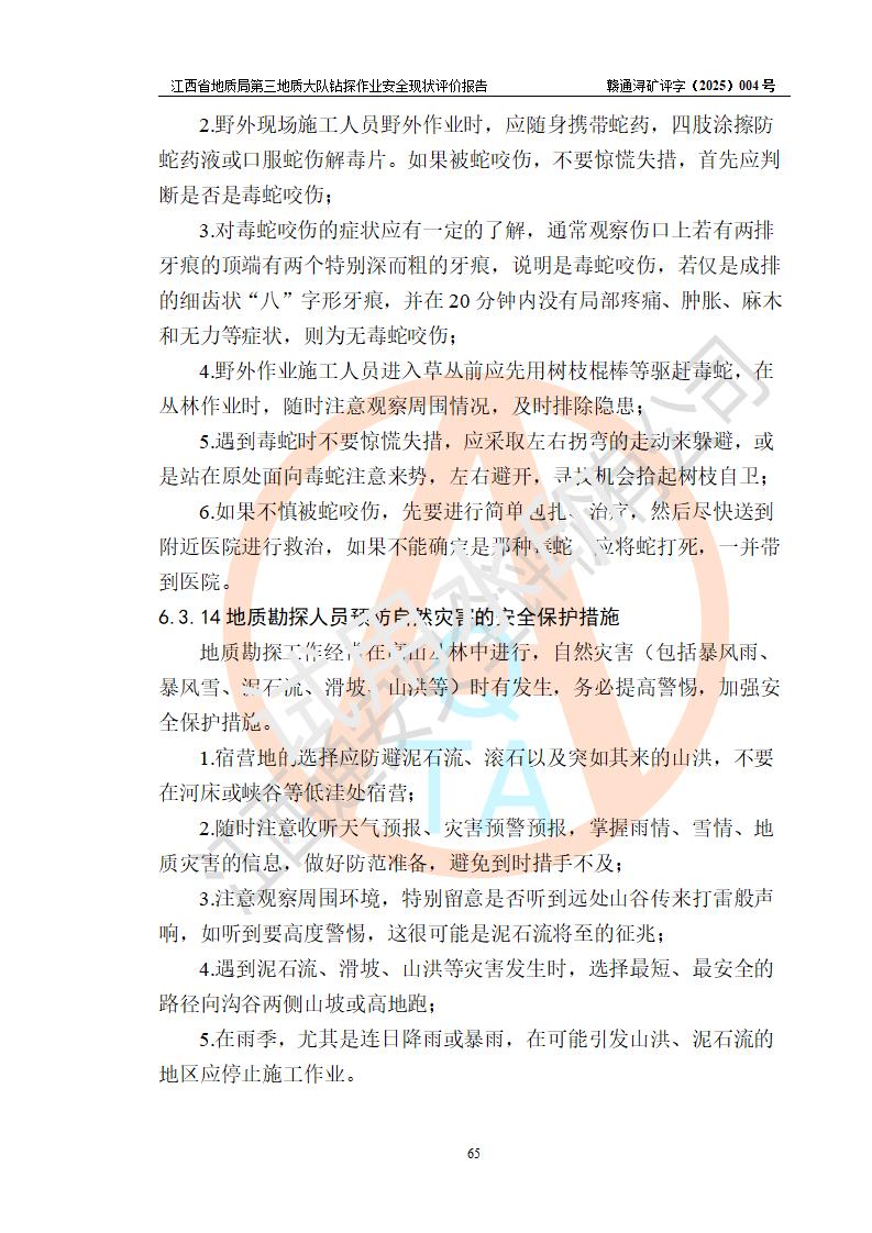 報告名稱 | 江西省地質(zhì)局第三地質(zhì)大隊地質(zhì)鉆探作業(yè)安全現(xiàn)狀評價報告 | |||||
