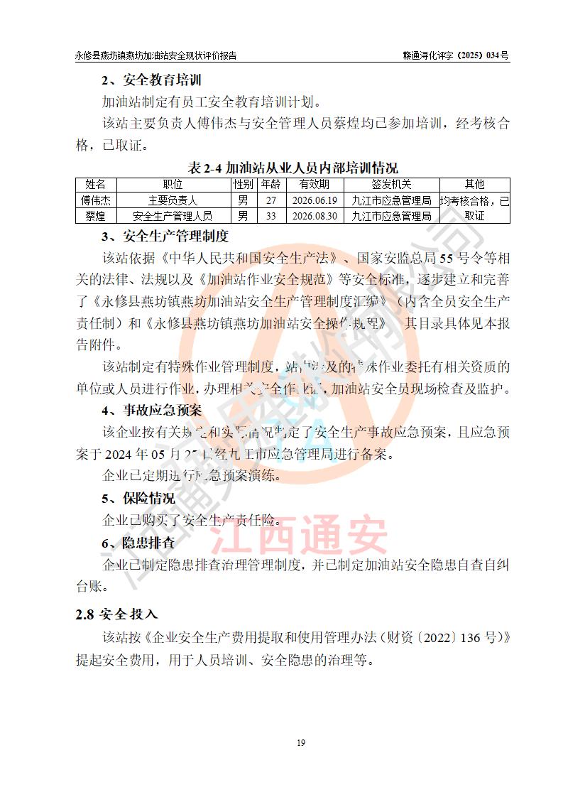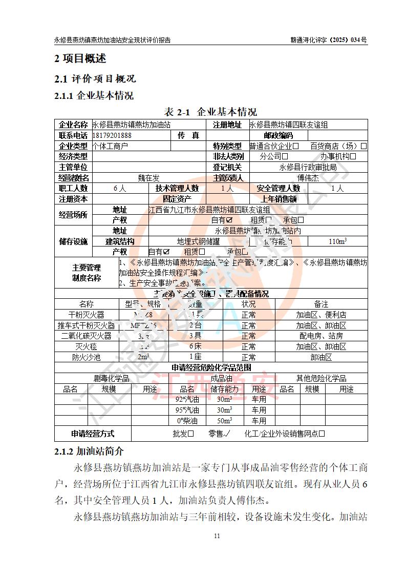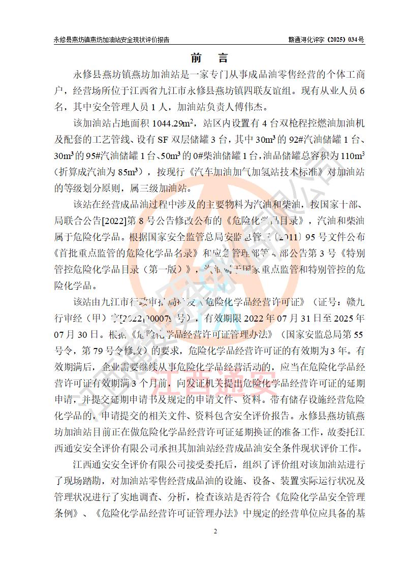 評(píng)價(jià)報(bào)告名稱 | 永修縣燕坊鎮(zhèn)燕坊加油站安全現(xiàn)狀評(píng)價(jià)報(bào)告 | |||