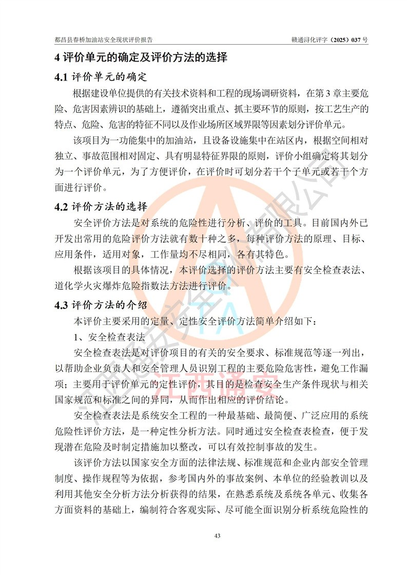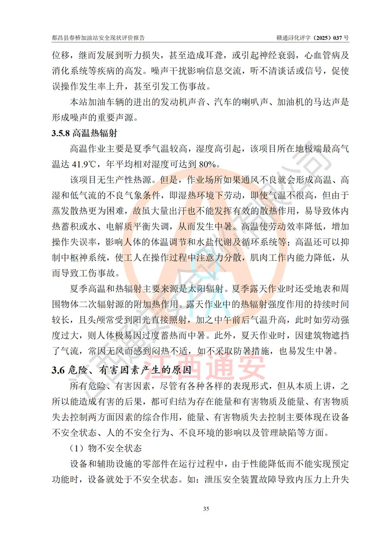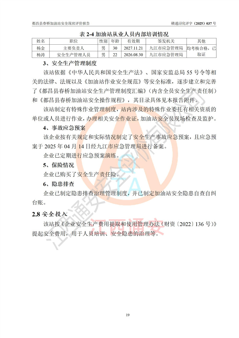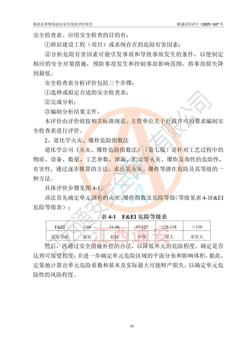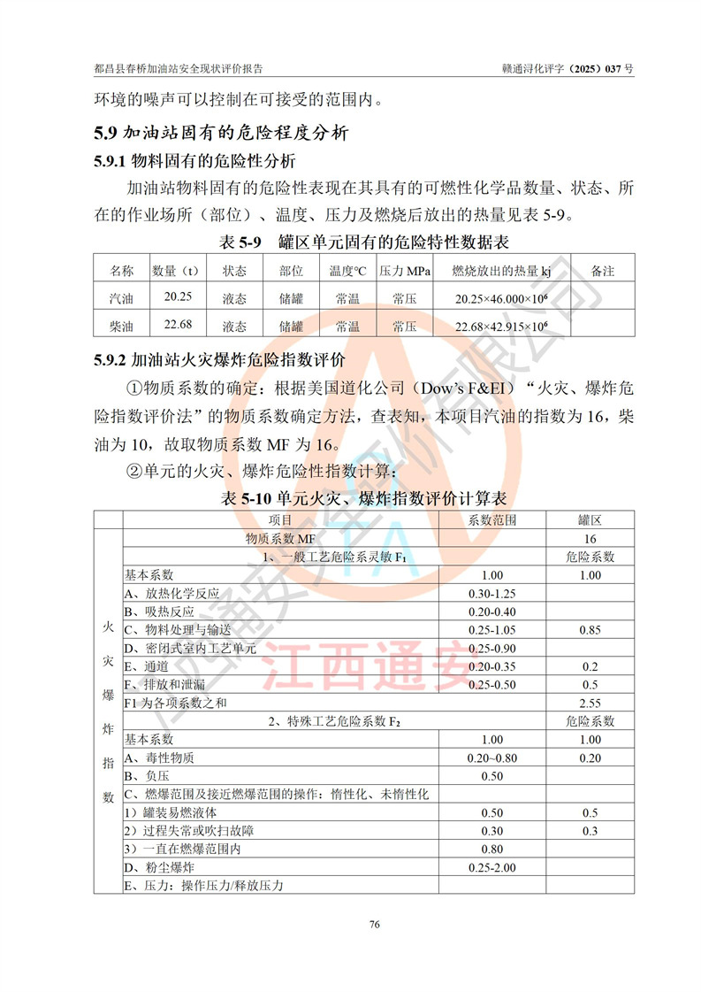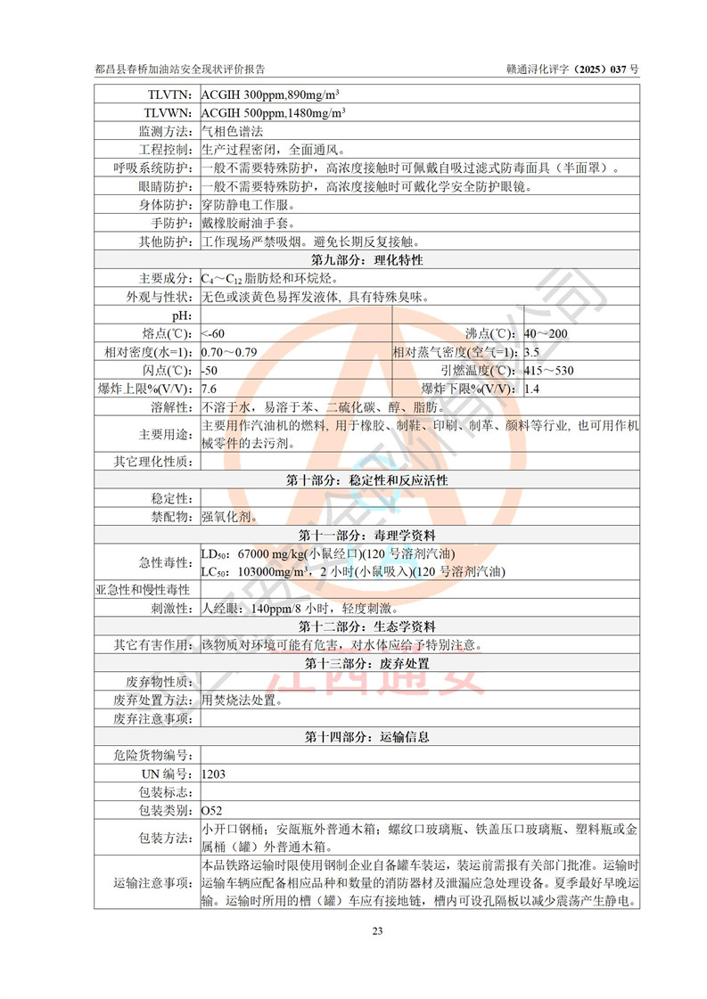 評價結(jié)論 | 都昌縣春橋加油站涉及的安全條件、安全經(jīng)營條件、安全生產(chǎn)管理符合《危險化學(xué)品經(jīng)營許可證管理辦法》、《汽車加油加氣加氫站技術(shù)標(biāo)準(zhǔn)》等**有關(guān)法規(guī)、標(biāo)準(zhǔn)、規(guī)范要求,能滿足危險化學(xué)品經(jīng)營安全條件。 | |||
